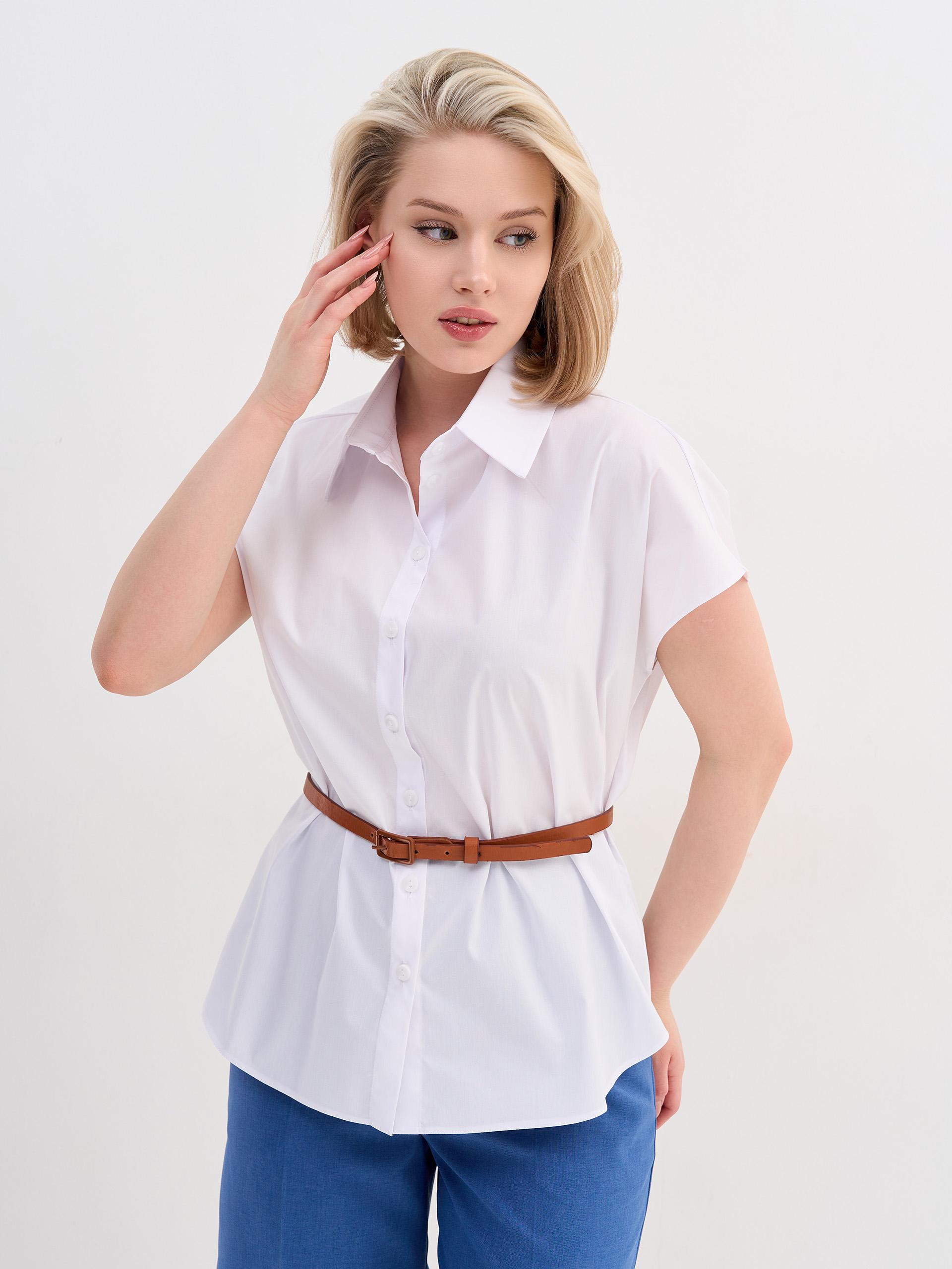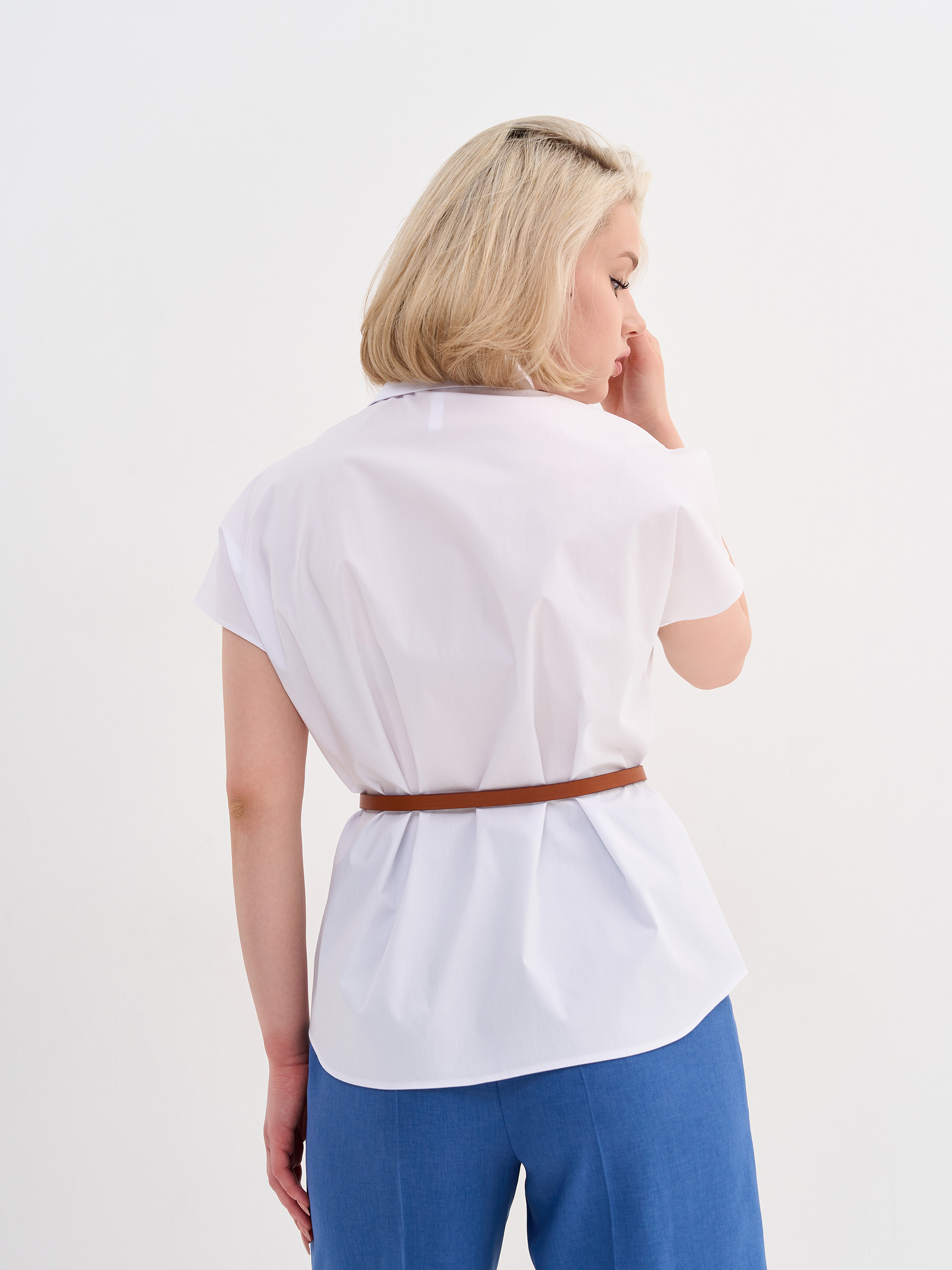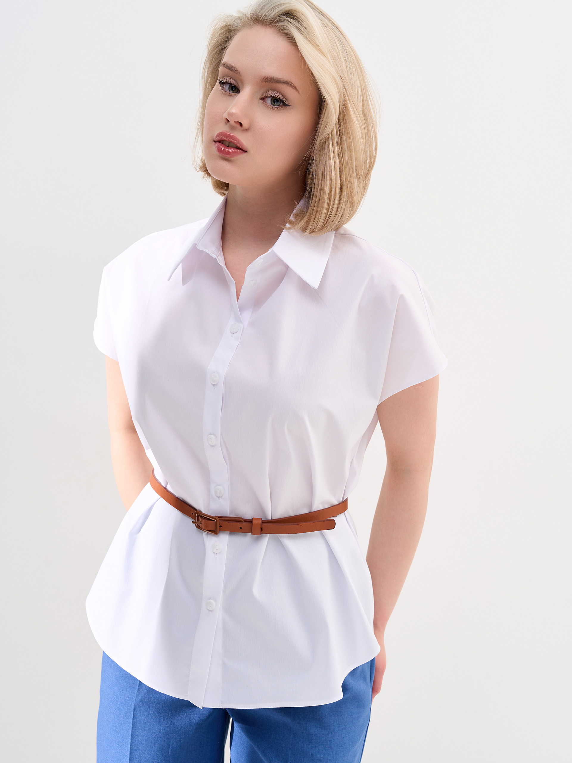 Рубашка из хлопка, спущенный рукав, слегка приталенная.
