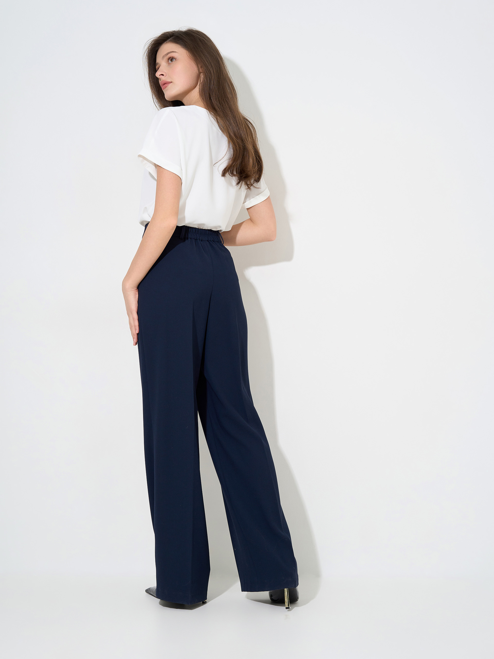 Брюки прямые из крепа, потайная молния сбоку, высокая талия, прямые.