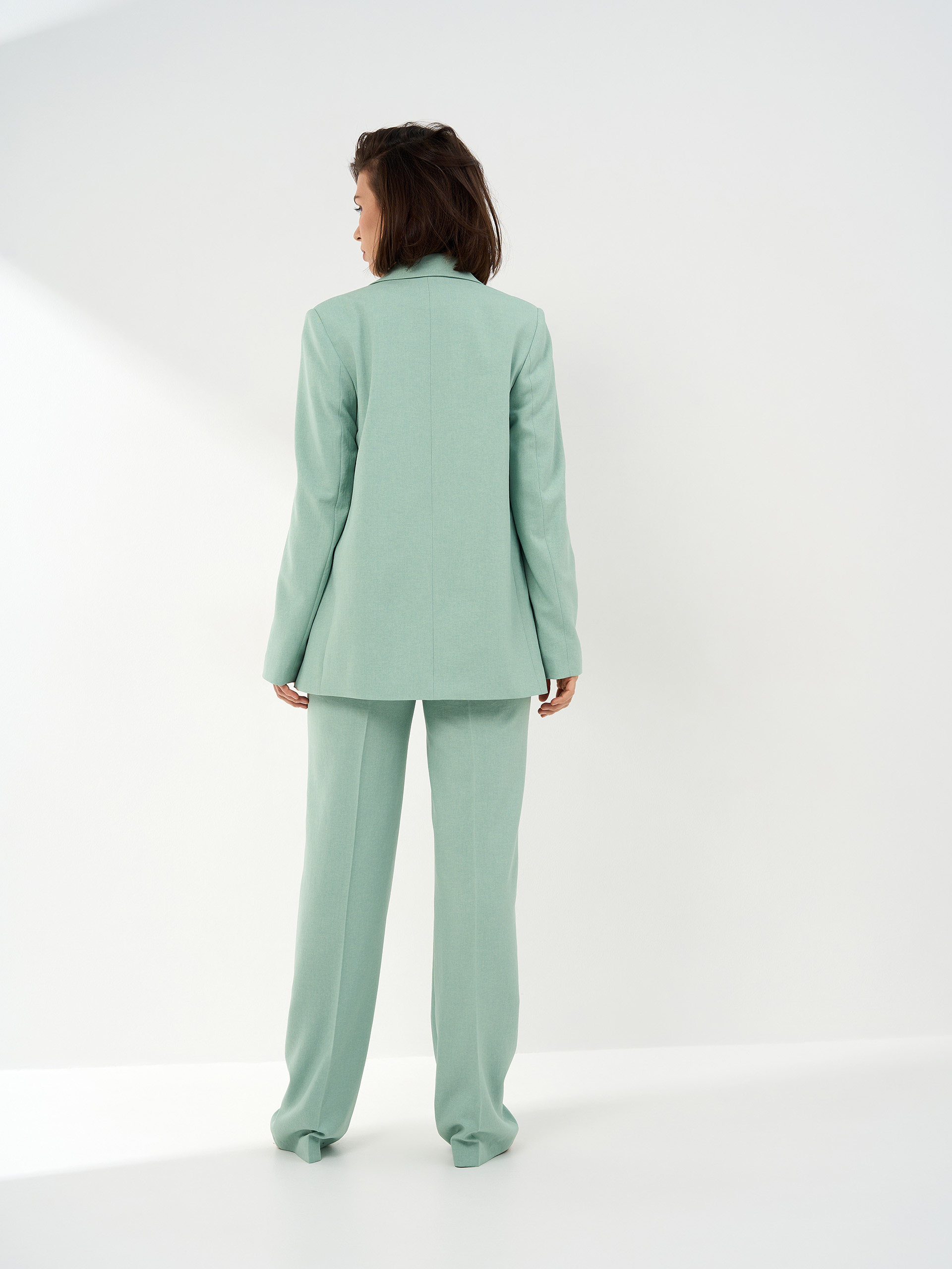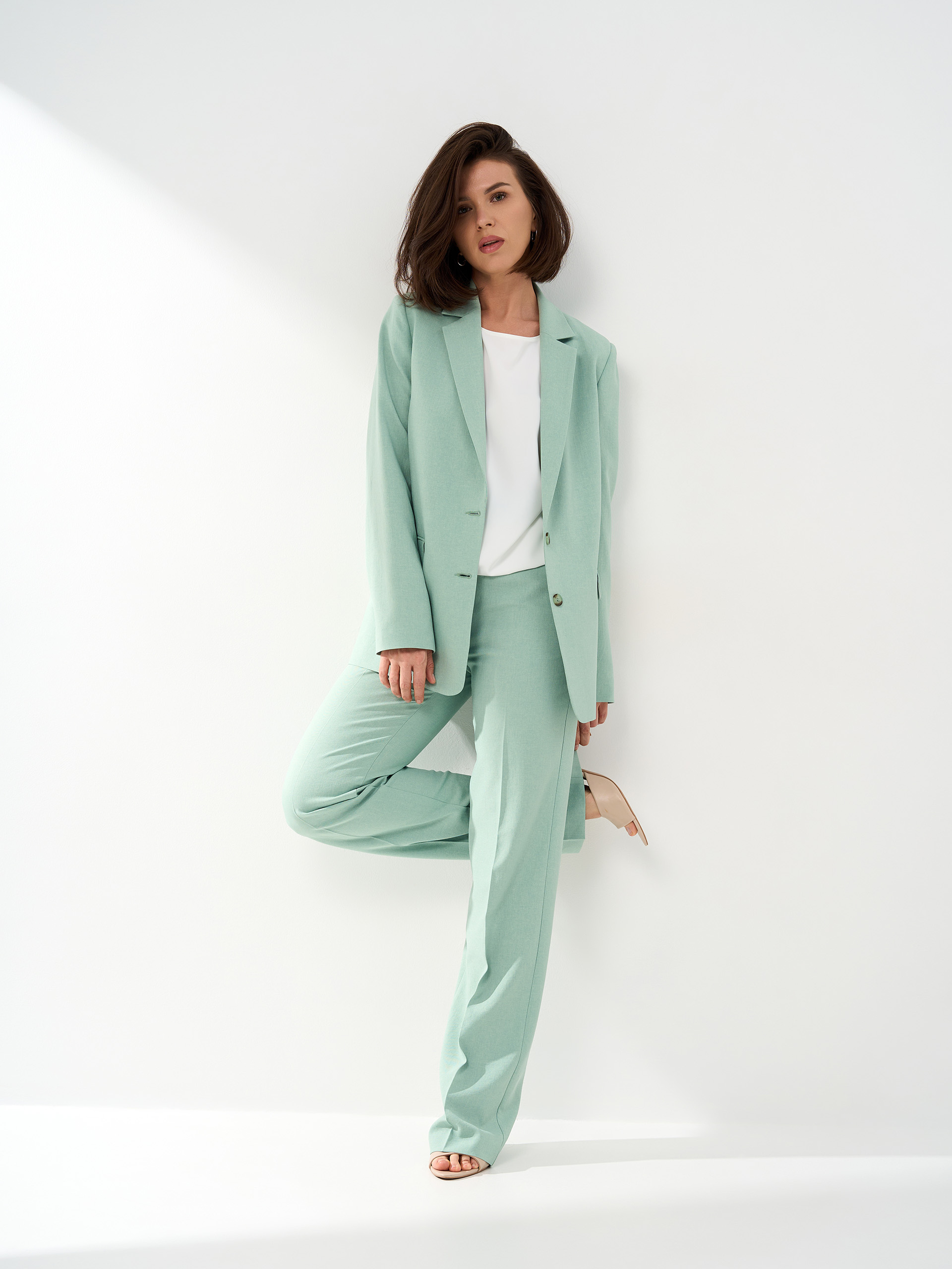 Брюки со средней посадкой, прямые, неширокие, в задней части пояса резинка, из смесовой с хлопком легкой немнущейся ткани.