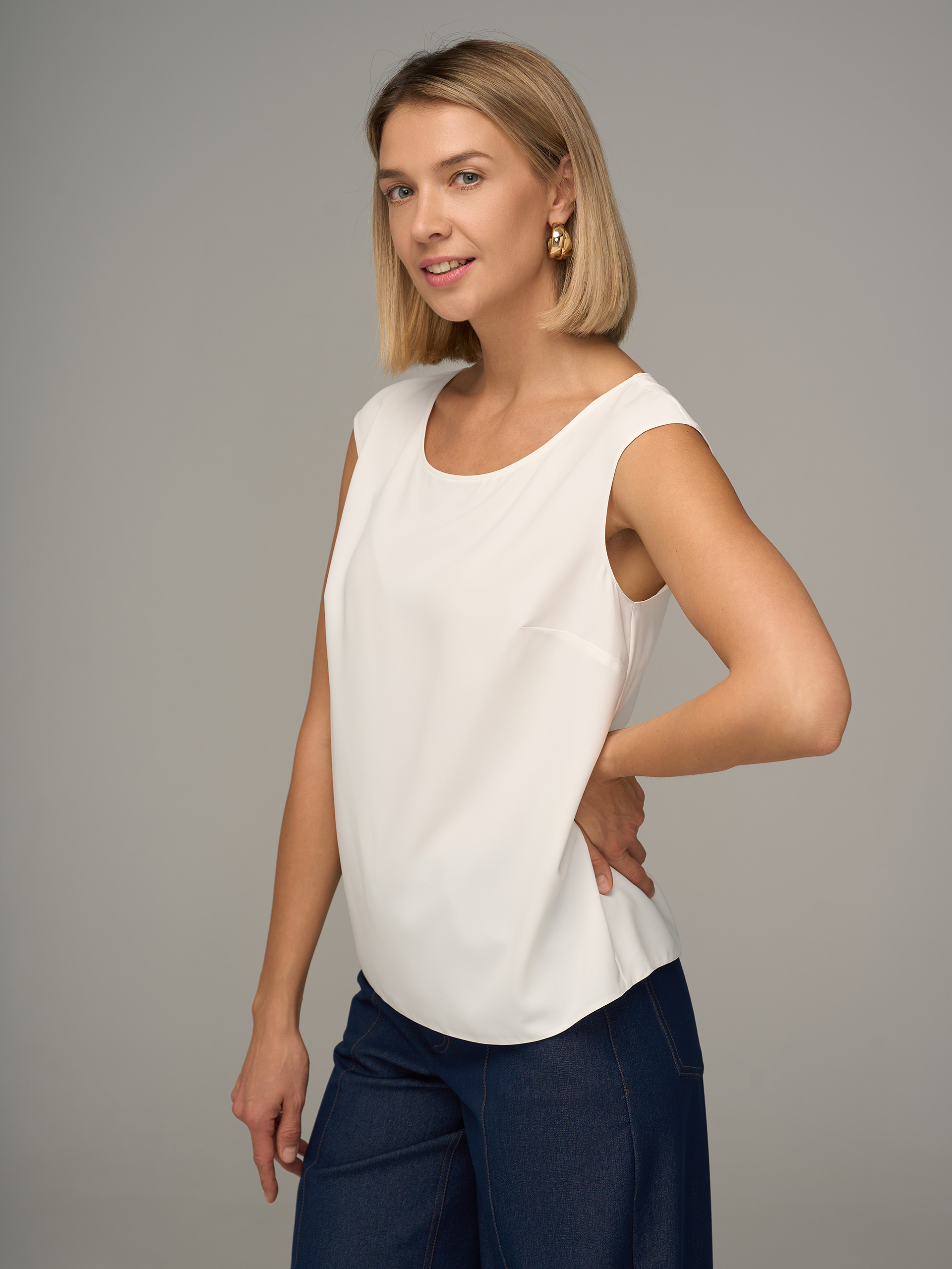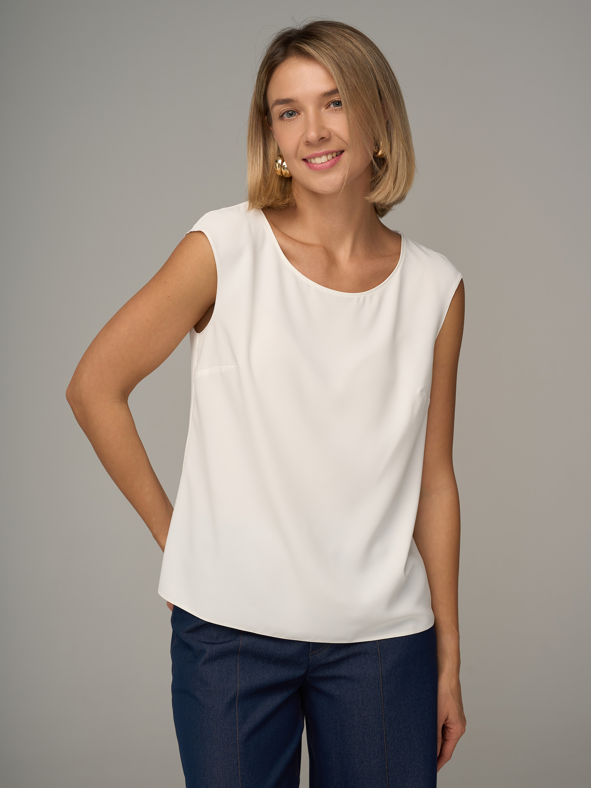 Топ с круглым вырезом, простого базового покроя, из струящейся шелковистой утяжеленной ткани.
