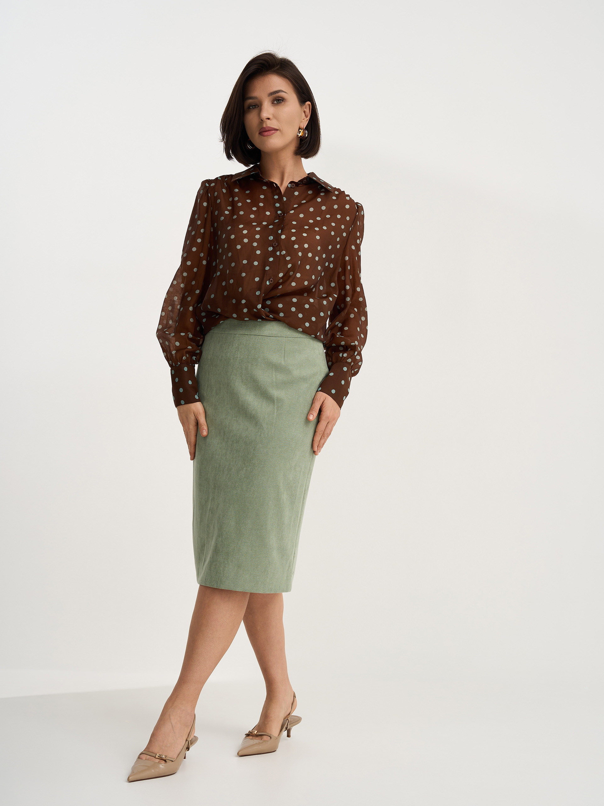 Юбка прямого силуэта, длина 70±2 см, подклад, из мягкой ткани с бархатистой поверхностью.