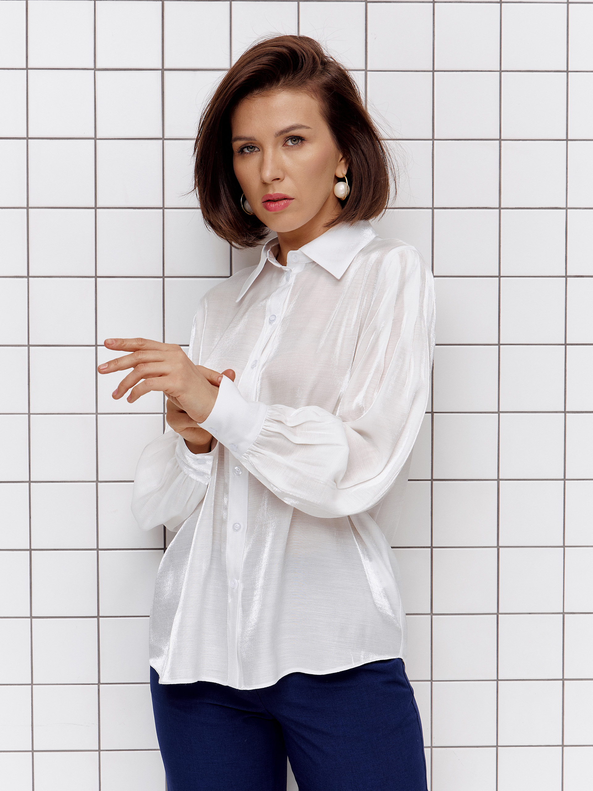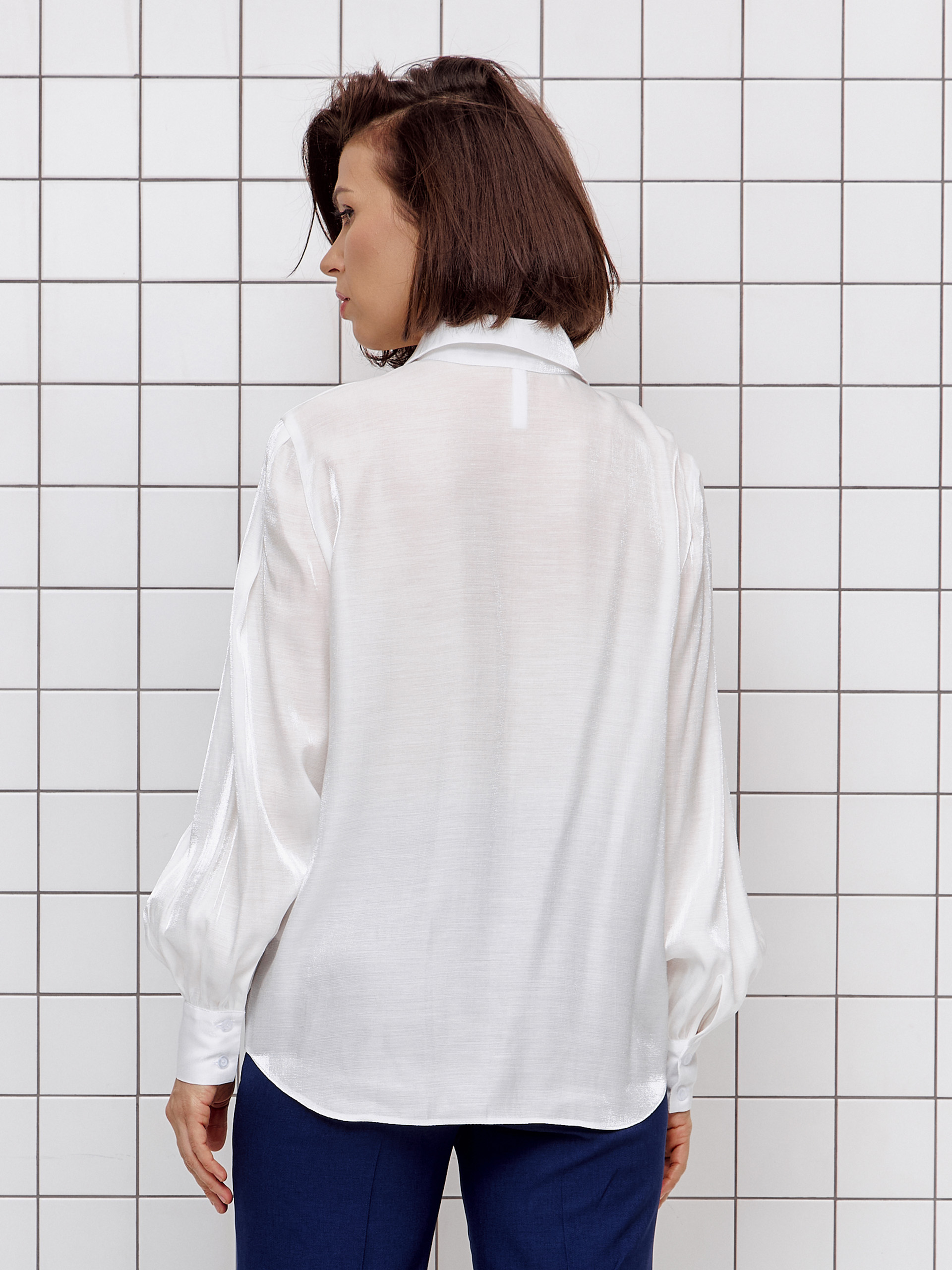 Нарядная блузка, со свободными рукавами, прямого силуэта, из полупрозрачной вискозной ткани с лёгким блеском.
