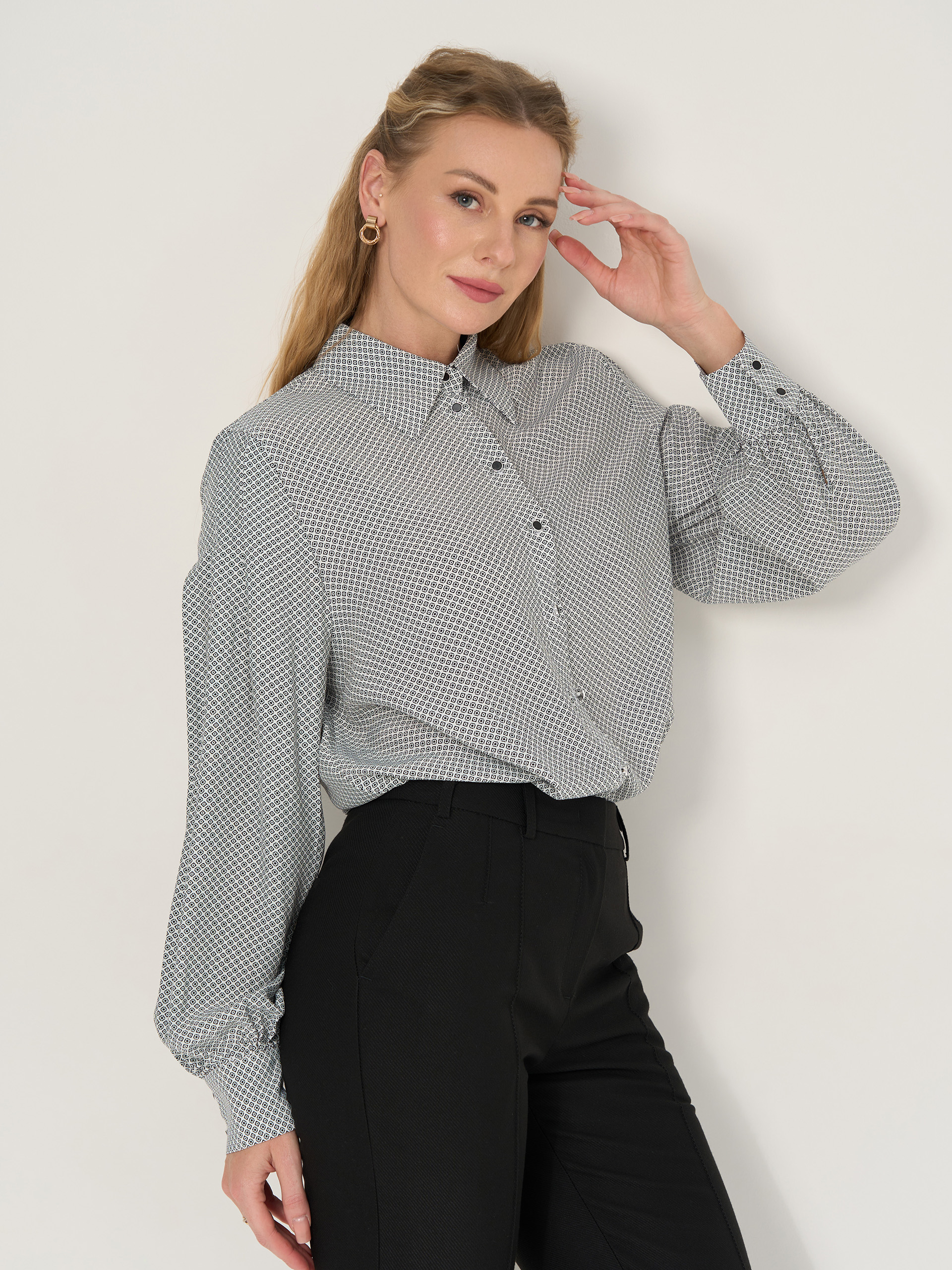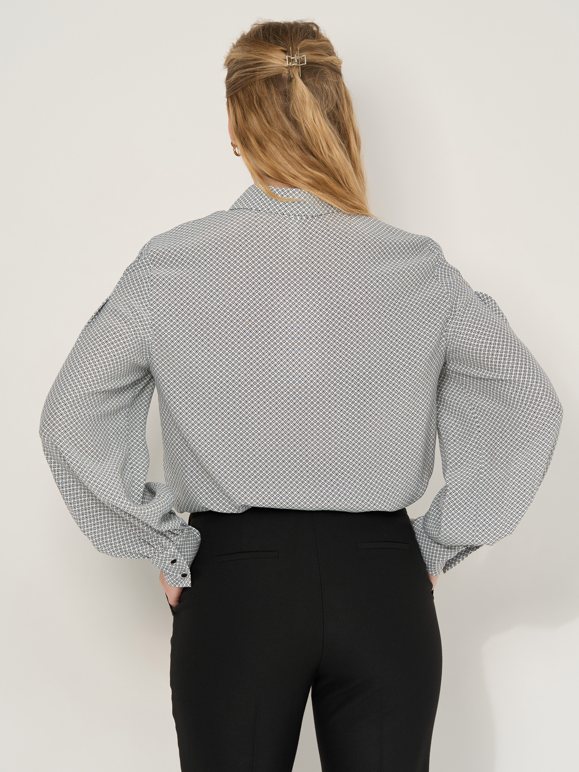 Блузка с пышными рукавами, с застроченными защипами. Из струящейся вискозной ткани.