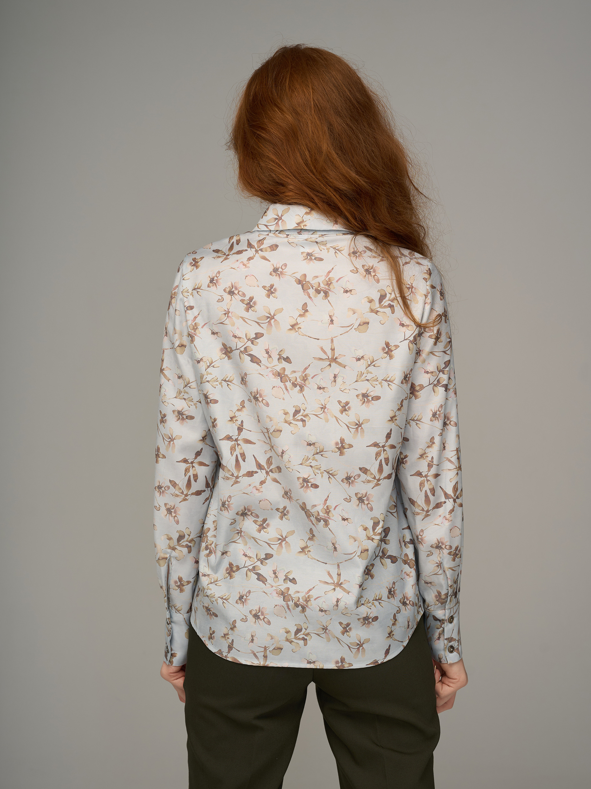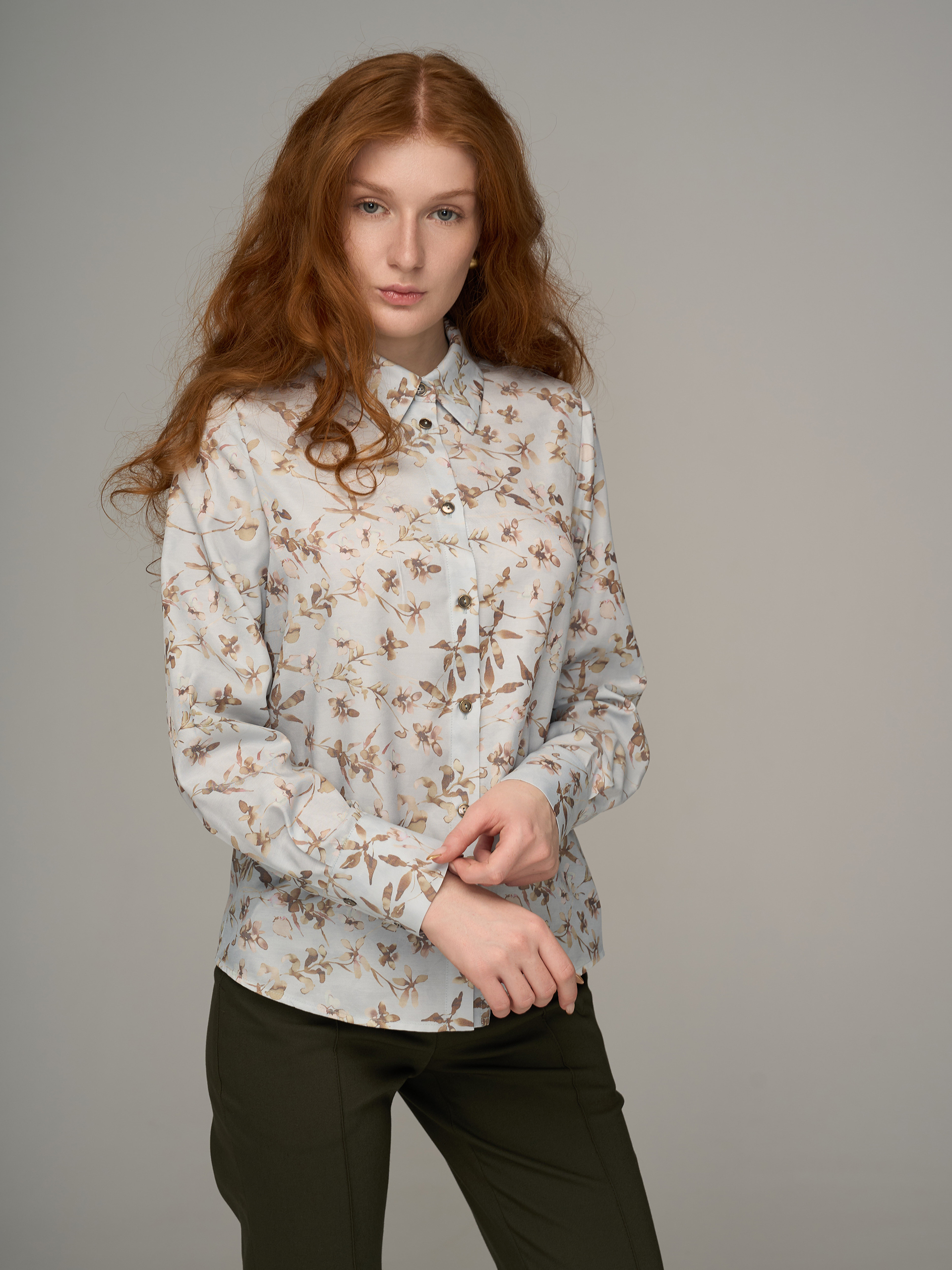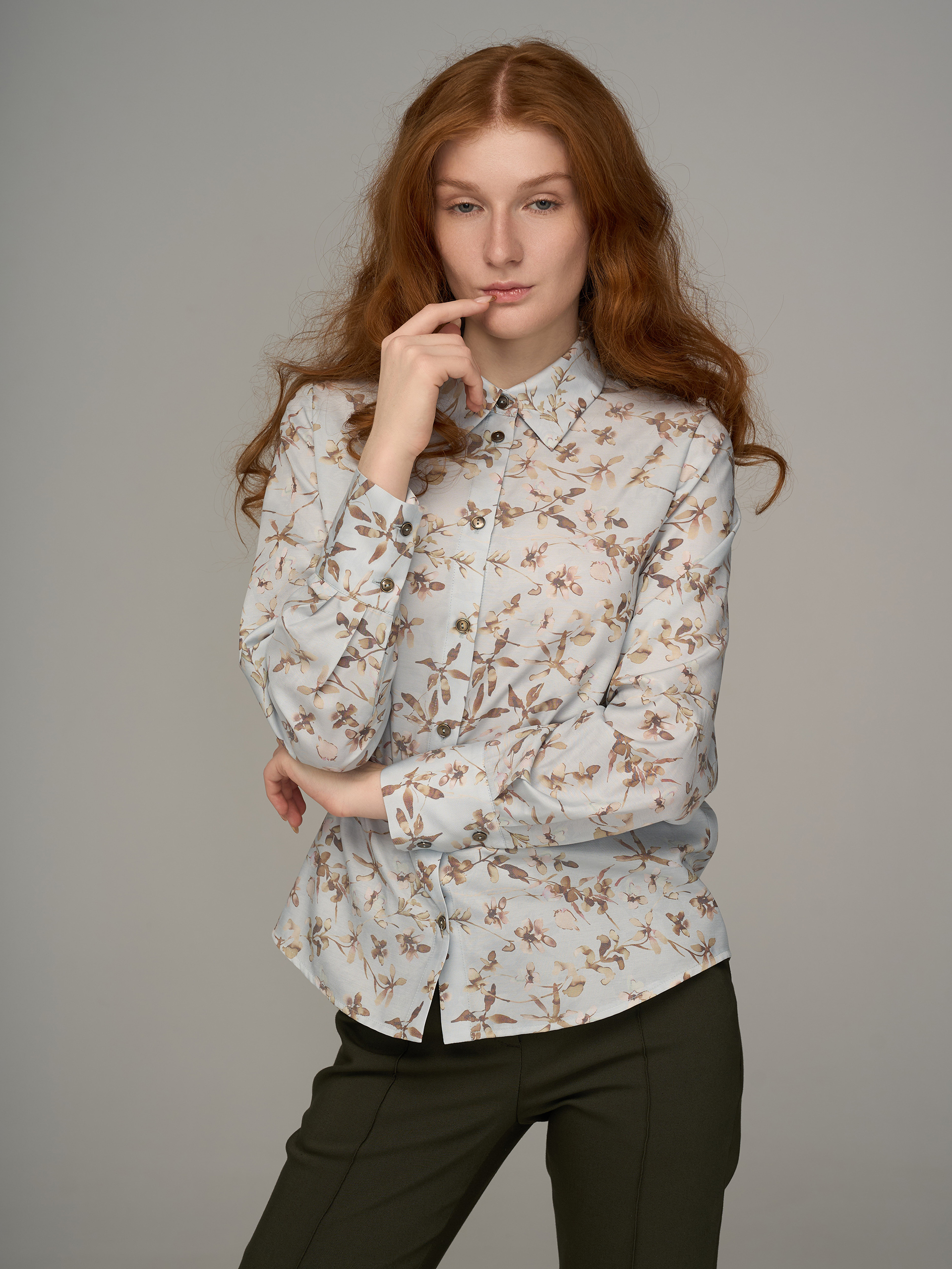 Блузка нежная, в рубашечном стиле из фактурного полупрозрачного материала.