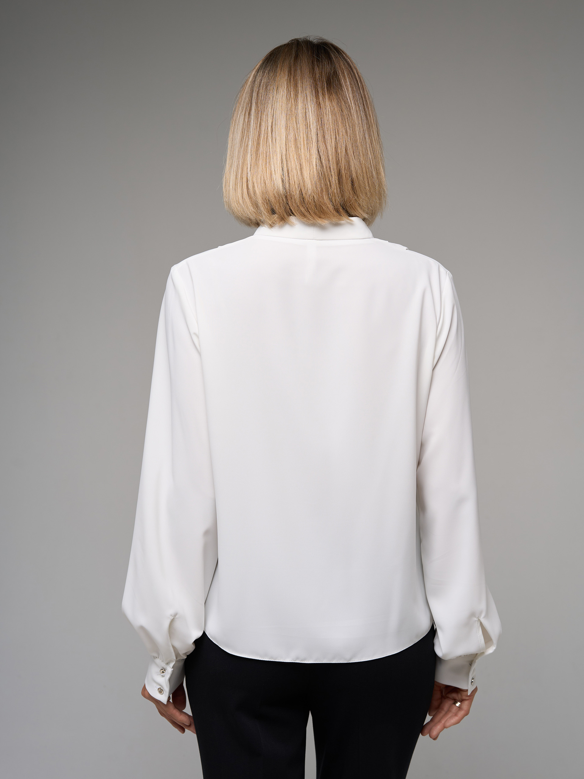 Блузка с мягкими складками у ворота, и стойкой, из струящейся шелковистой утяжеленной ткани.