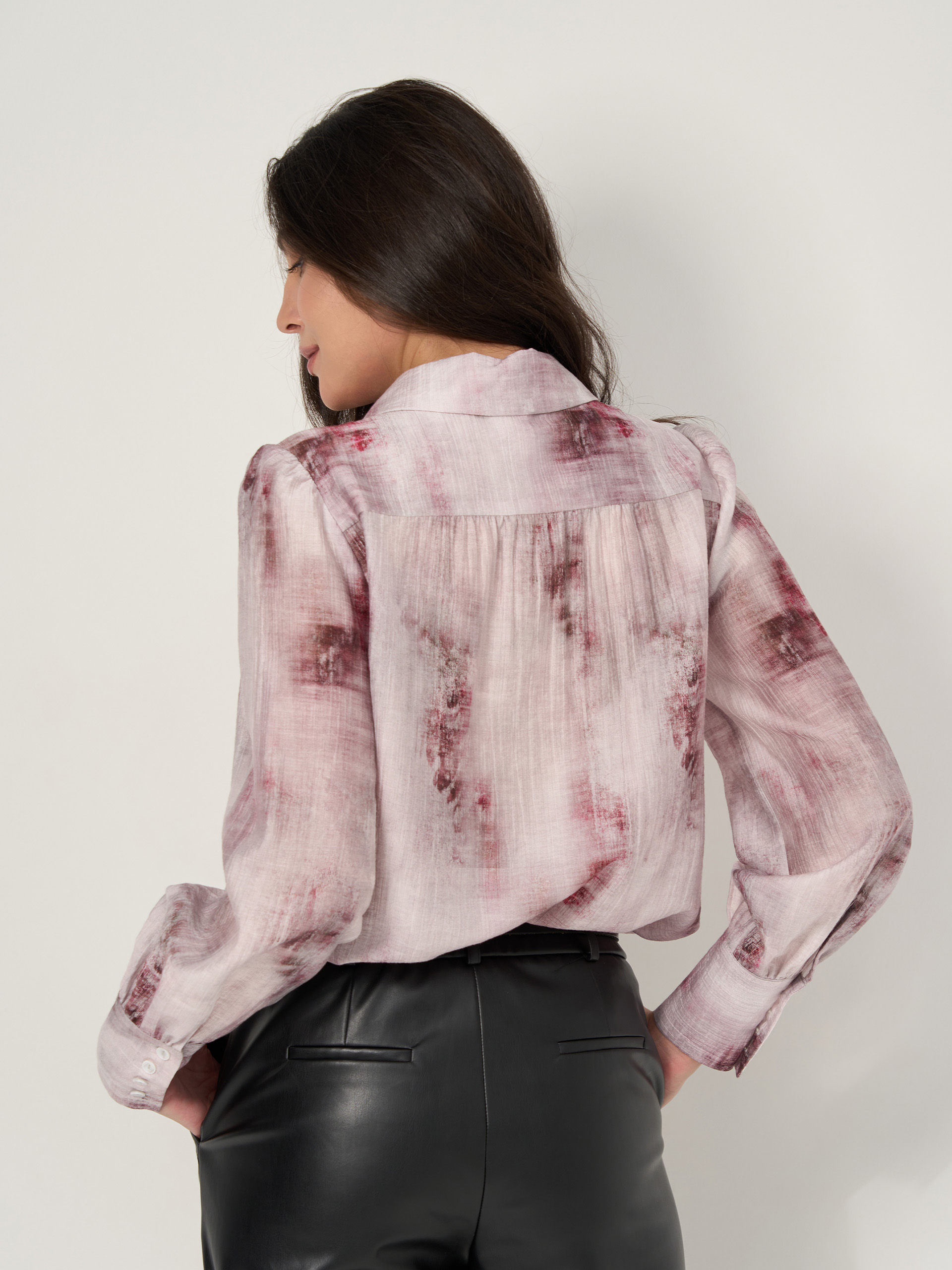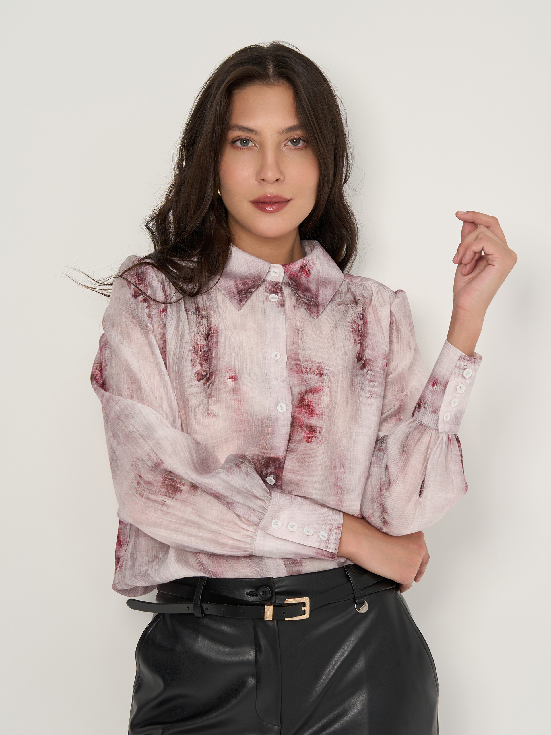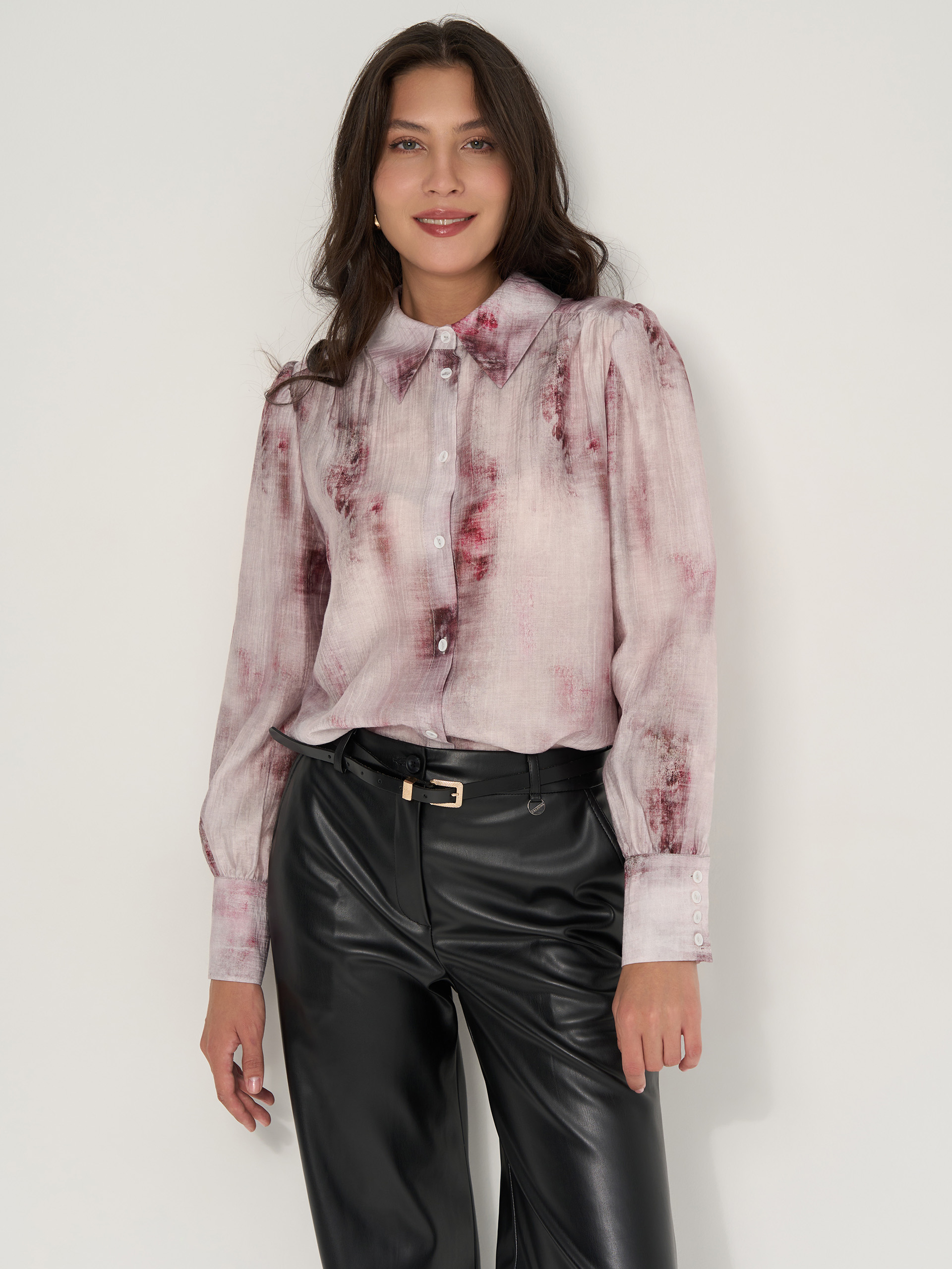 Блузка со сборкой по окату рукава, рубашечная застежка.