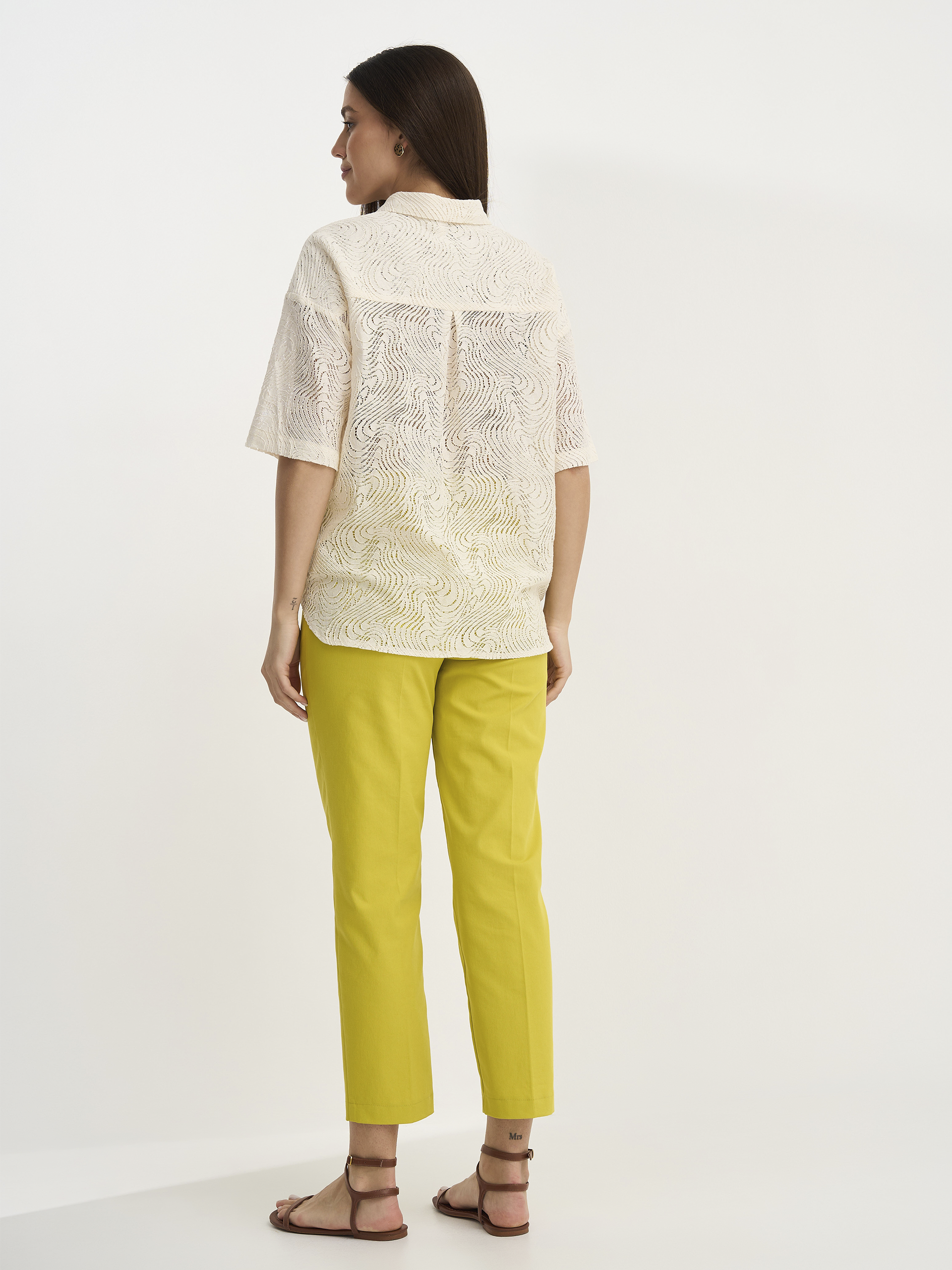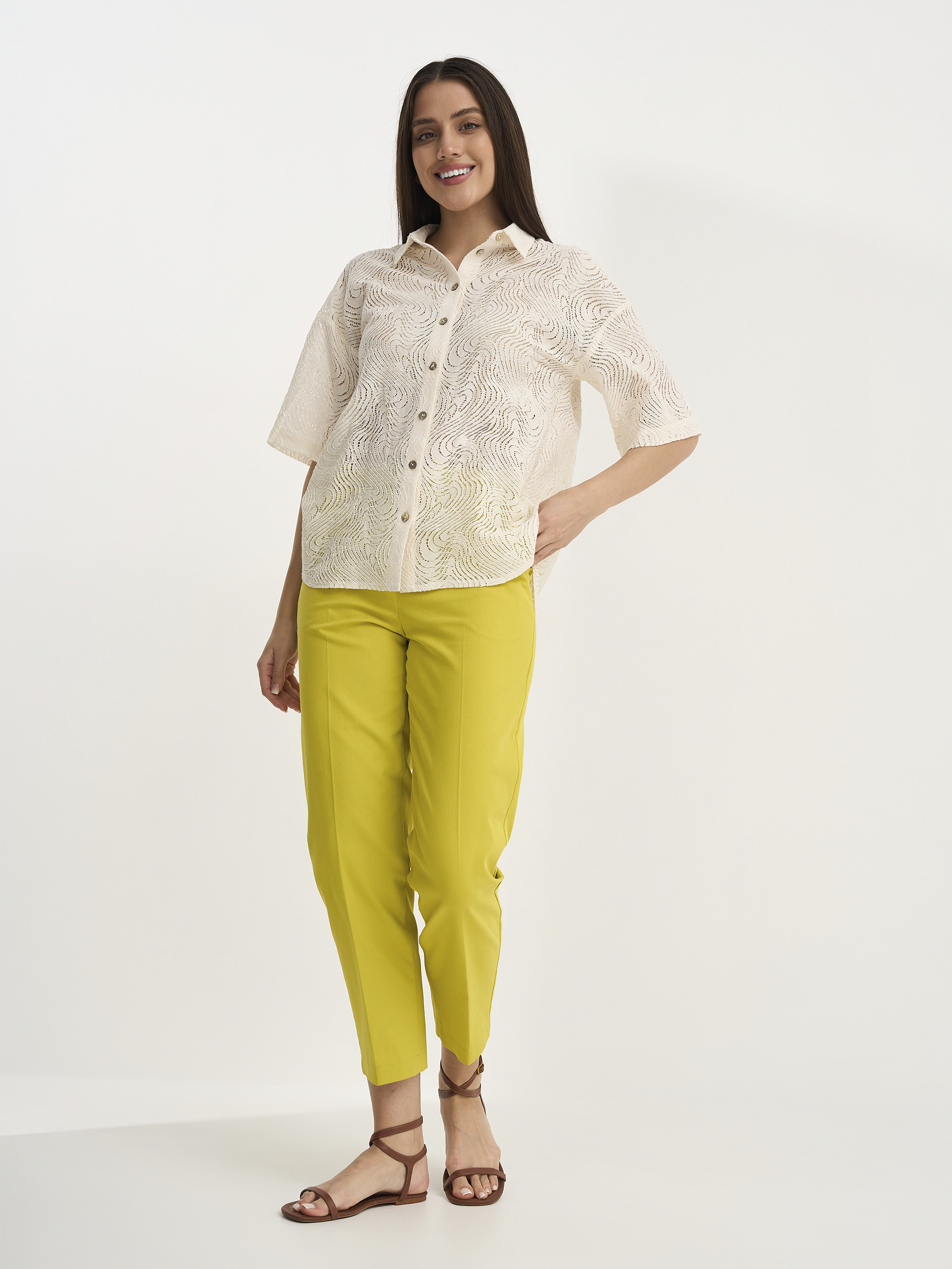 Брюки с зауженным силуэтом. Узкие прямые укороченные брюки из струящейся гладкой плотной костюмной ткани горчичного оттенка.
