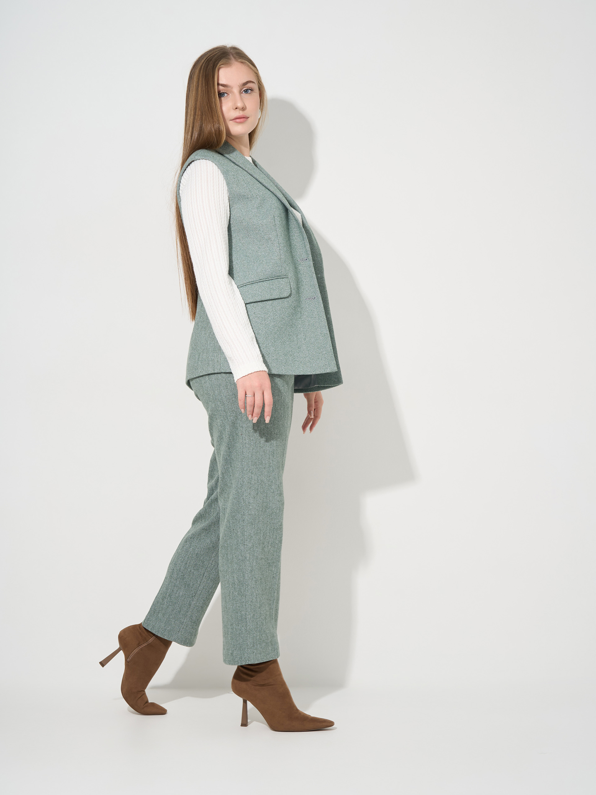 Брюки прямые укороченные, из мягкой теплой вискозной костюмной ткани, укороченные, слегка заужены книзу.