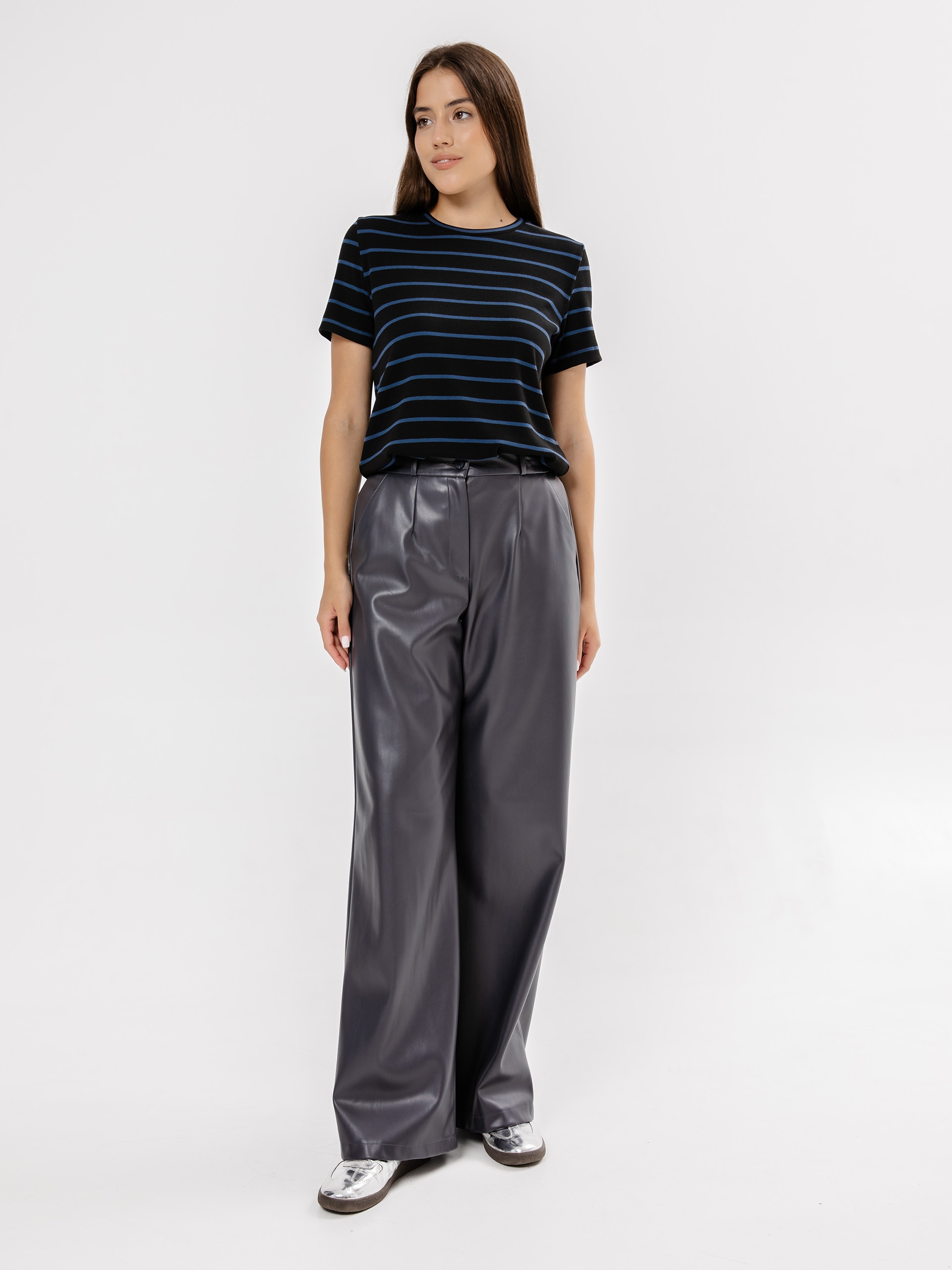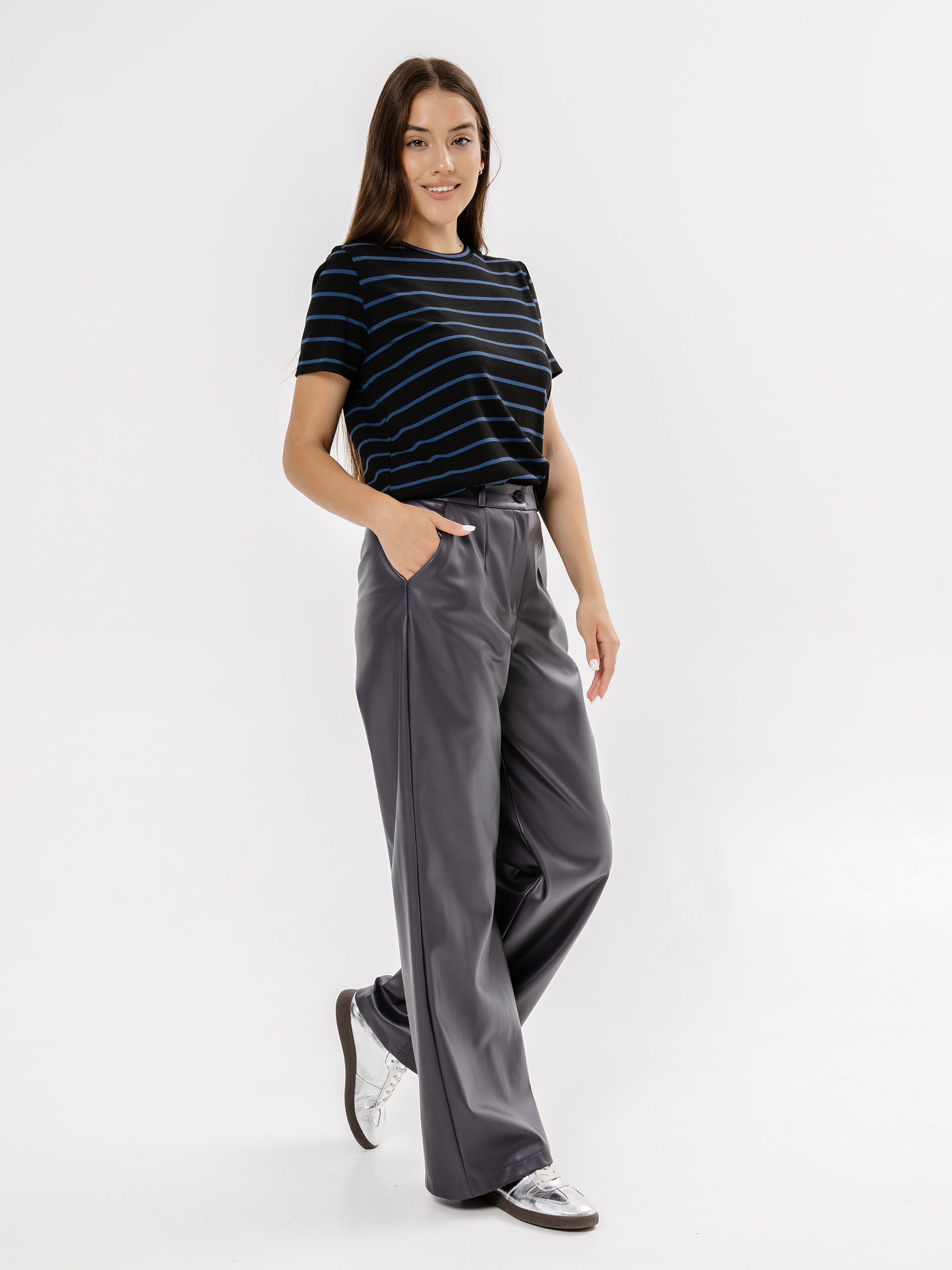 Брюки широкие кожаные