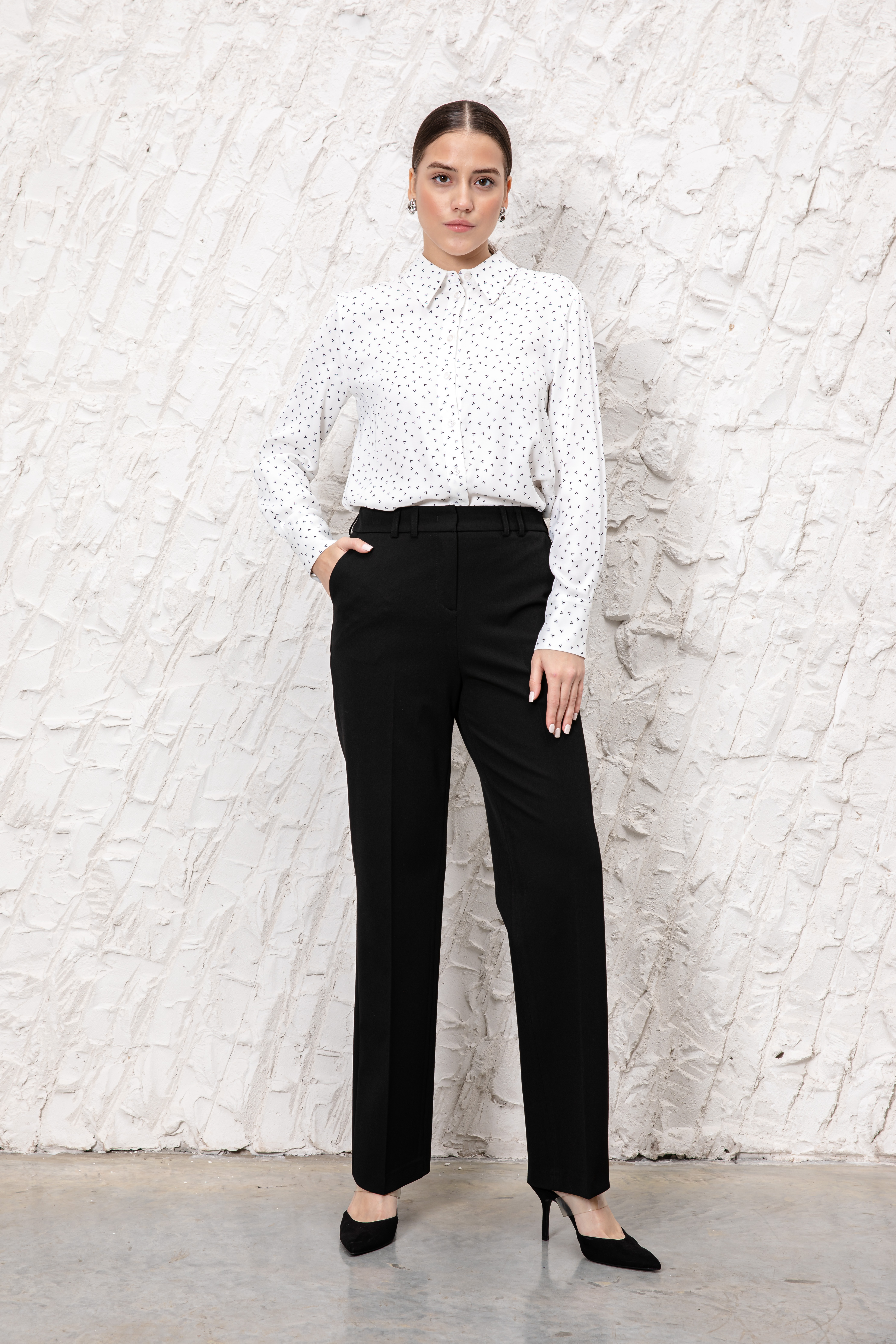 Прямые теплые брюки из черного габардина с утеплением "шардон" с изнаночной стороны