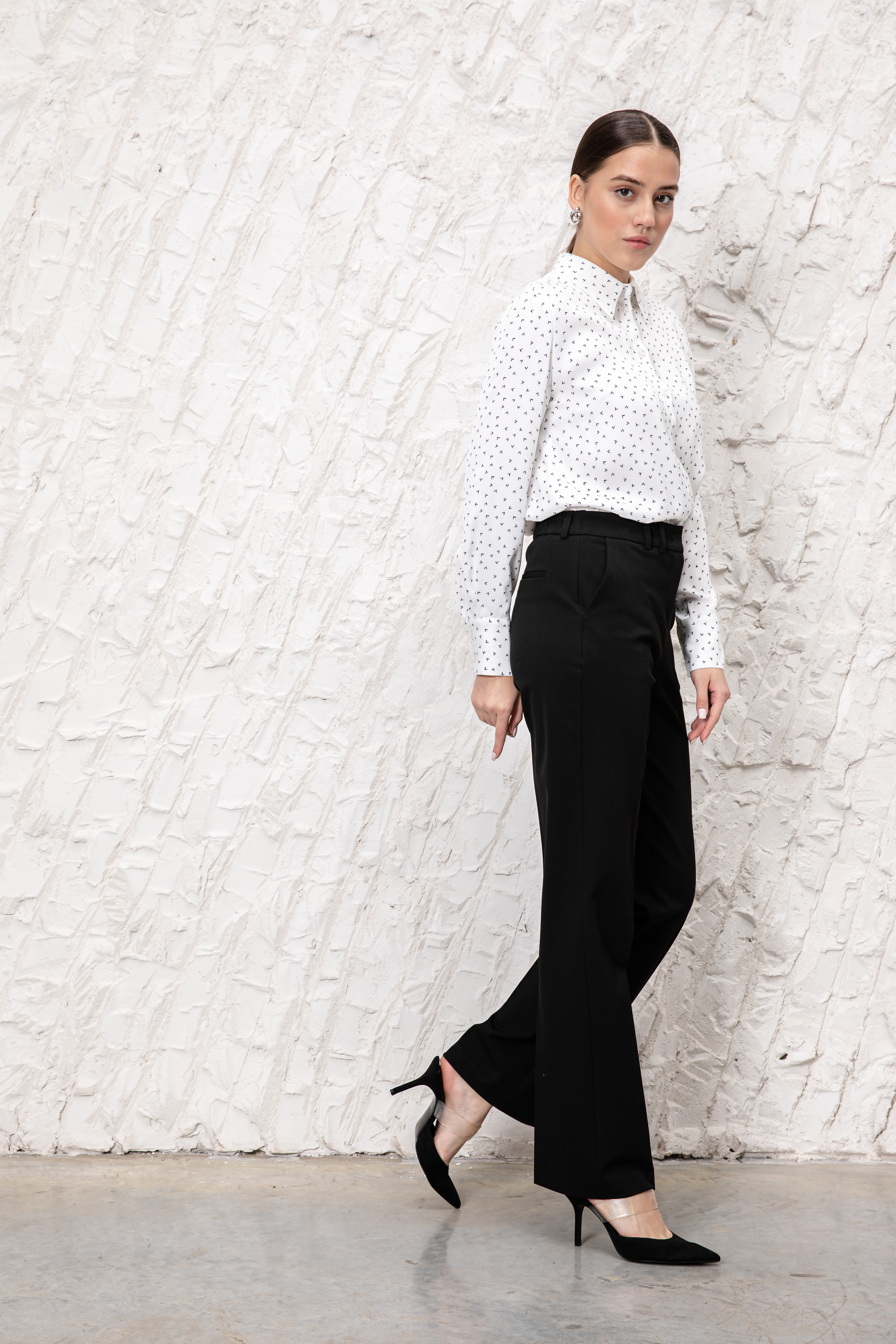 Прямые теплые брюки из черного габардина с утеплением "шардон" с изнаночной стороны.