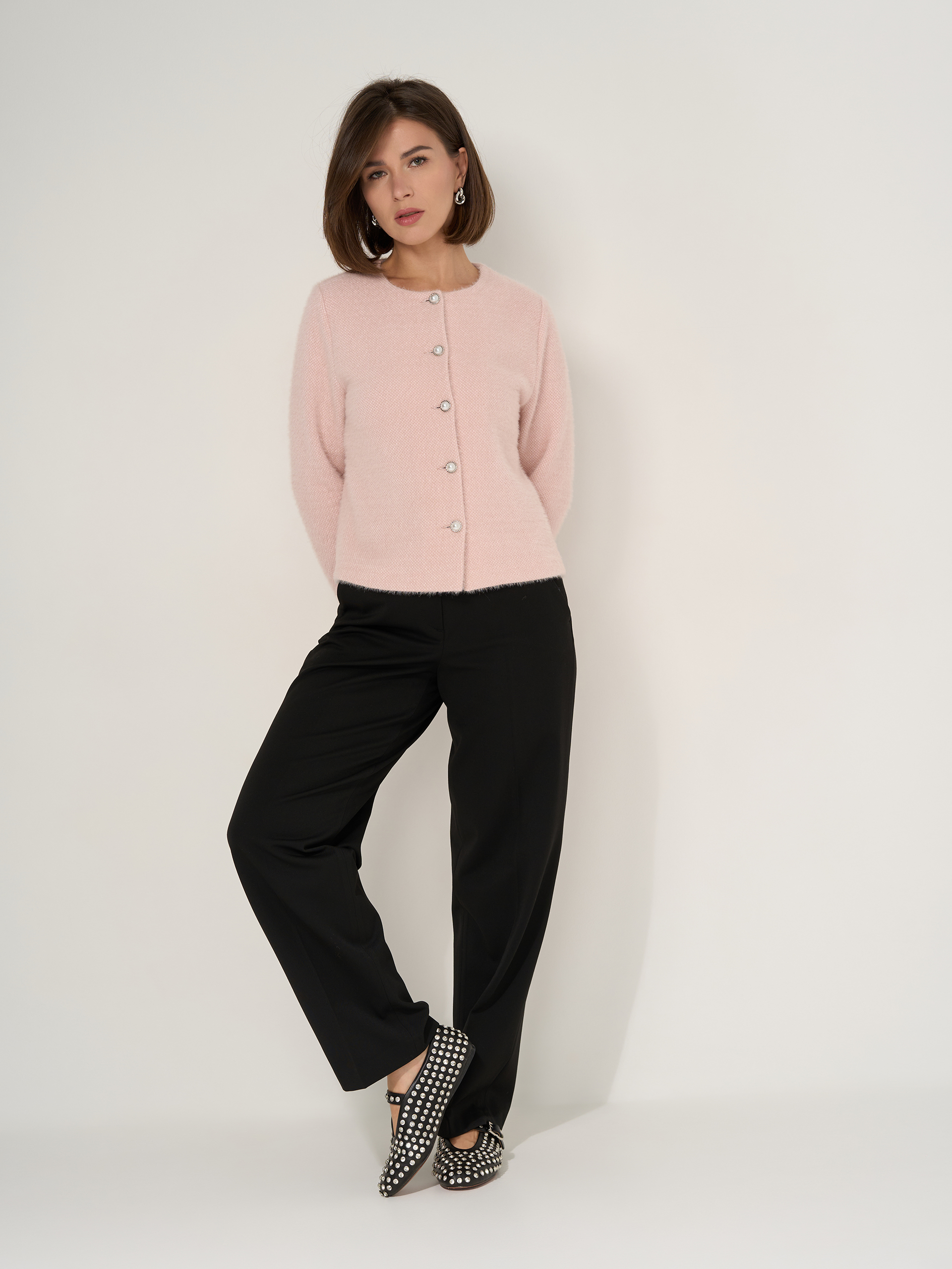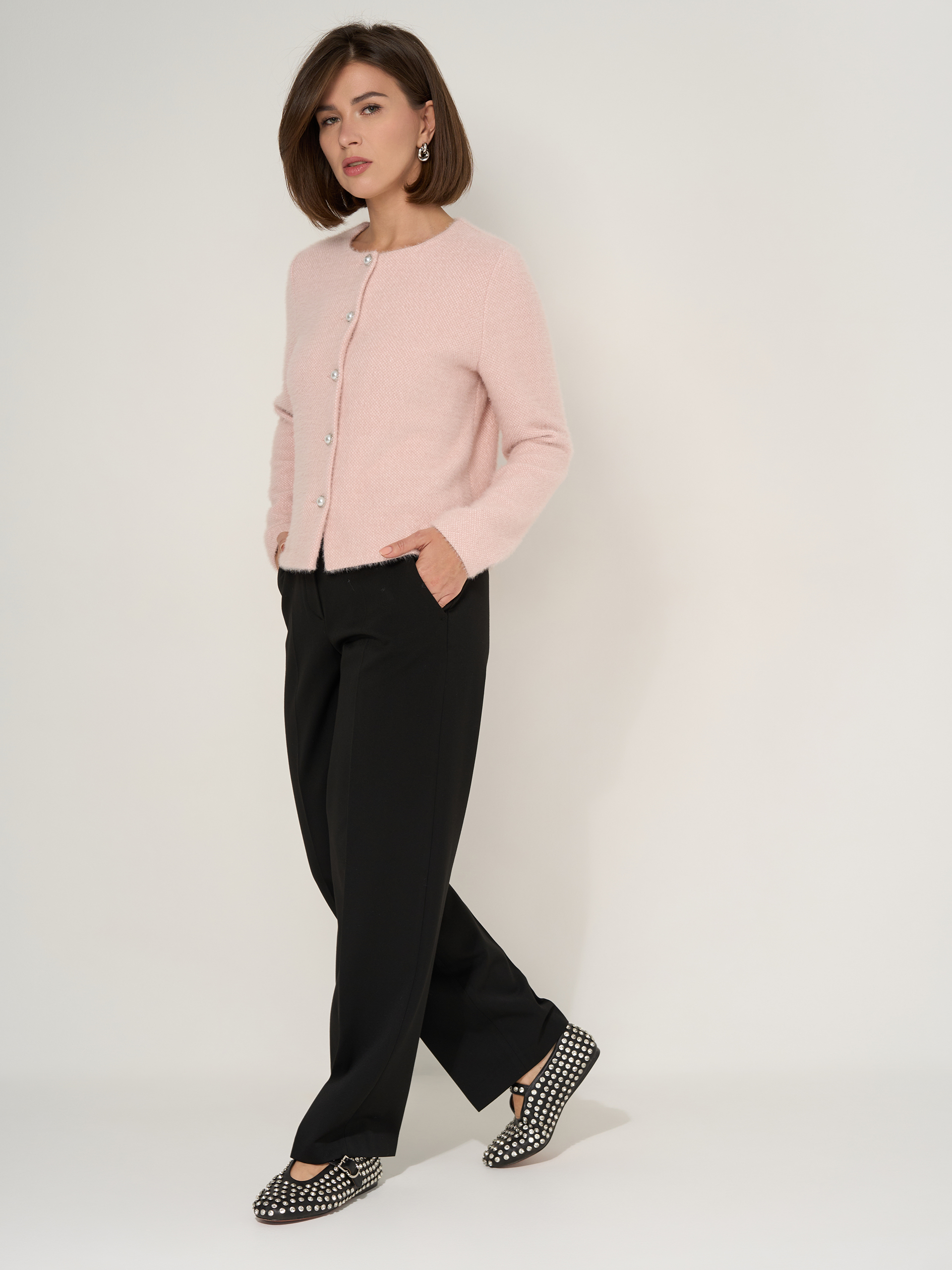 Брюки прямые свободные, со стрелками. Из вискозной костюмной ткани «габардин» с легким флисом изнутри.
