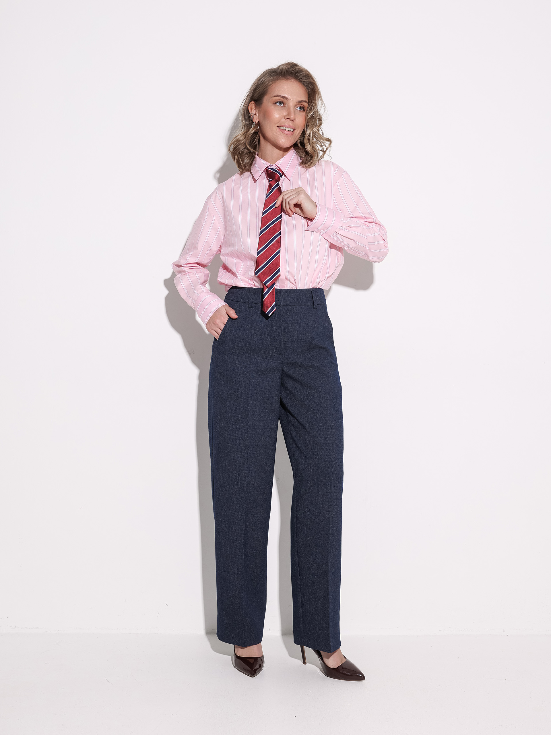 Брюки прямые, свободные со стрелками. Из костюмной плотной ткани.