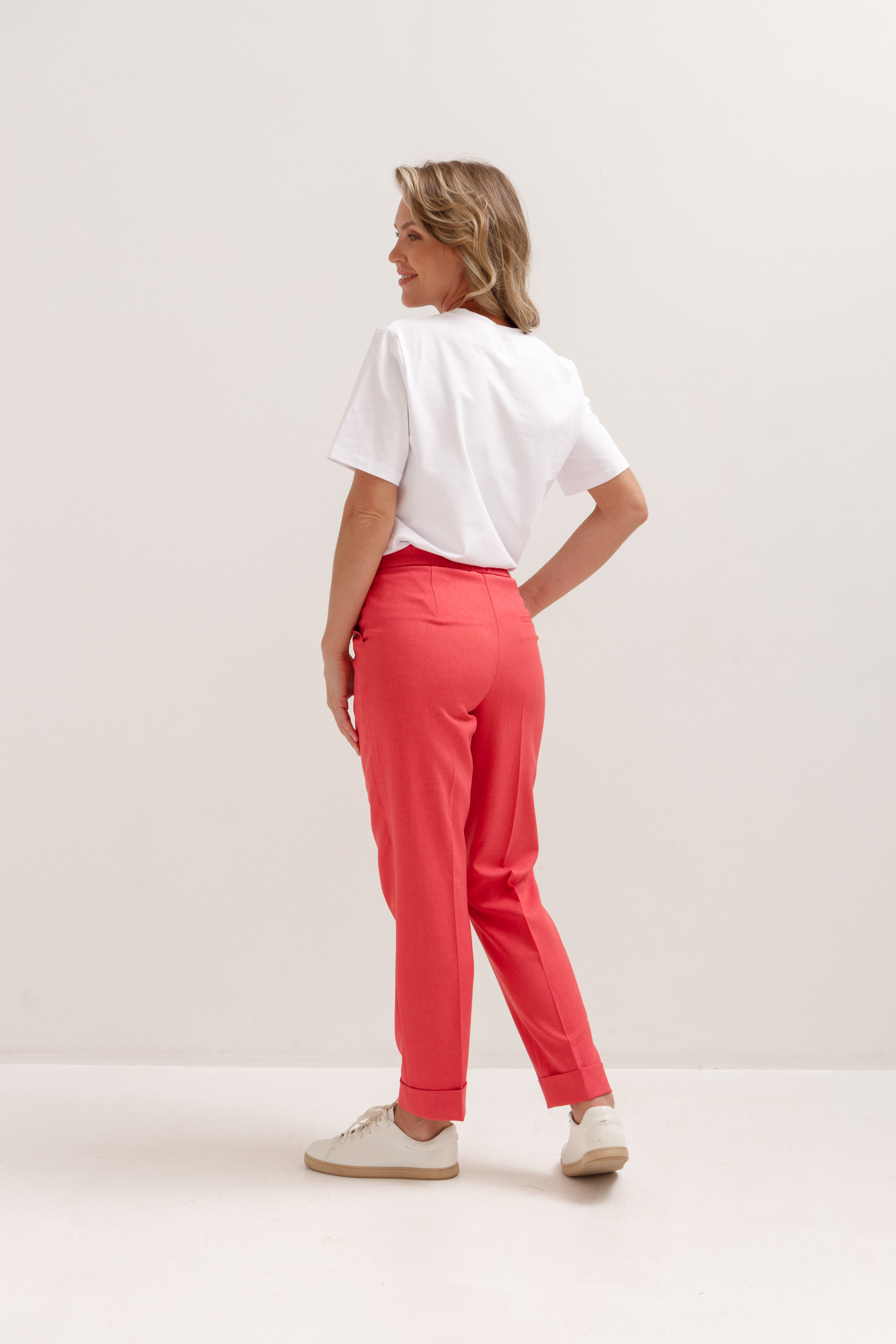 На задней половинке талиевые вытачки, на правом полотнище имитация кармана в листочку.