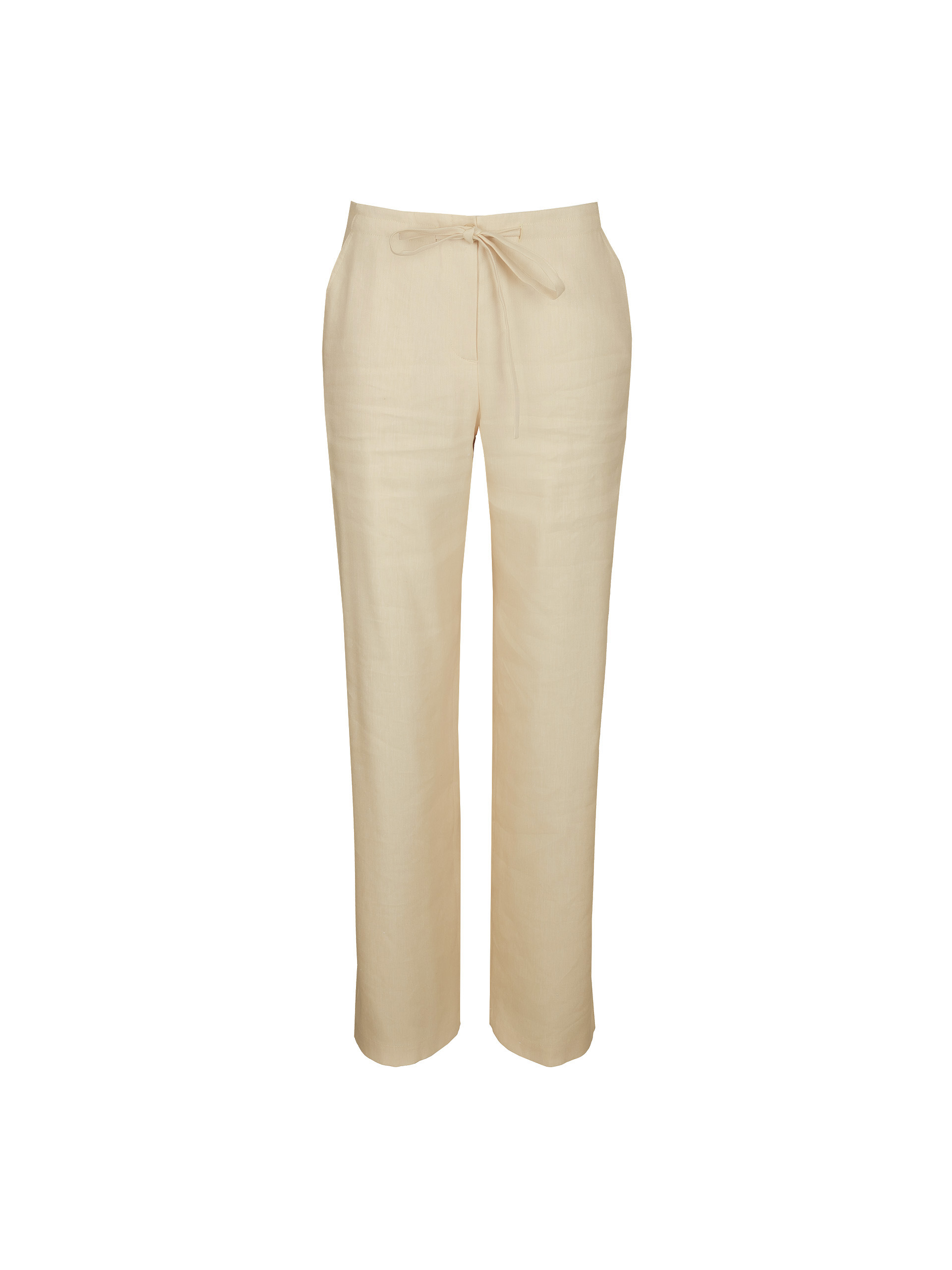 Брюки из смесового льна, свободного стиля, прямые, кулиска в поясе, сзади накладные карманы, с поясом.