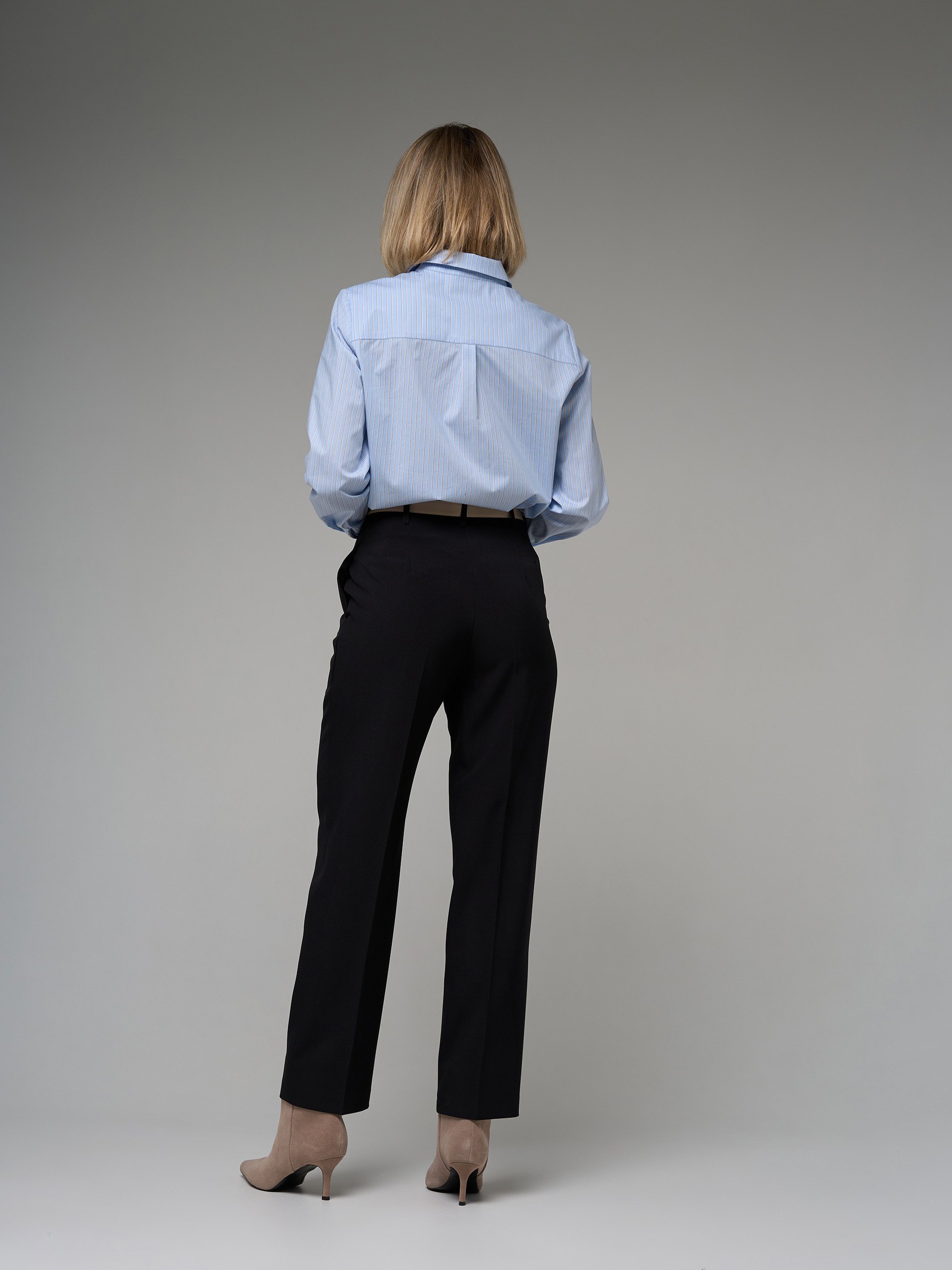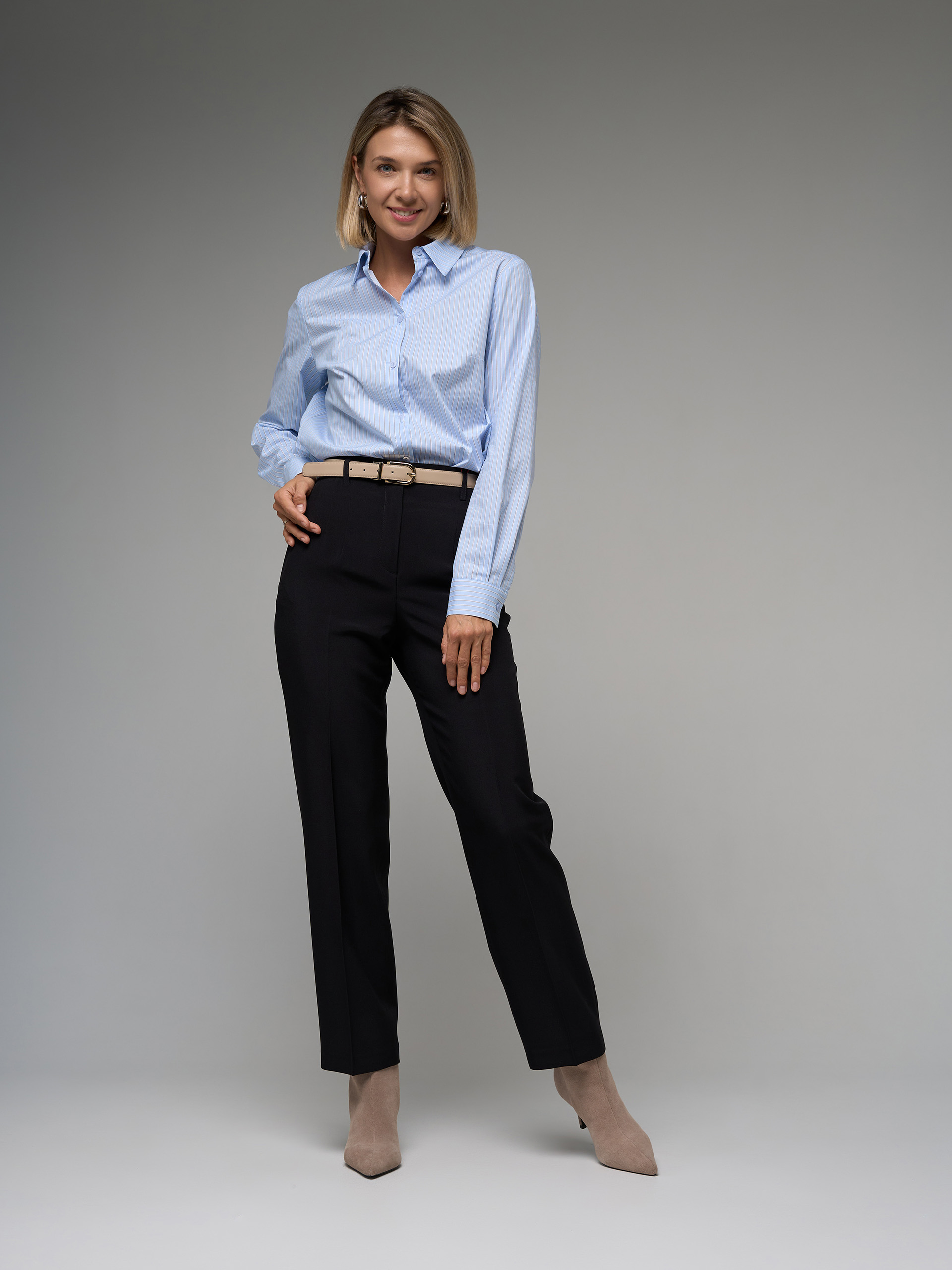 Силуэтные брюки, слегка заужены книзу из средней по плотности смесовой гладкой костюмной ткани.