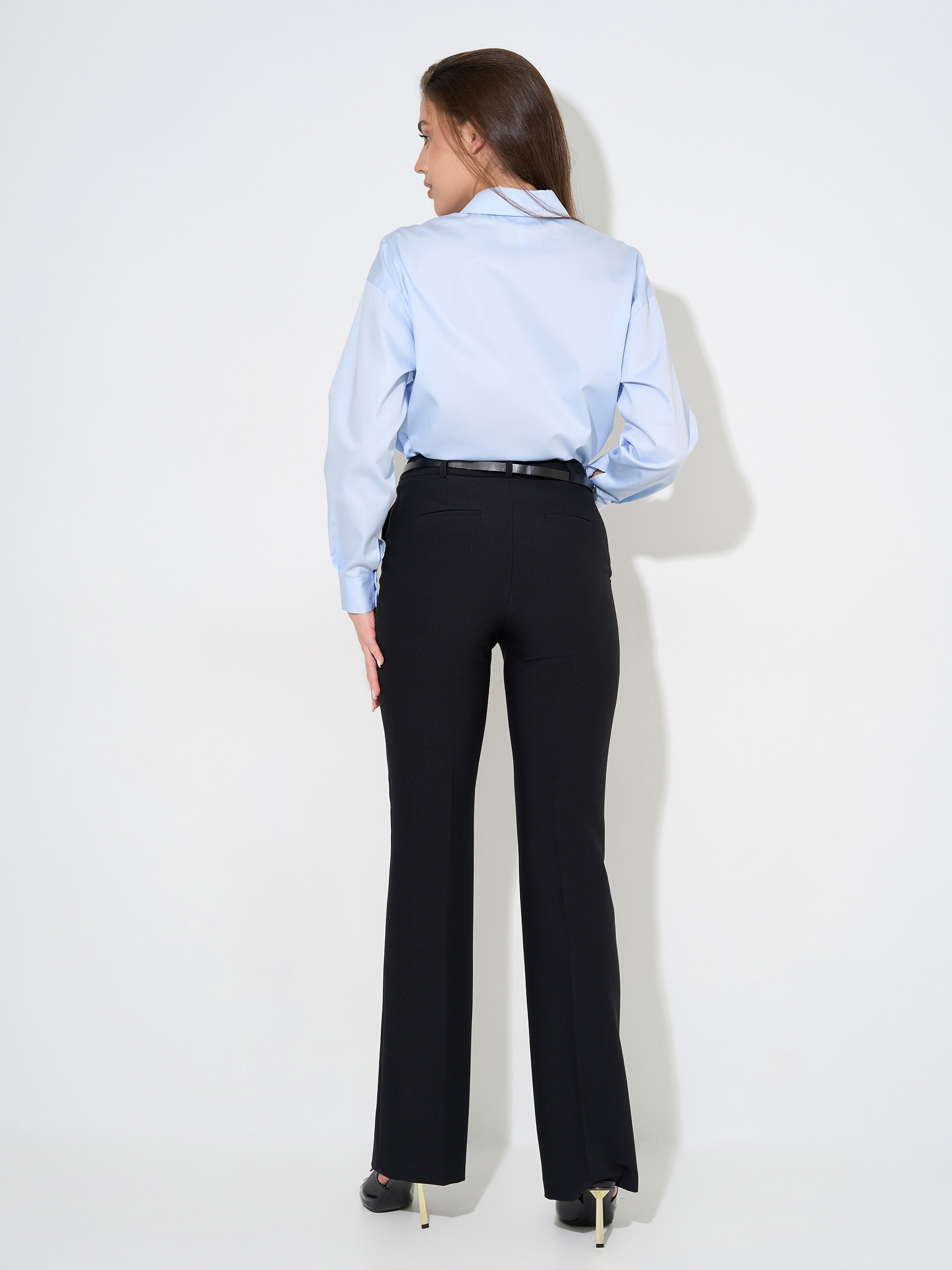 Брюки прямые с высокой силуэтной талией. Из плотной смесовой костюмной ткани.
