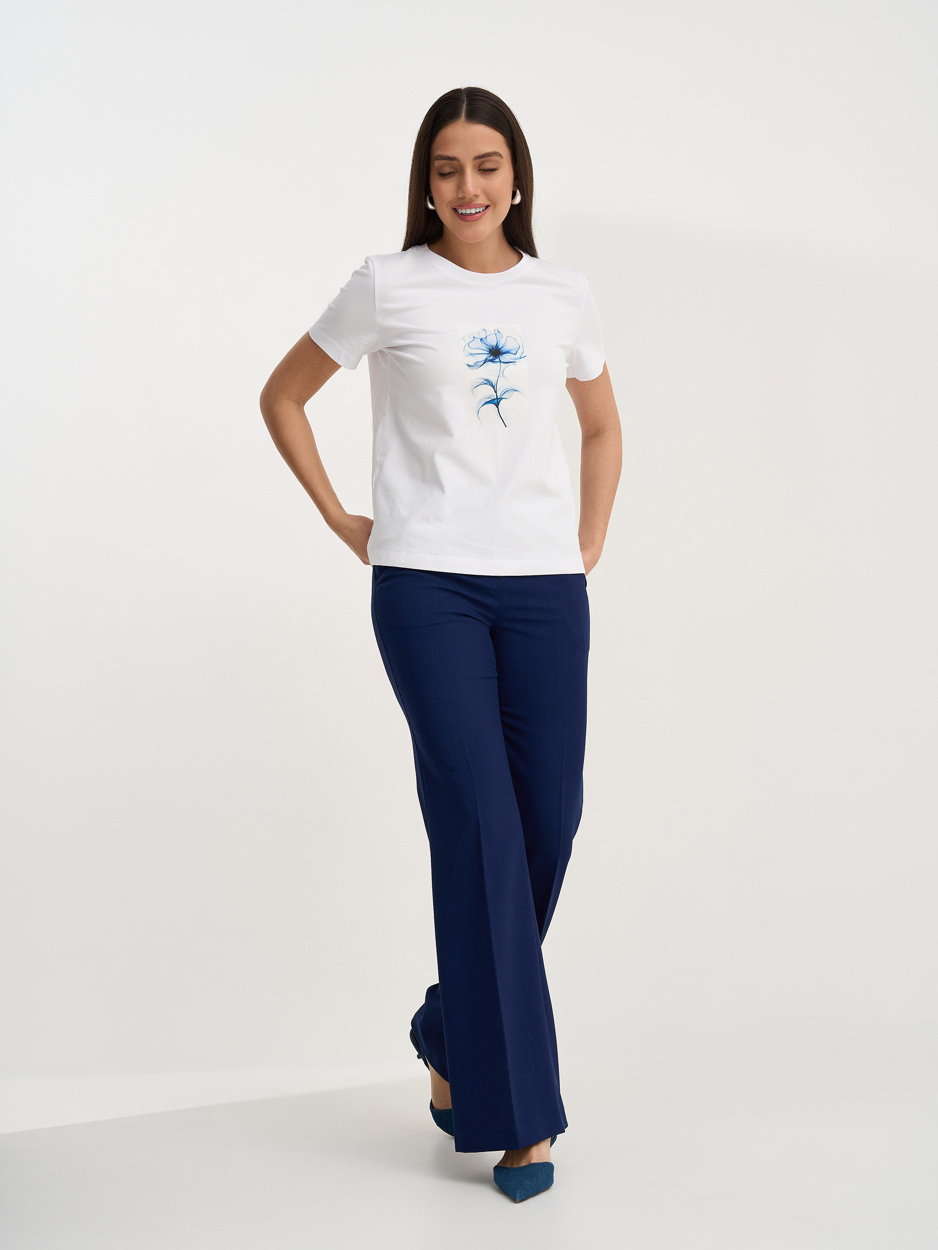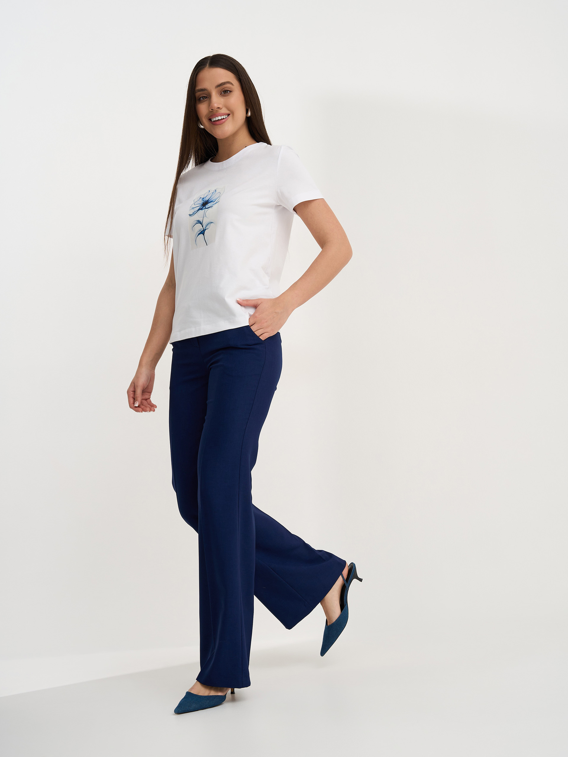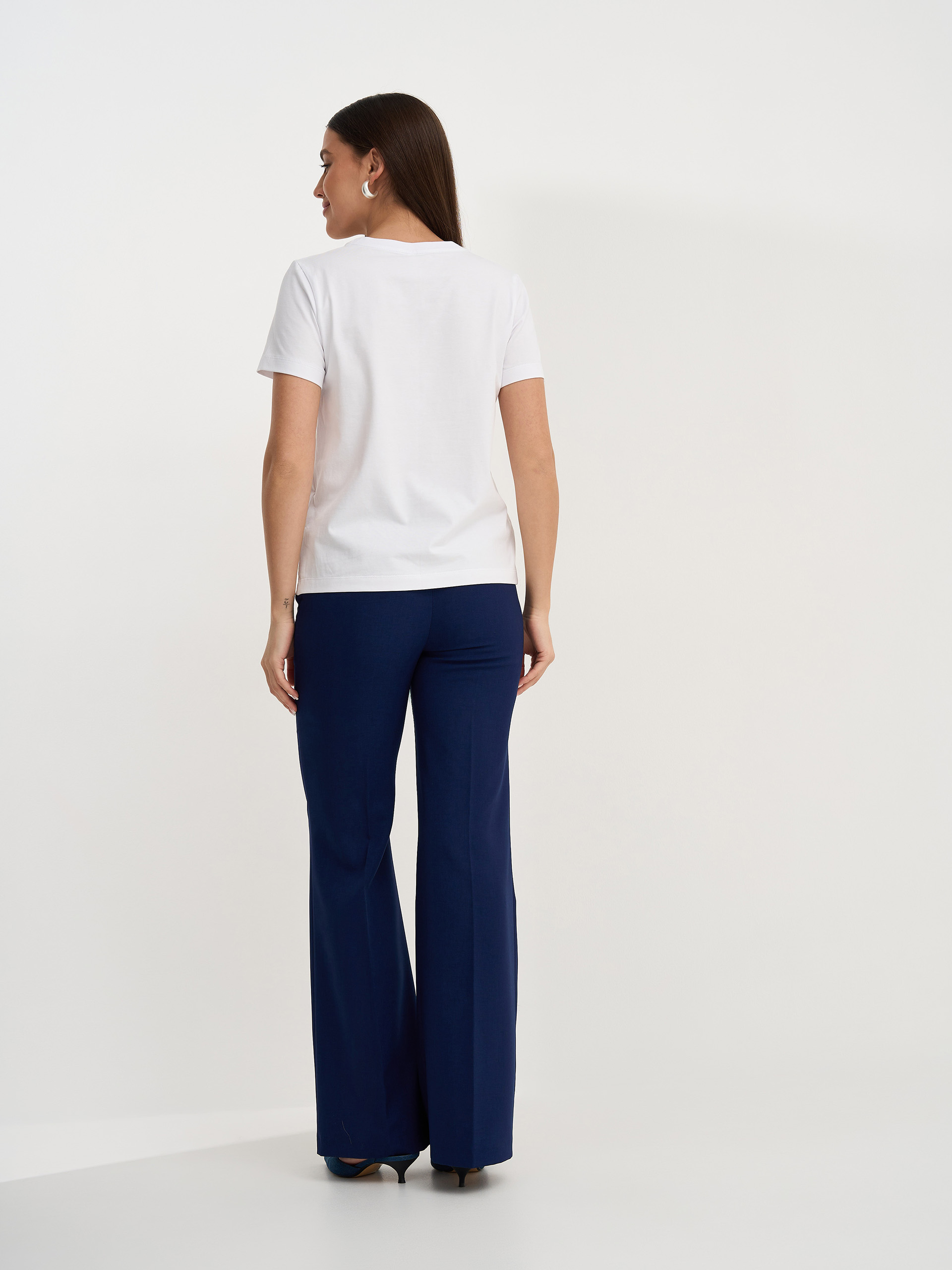 Брюки расклешенные чуть выше колена