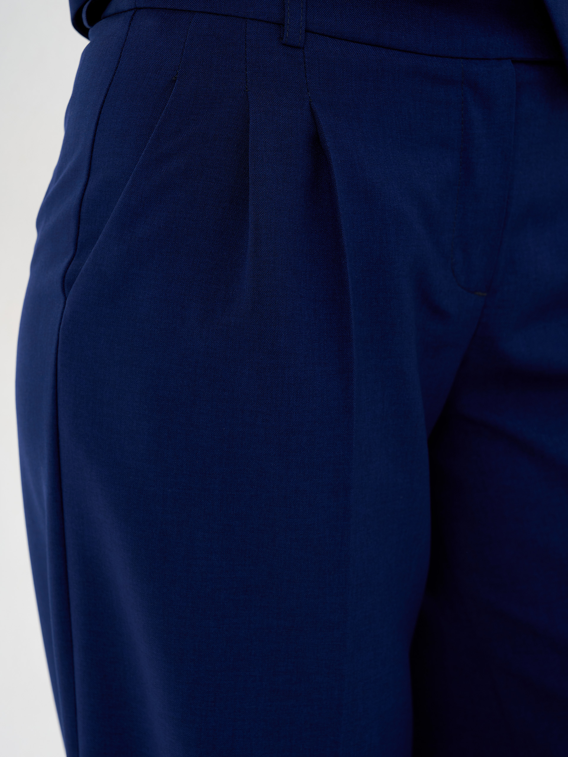 Брюки свободного прямого силуэта, с застроченныеми защипами, из смесовой с хлопком легкой немнущейся ткани.