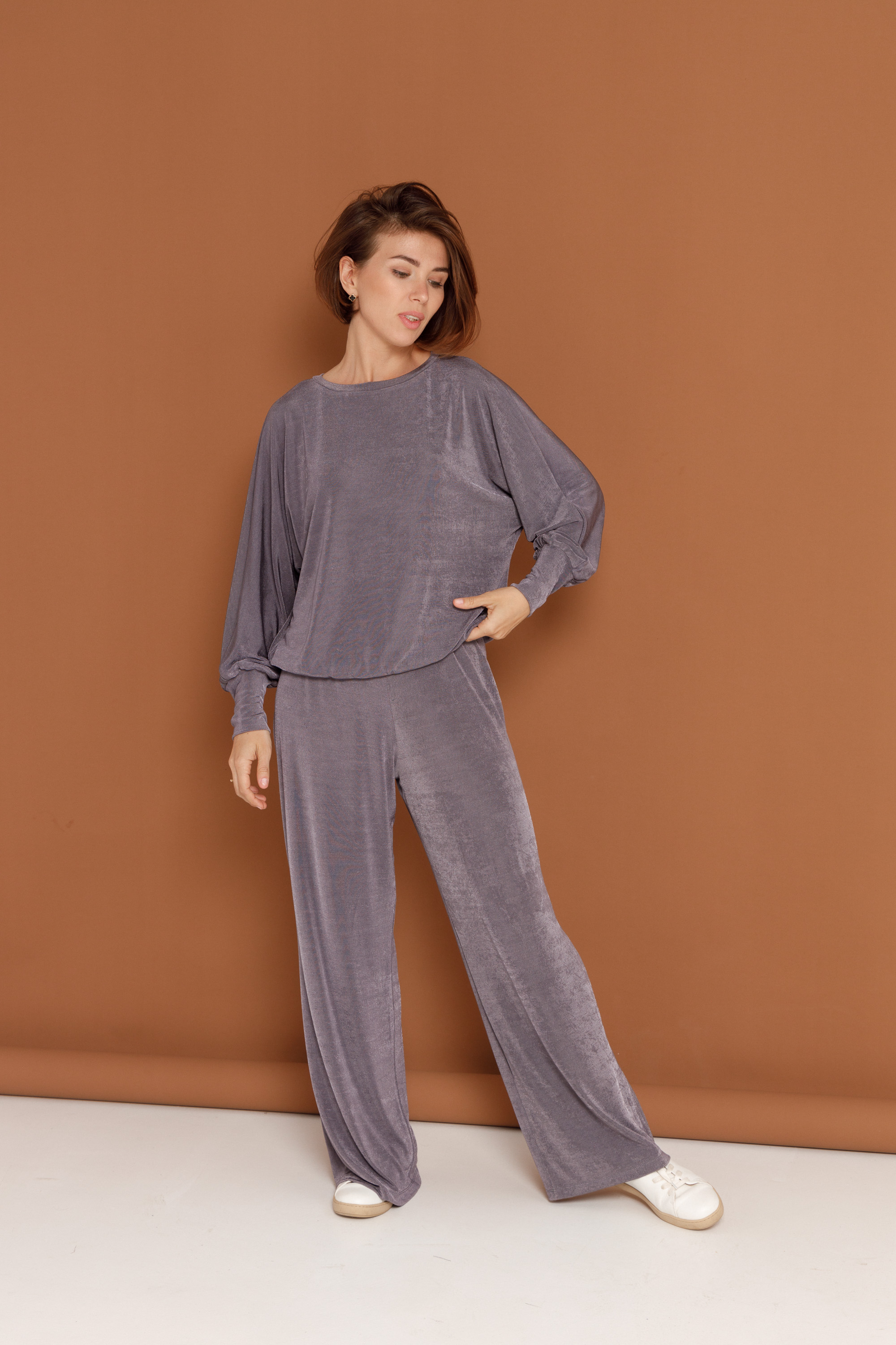 Свободный джемпер, из струящейся эластичной вискозной ткани с эффектом «флеш».