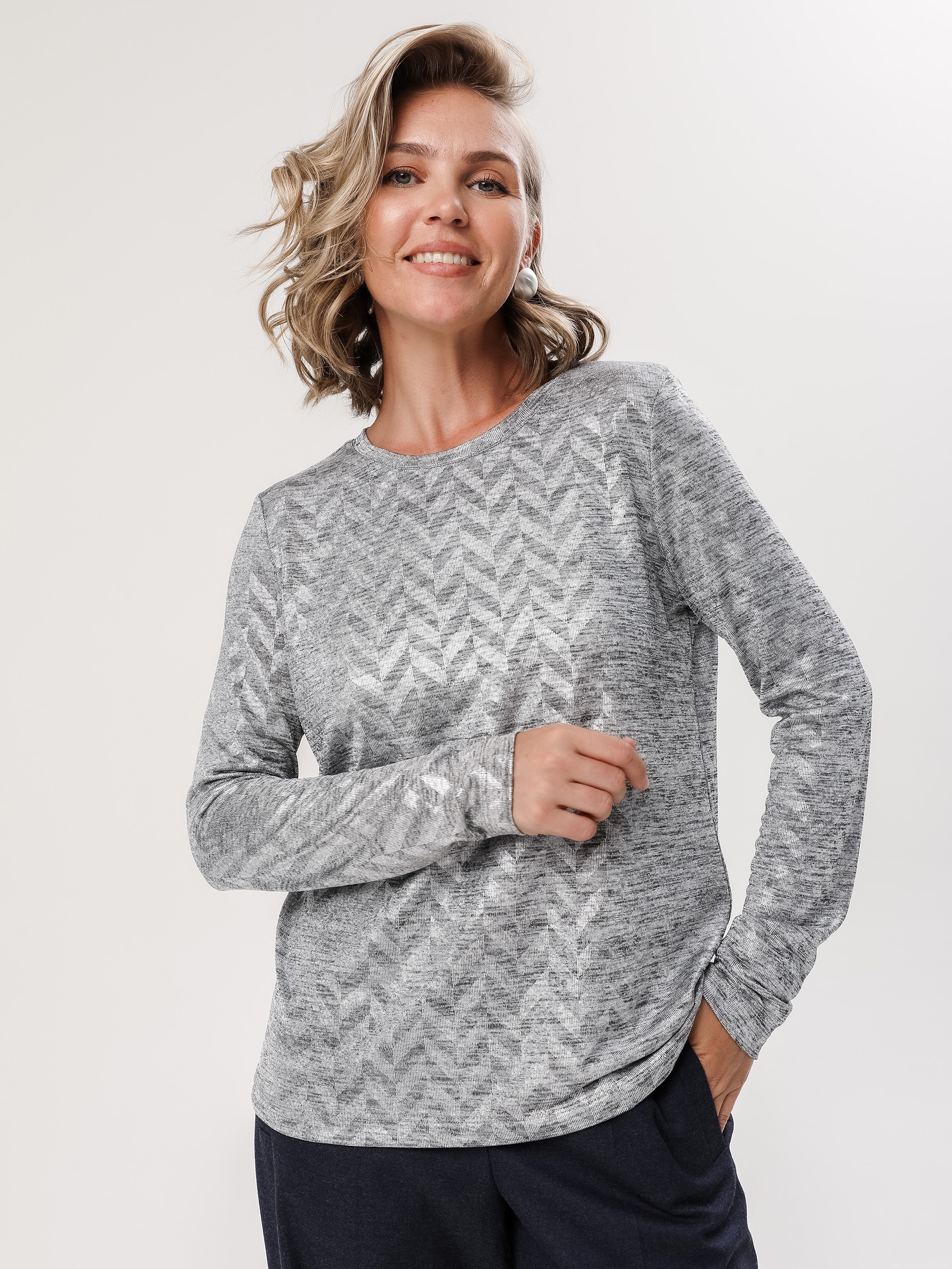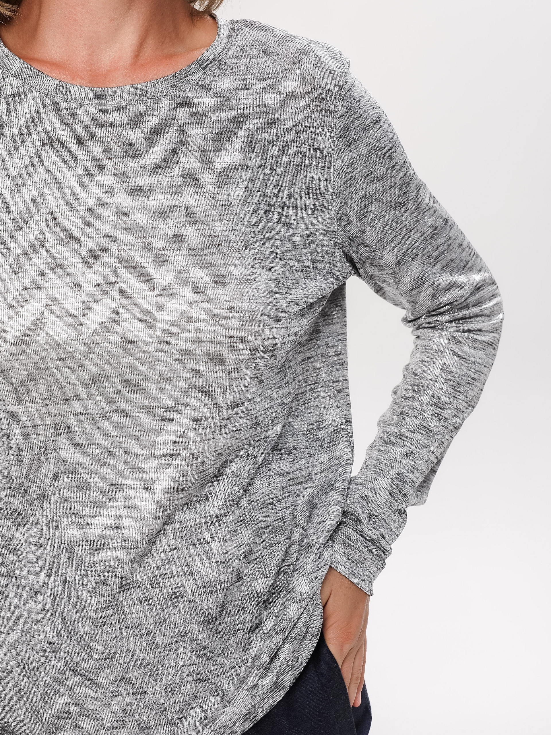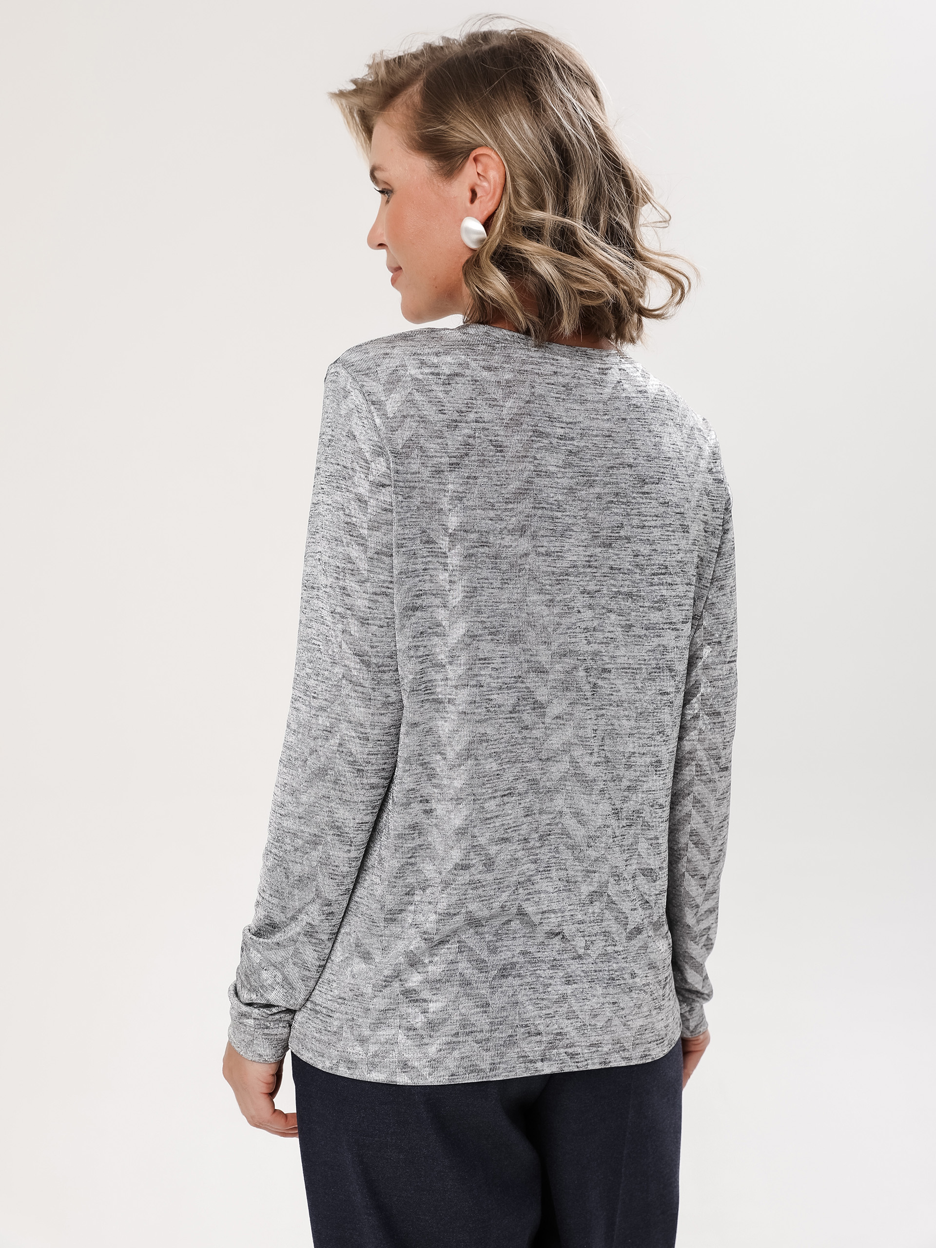Лонгслив из вискозной ткани, пластичной ткани с эффектом металлик.