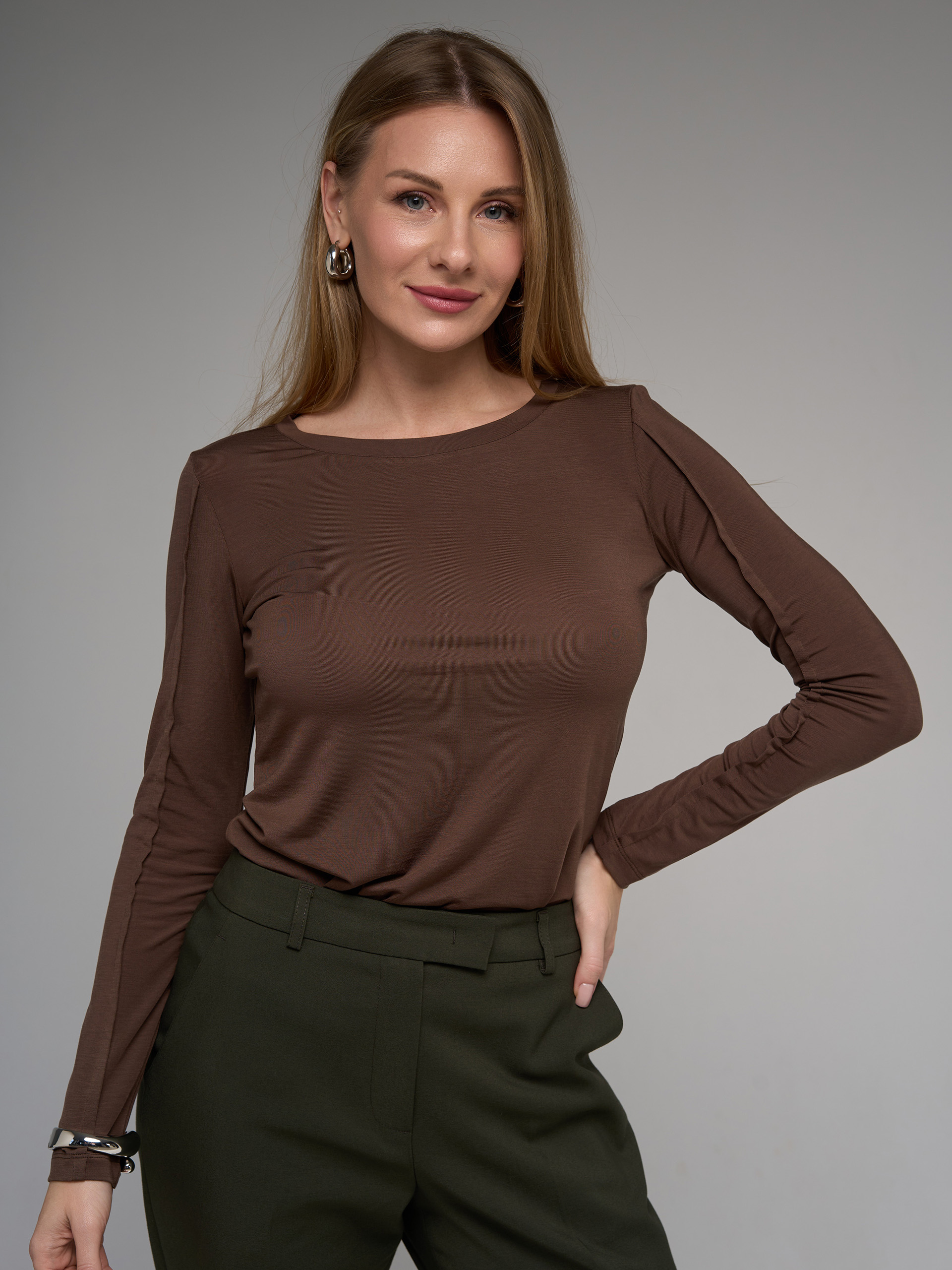 Лонгслив, из тонкого вискозного джерси, с декоративными швами по рукавам и спинке.