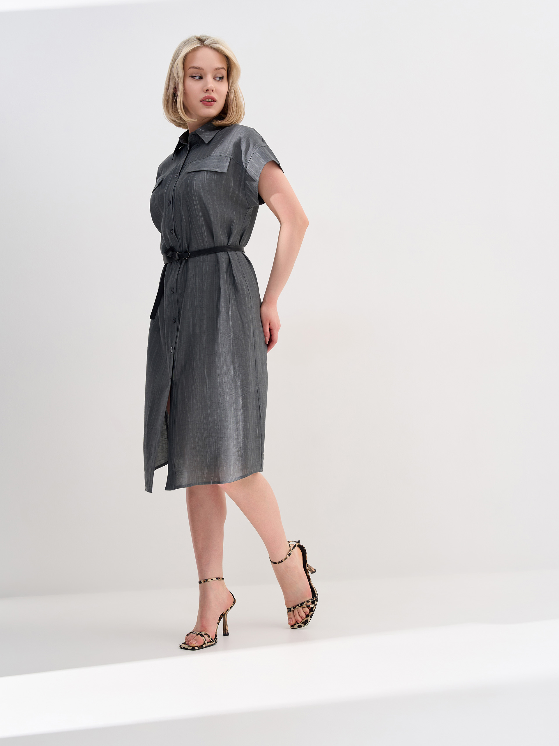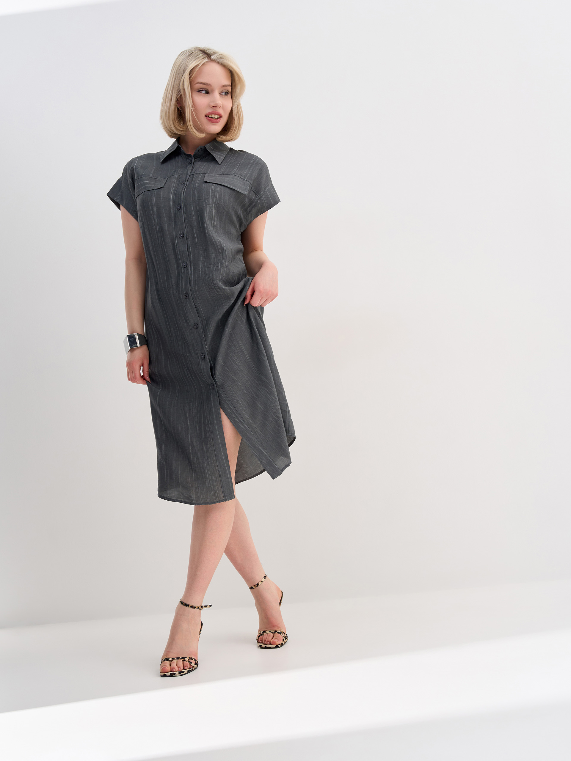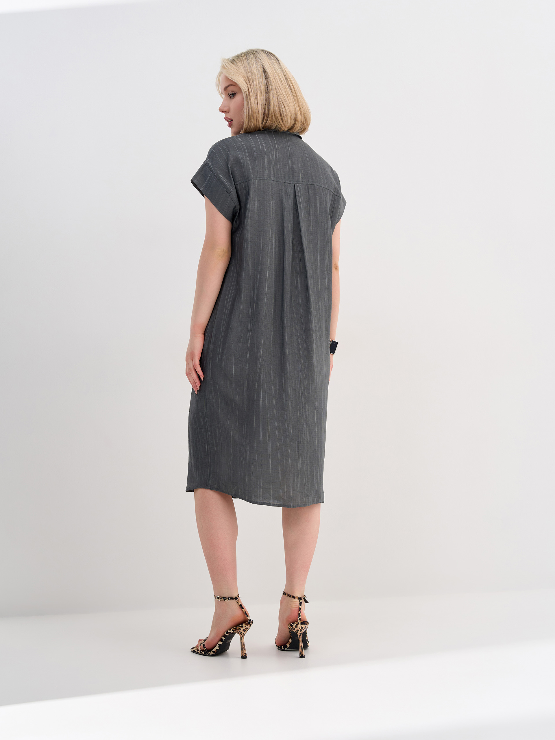 Платье в стиле "сафари", из фактурной смесовой ткани с вискозой и льном в составе, с эффектом застиранного денима.