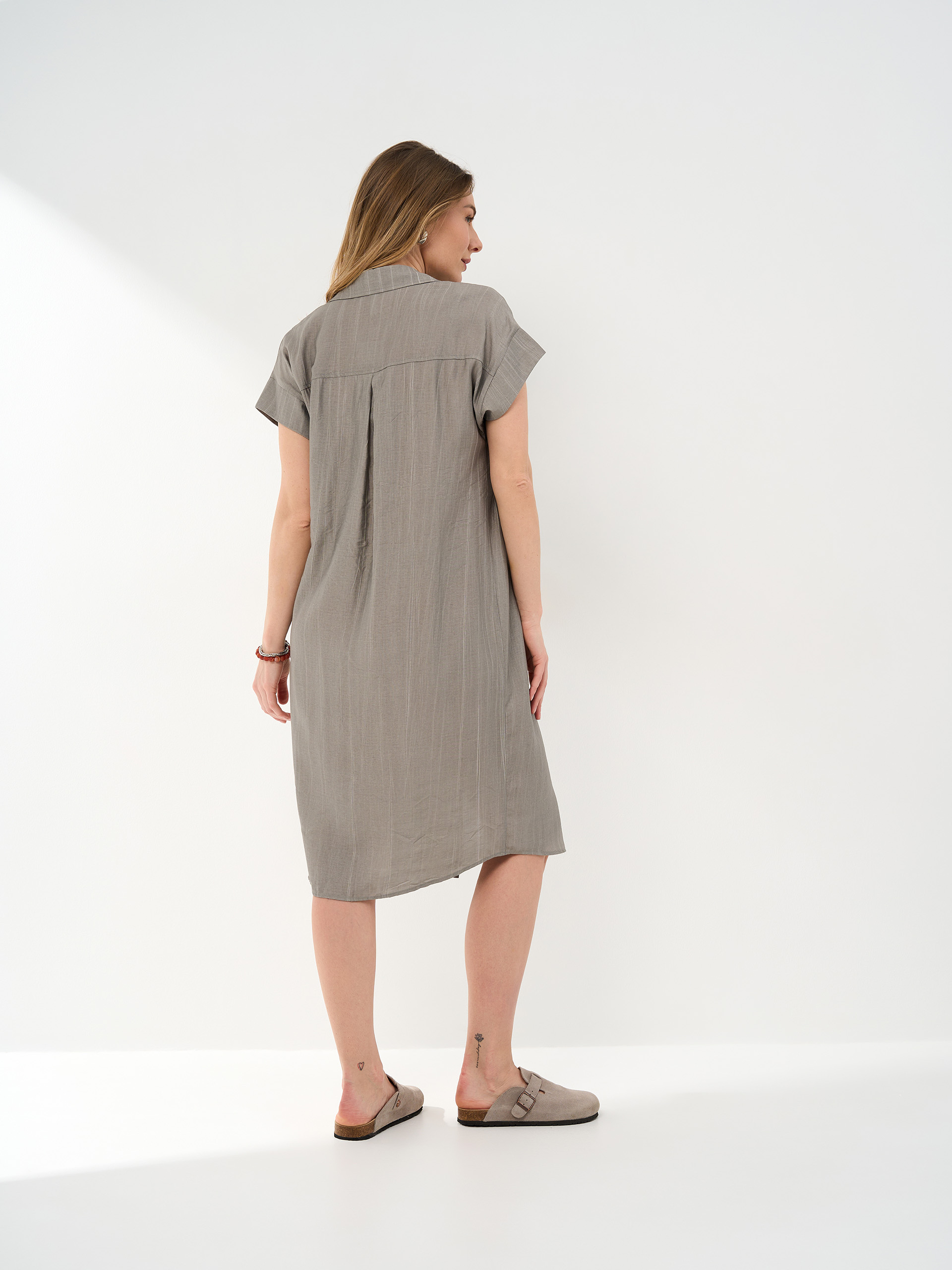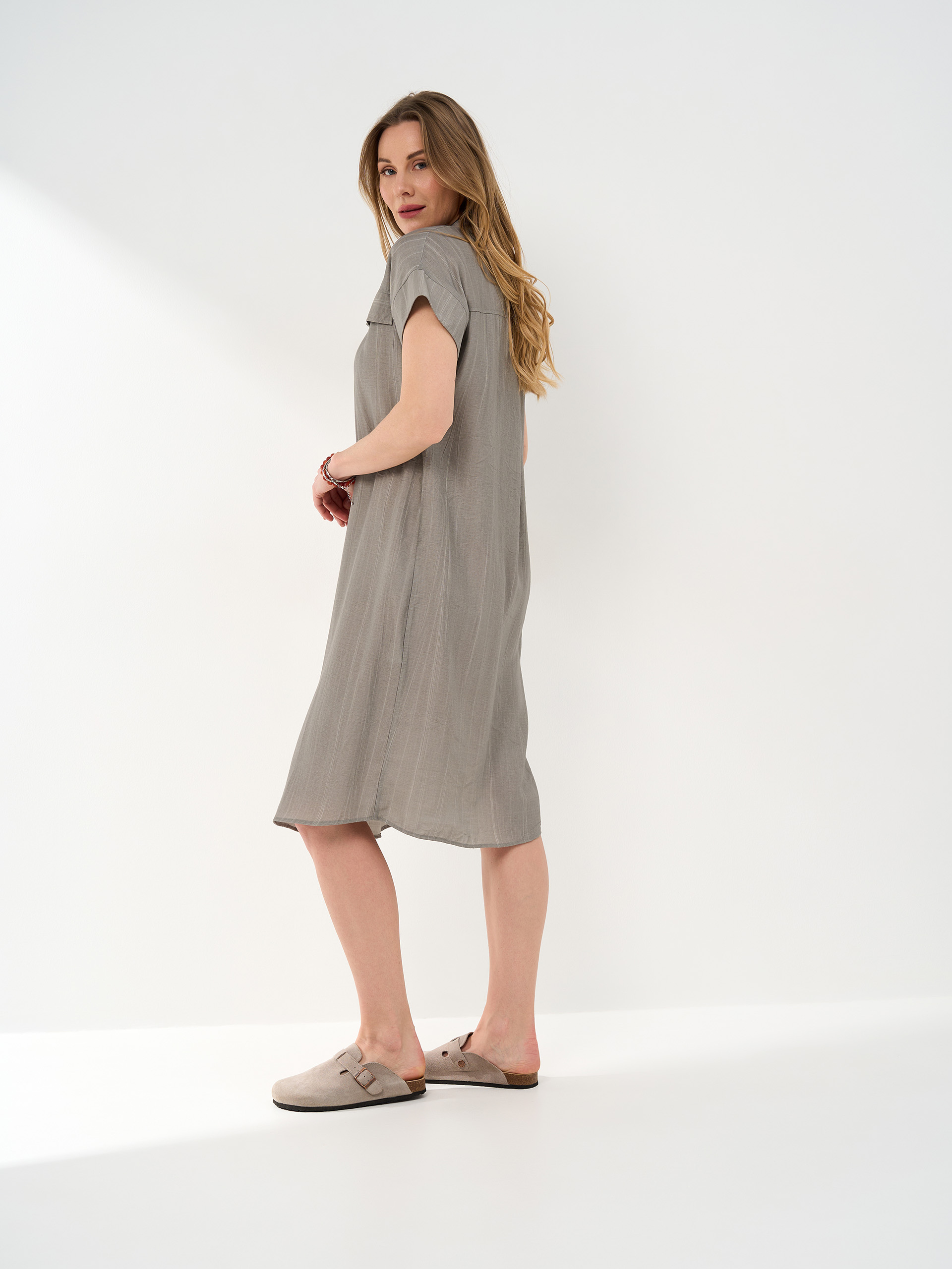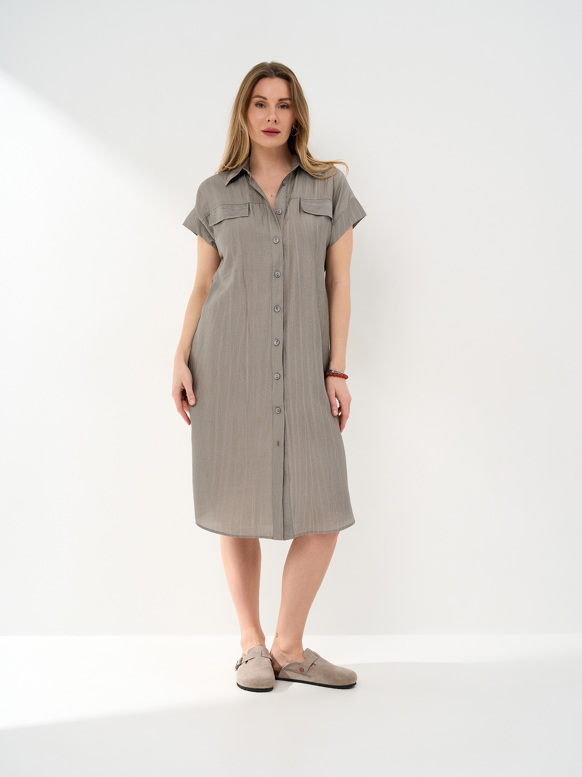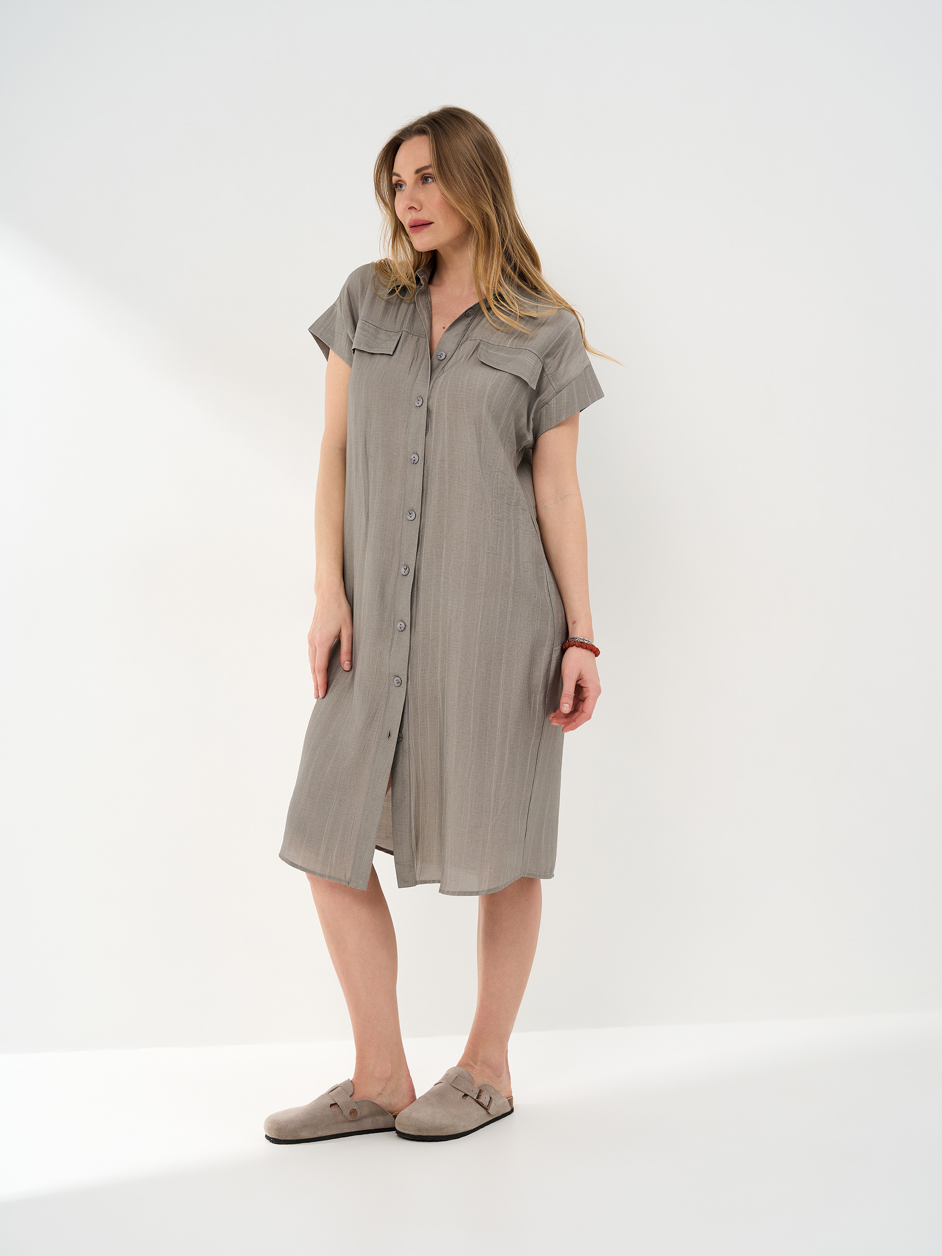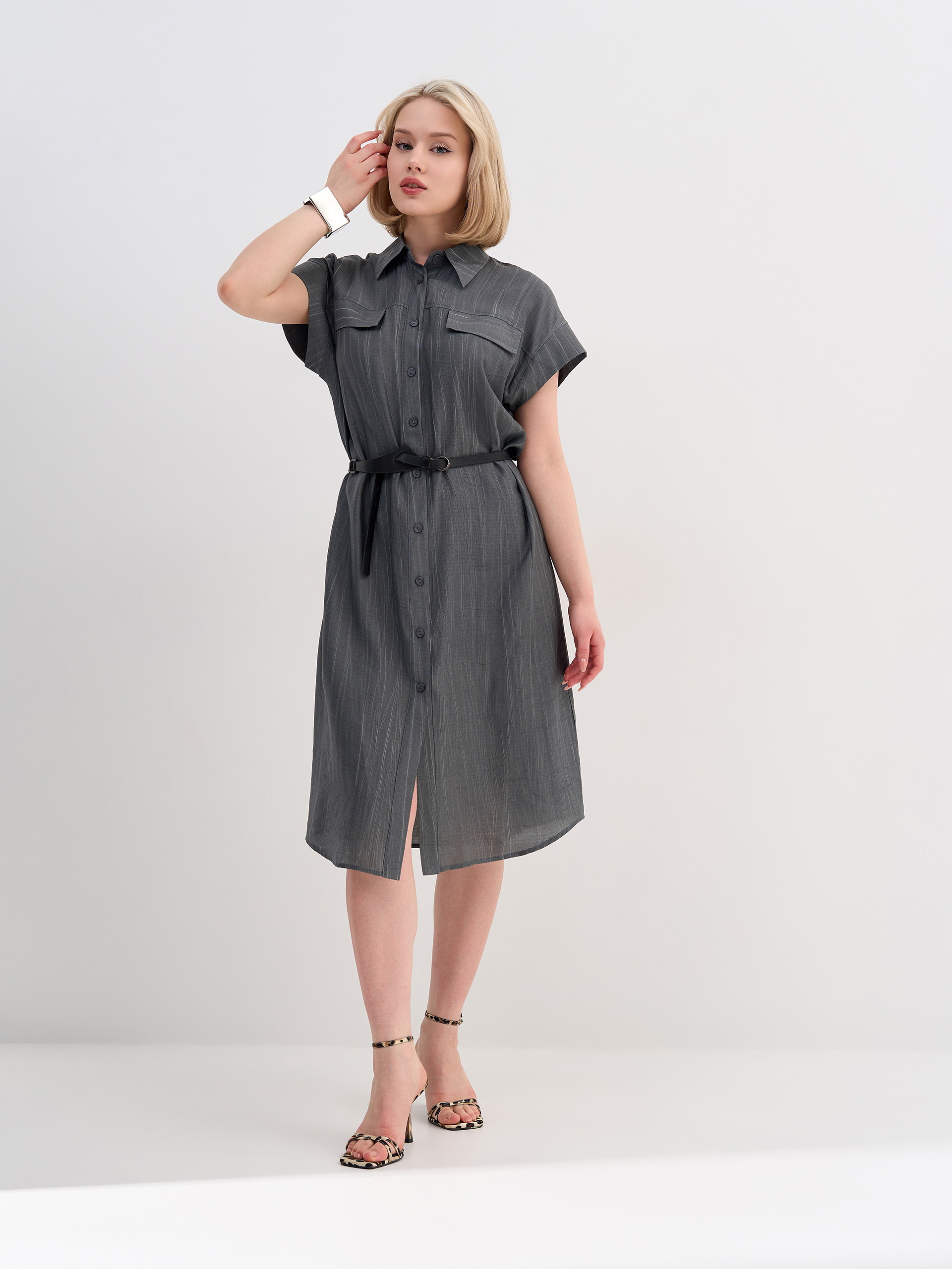 Платье в стиле "сафари", из фактурной смесовой ткани с вискозой и льном в составе, с эффектом застиранного денима.