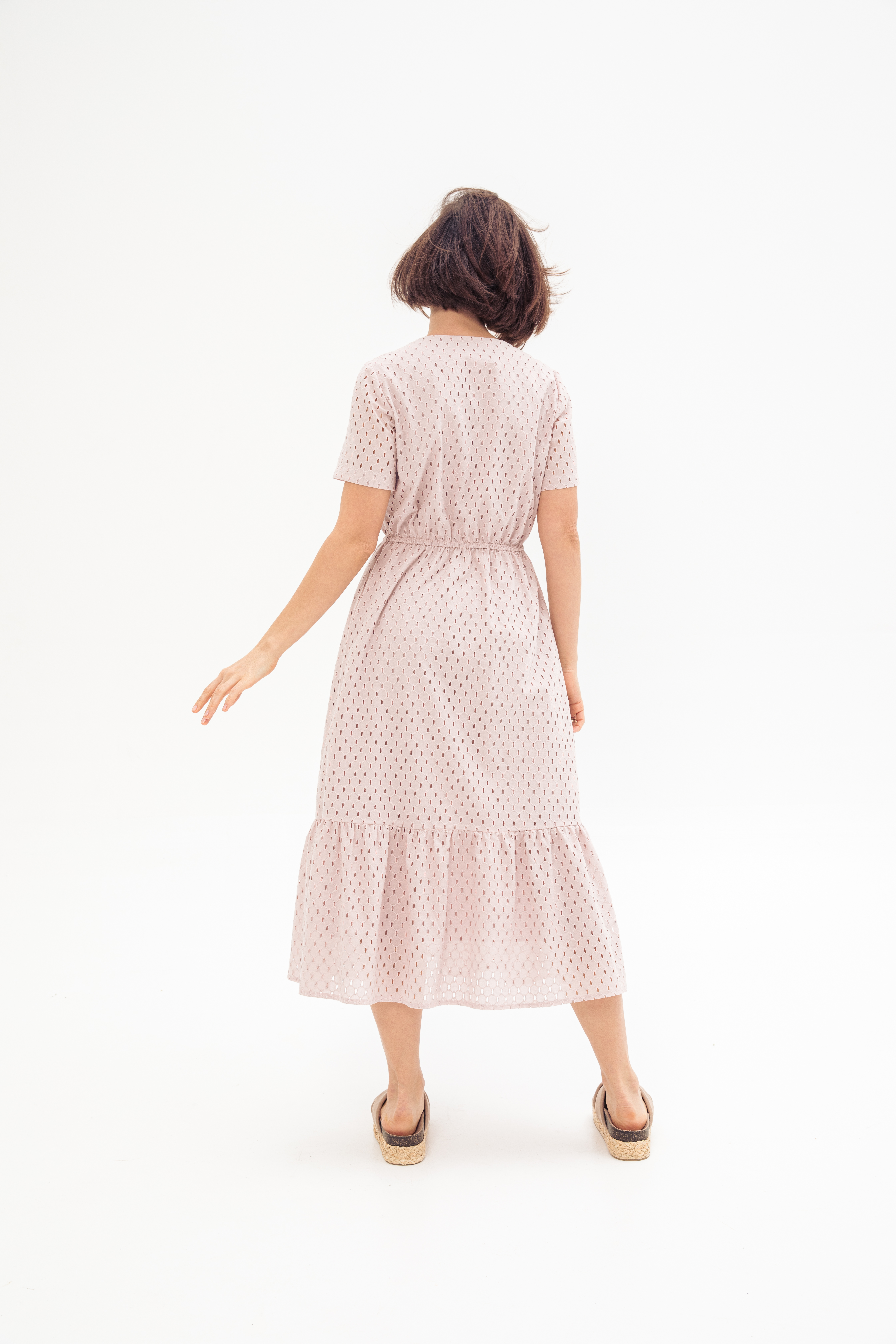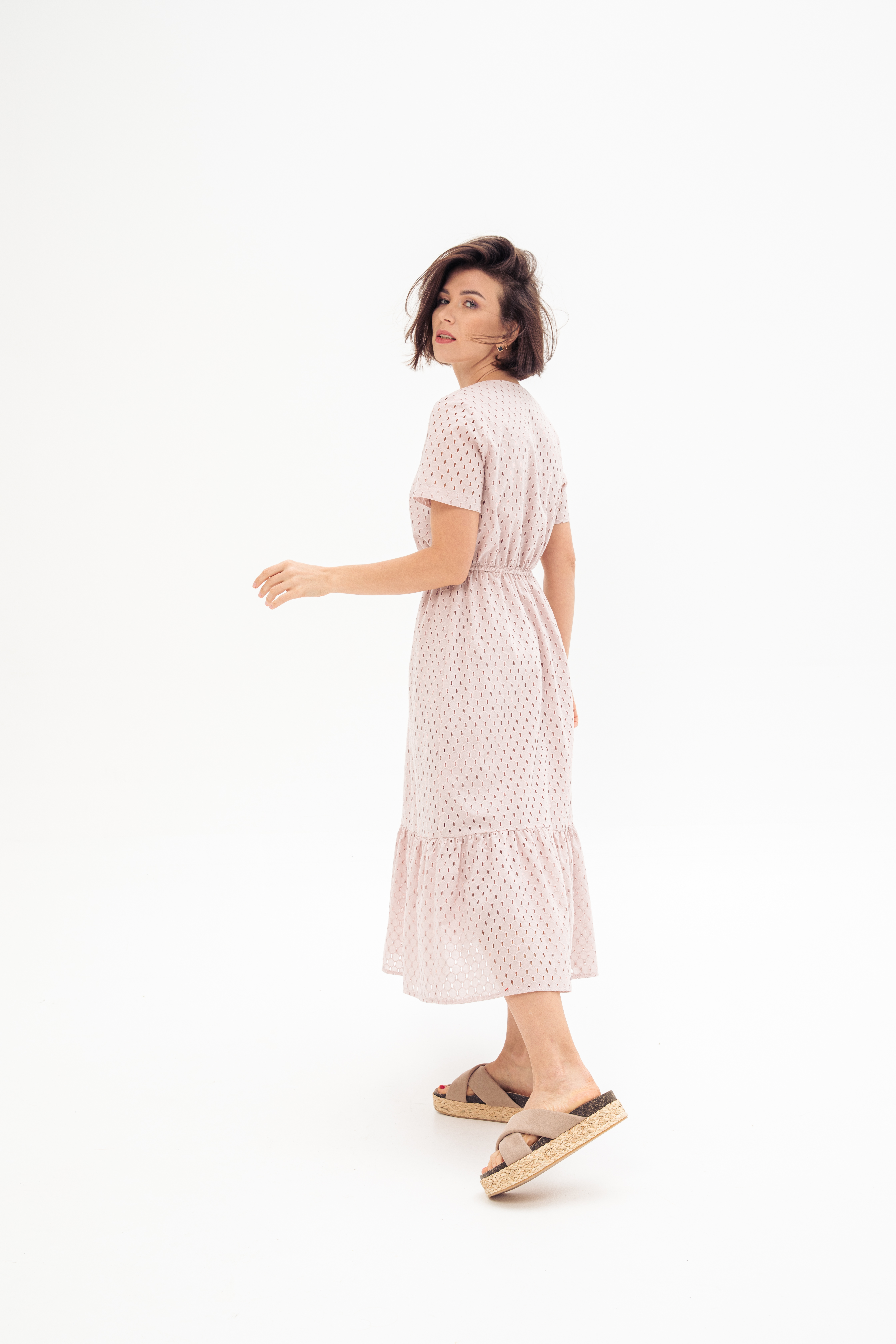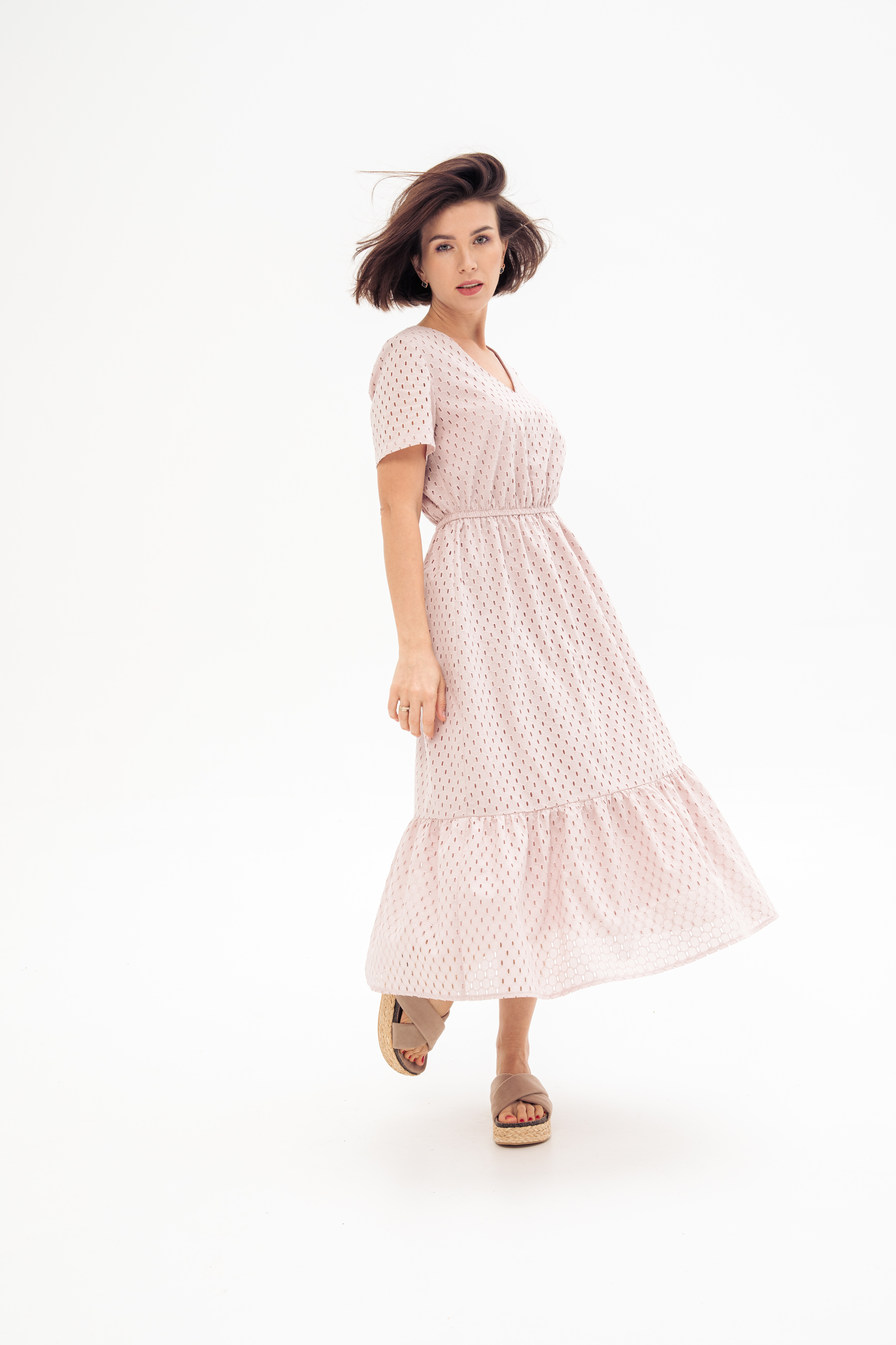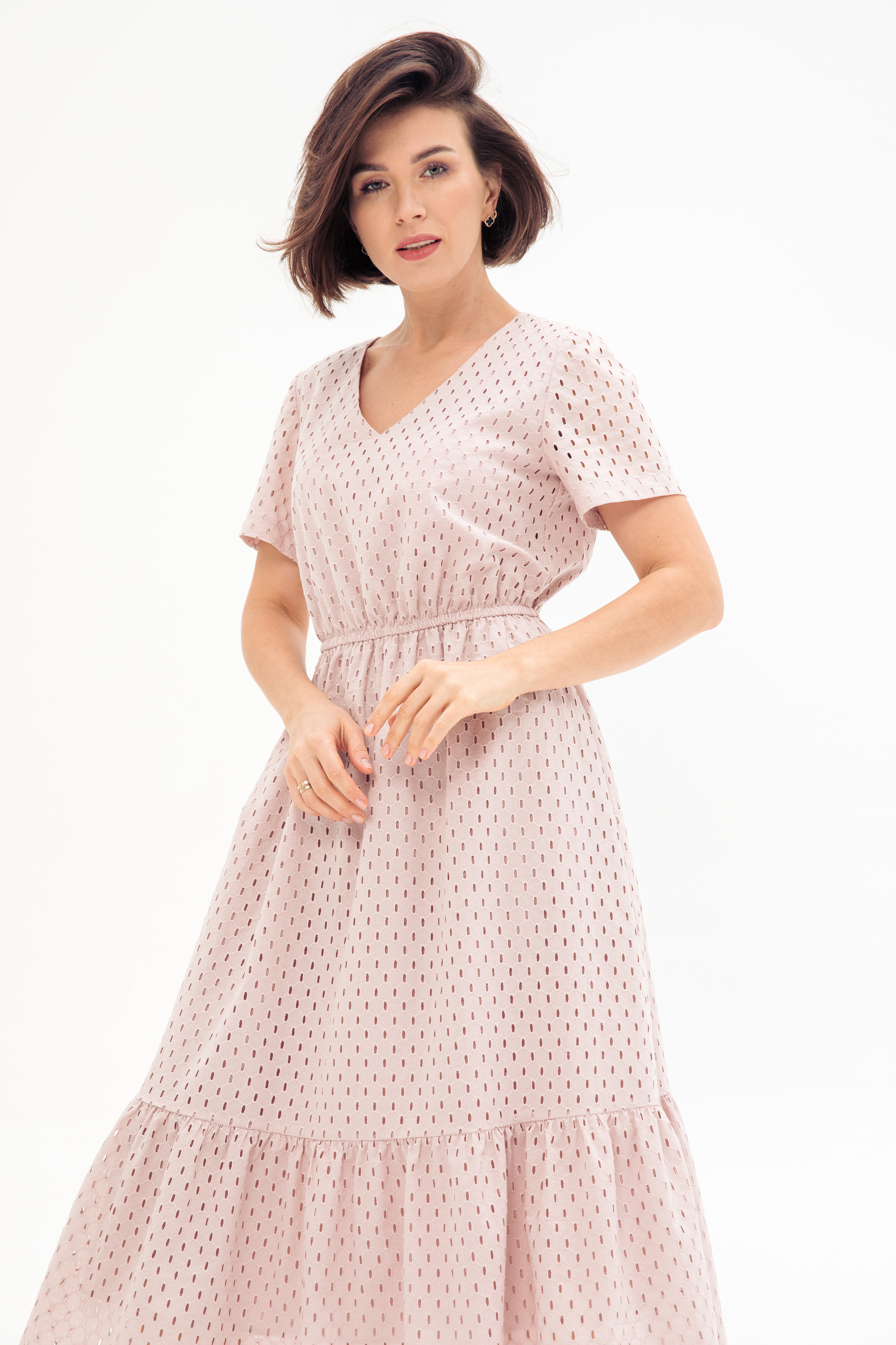 Платье с воланом из хлопкового шитья. Цвет капучино.