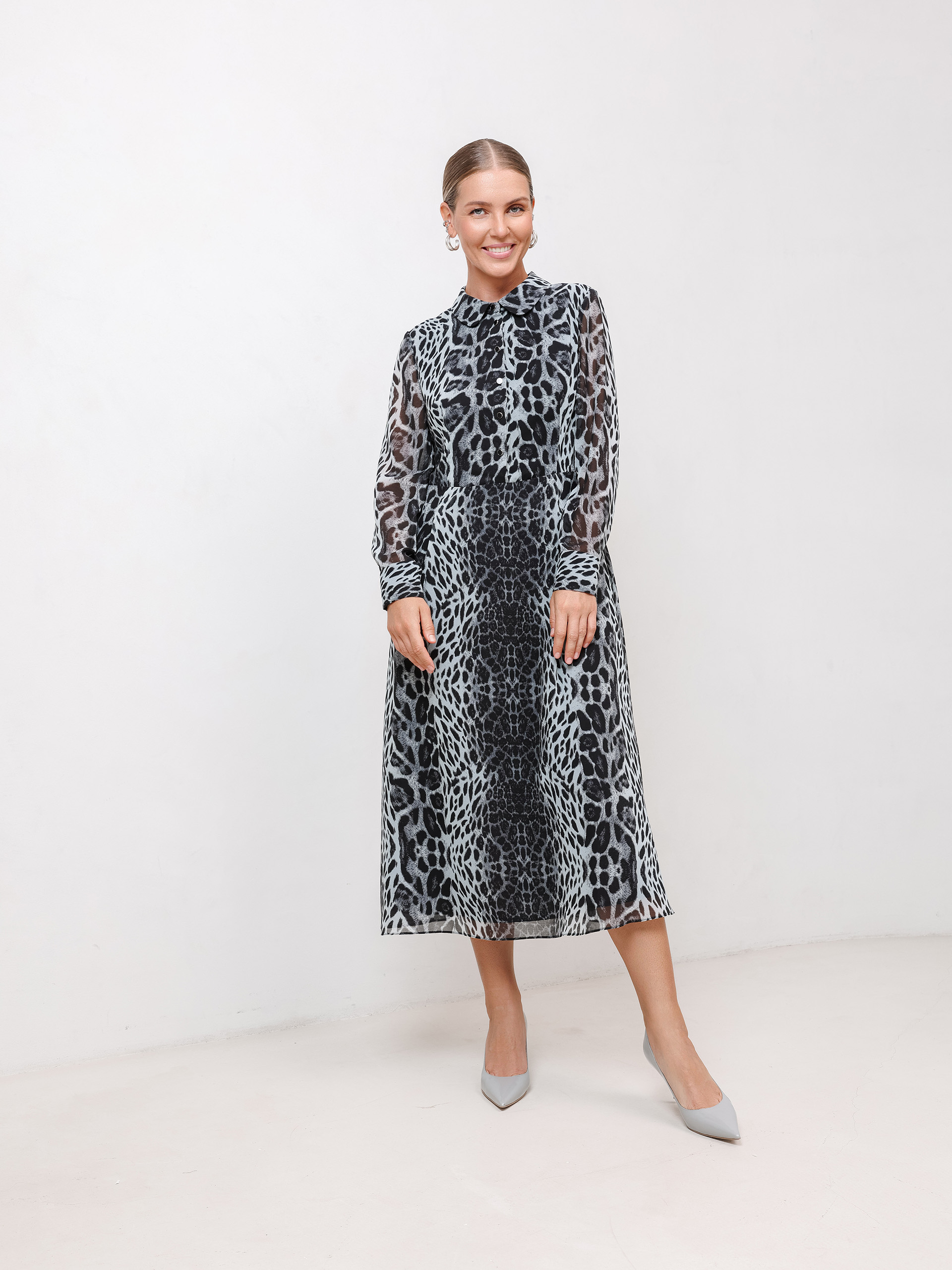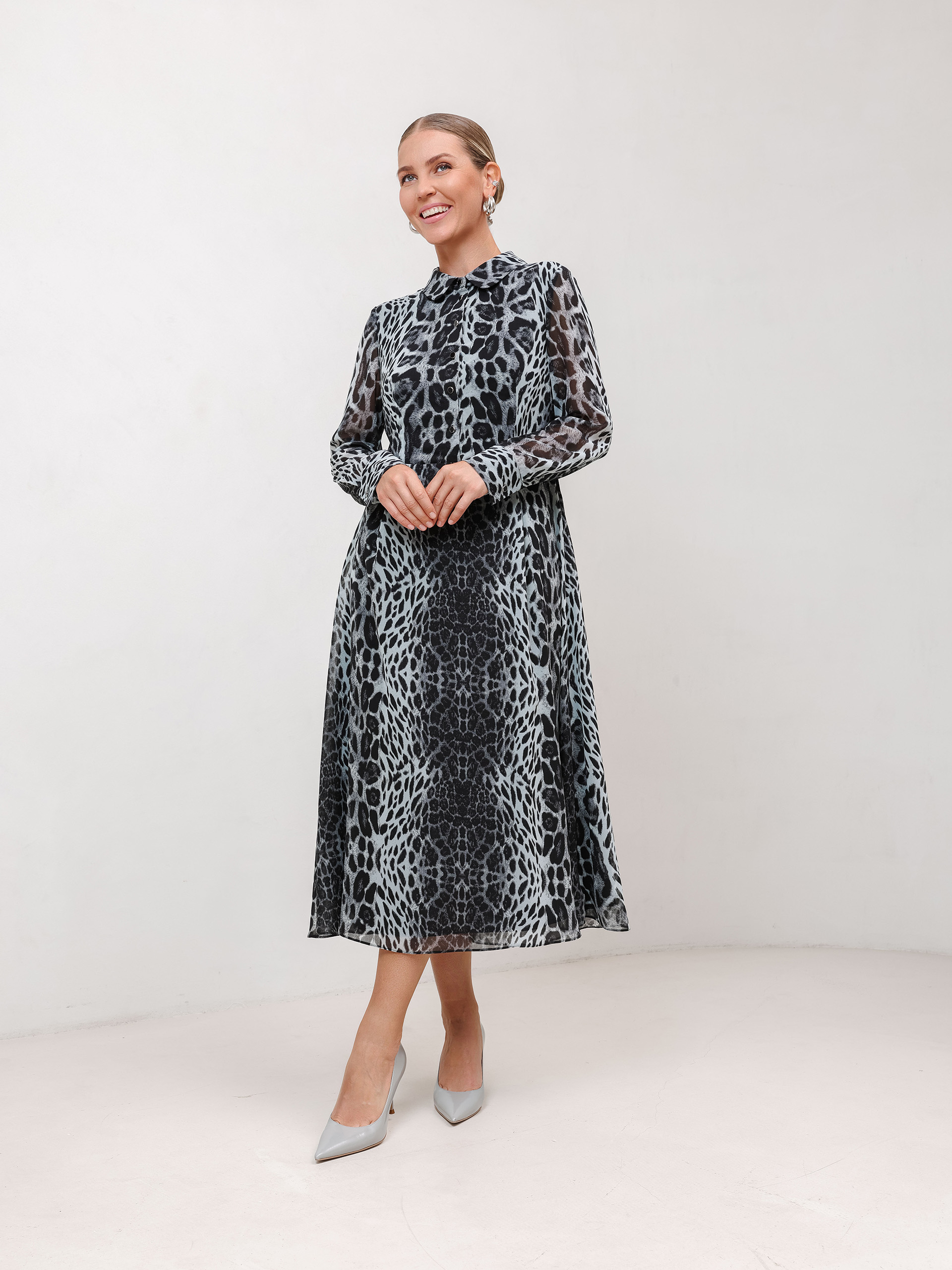 Платье из шифона длиной мидакси, подклад, в комплекте ремень из экокожи.