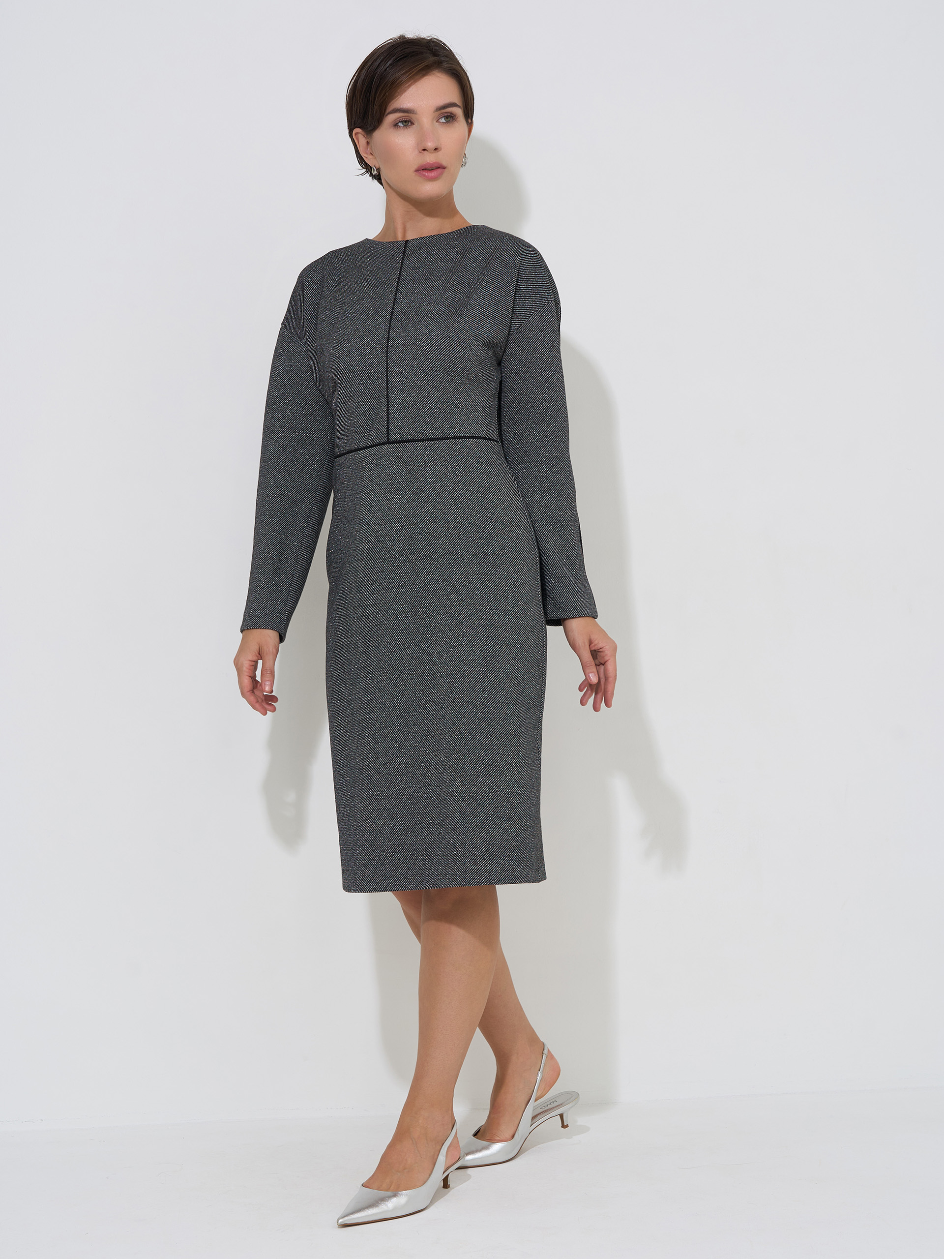 Трикотажное платье с к отделкой контрастным кантом, вискозное фактурное полотно джерси с небольшим вкраплением металлической нити