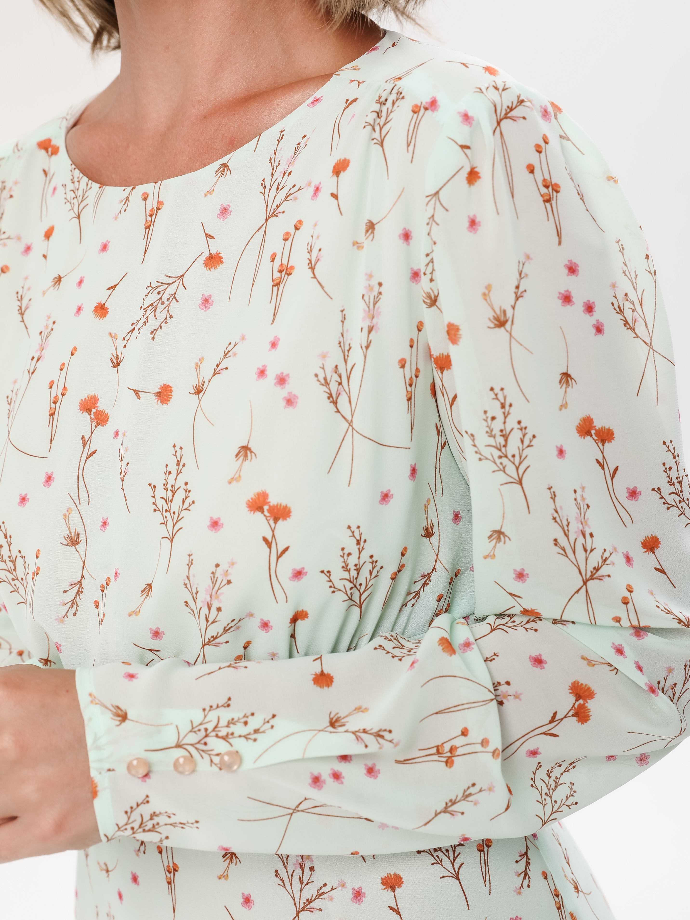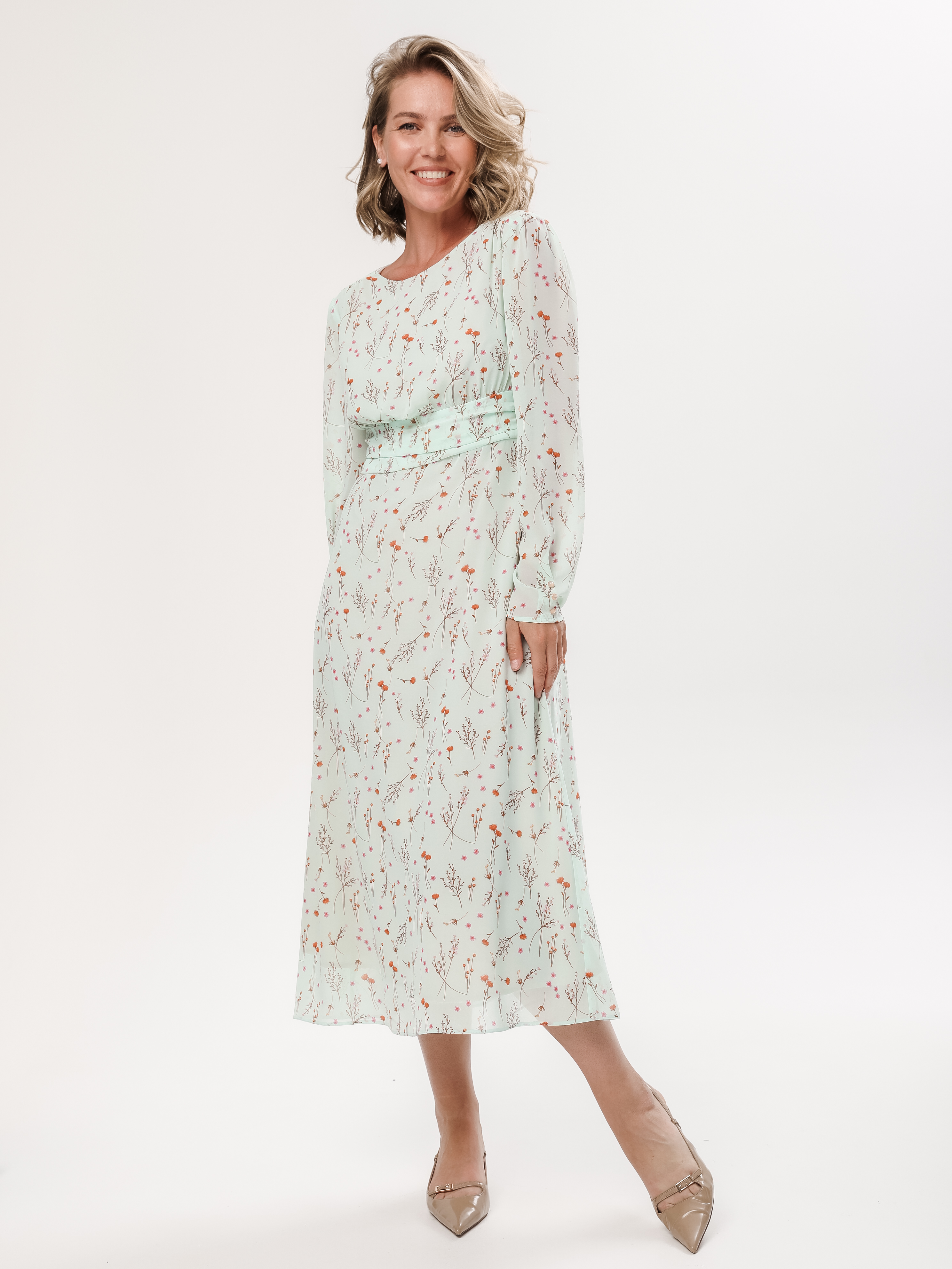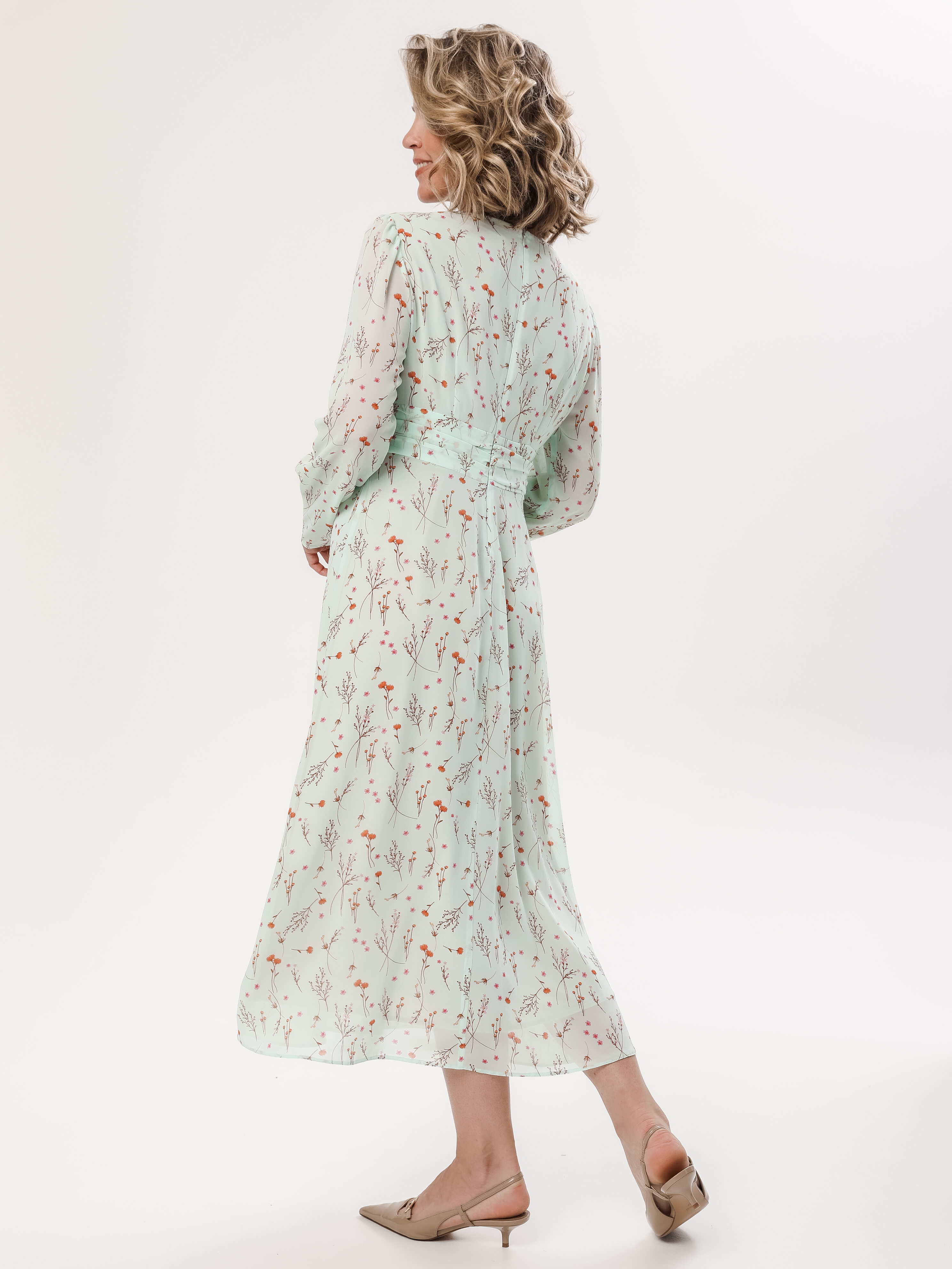 Платье нежное шифоновое, с драпировкой по талии, приталенное, подклад.
