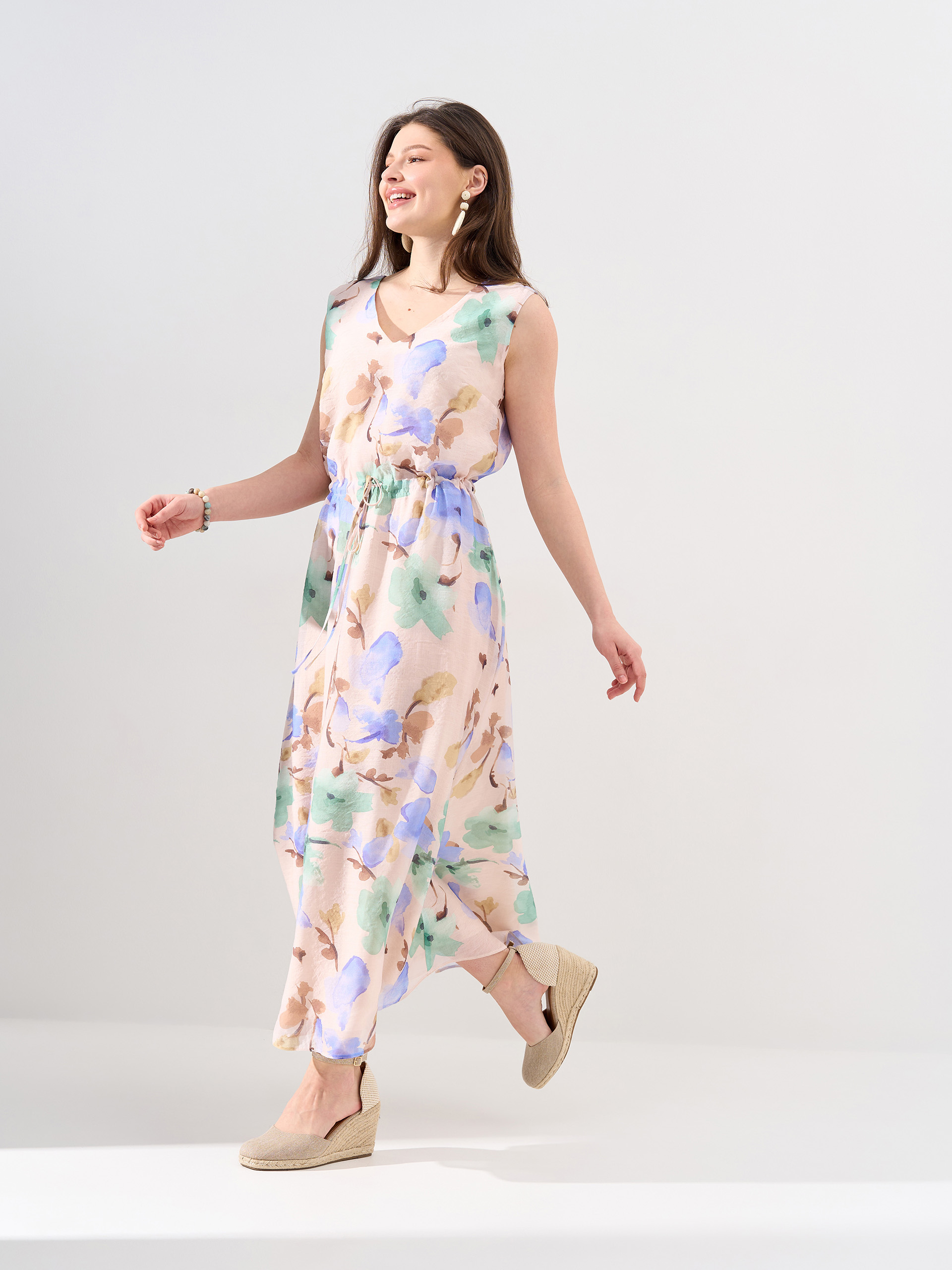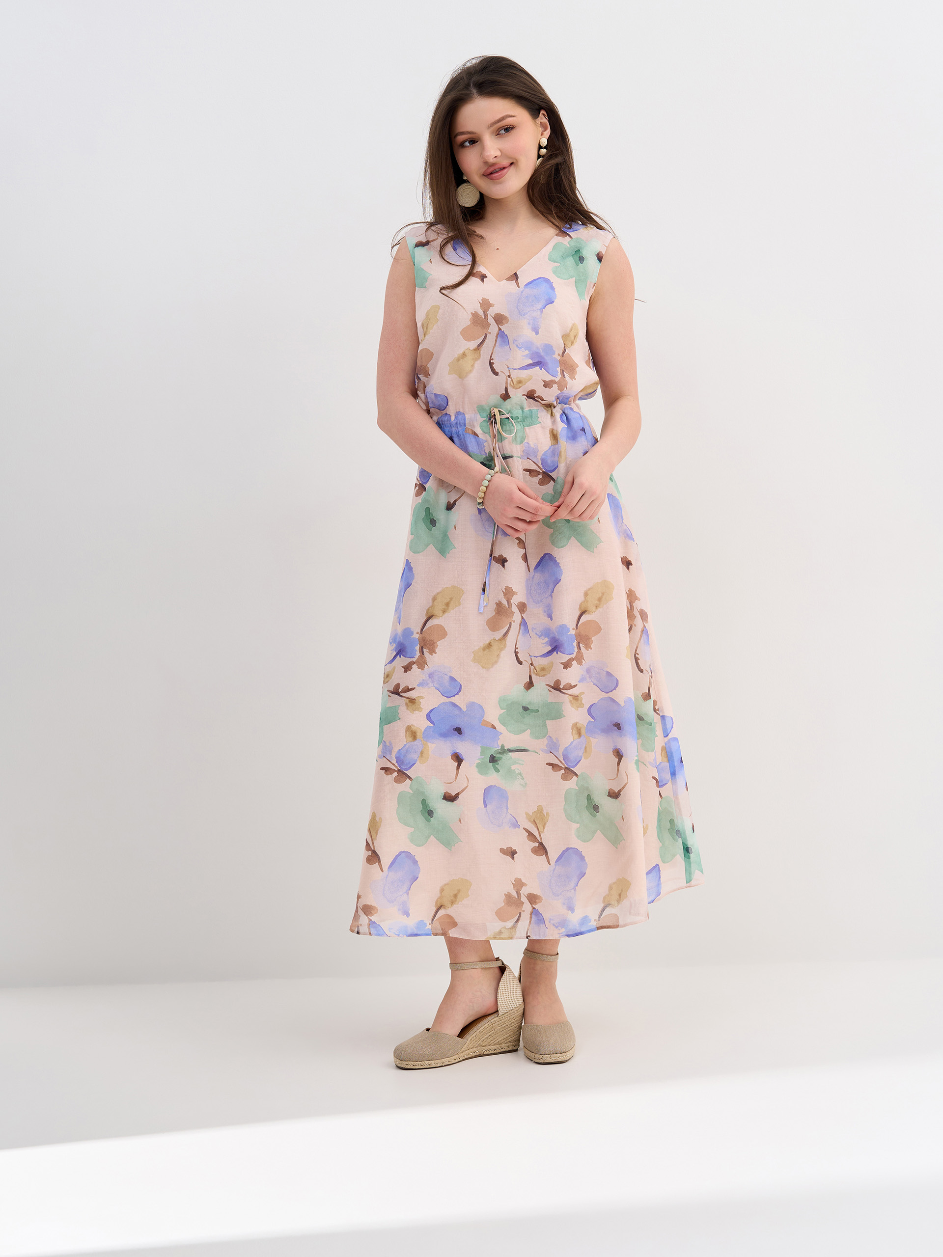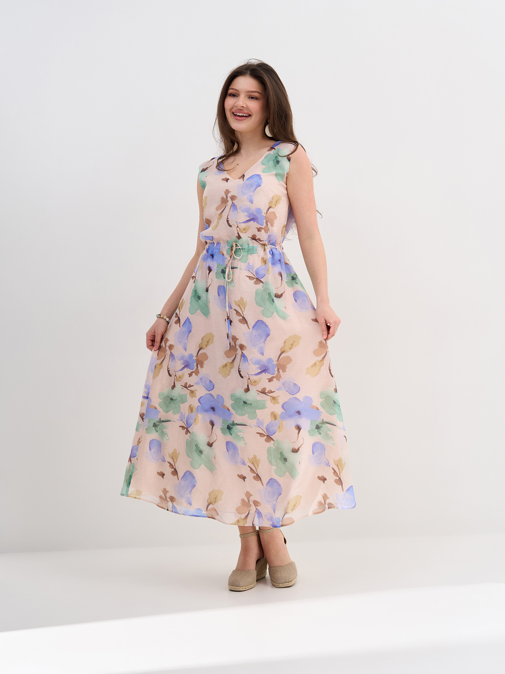 Платье с кулиской по талии, расслабленный крой, тонкая вискозная ткань, на подкладке.