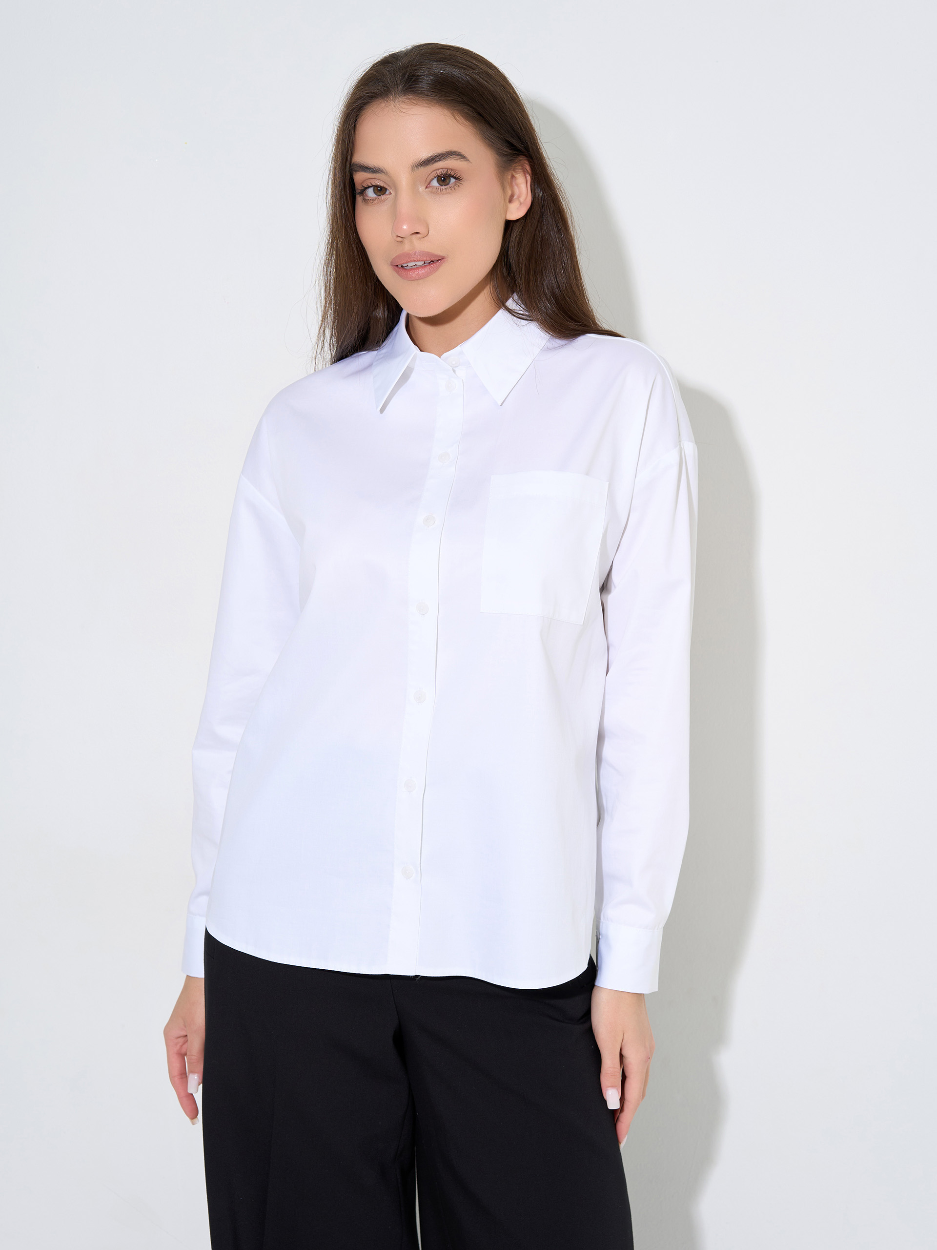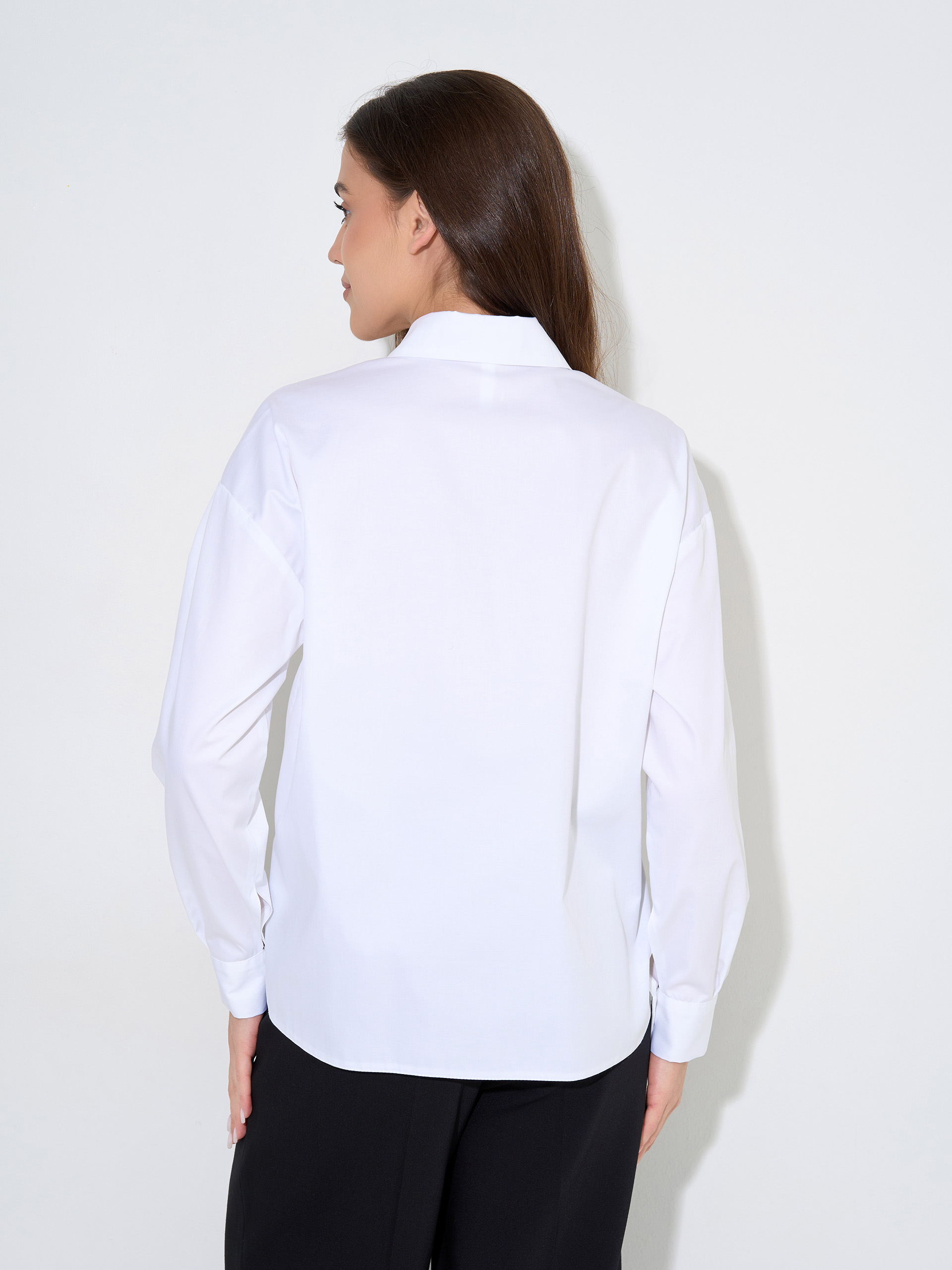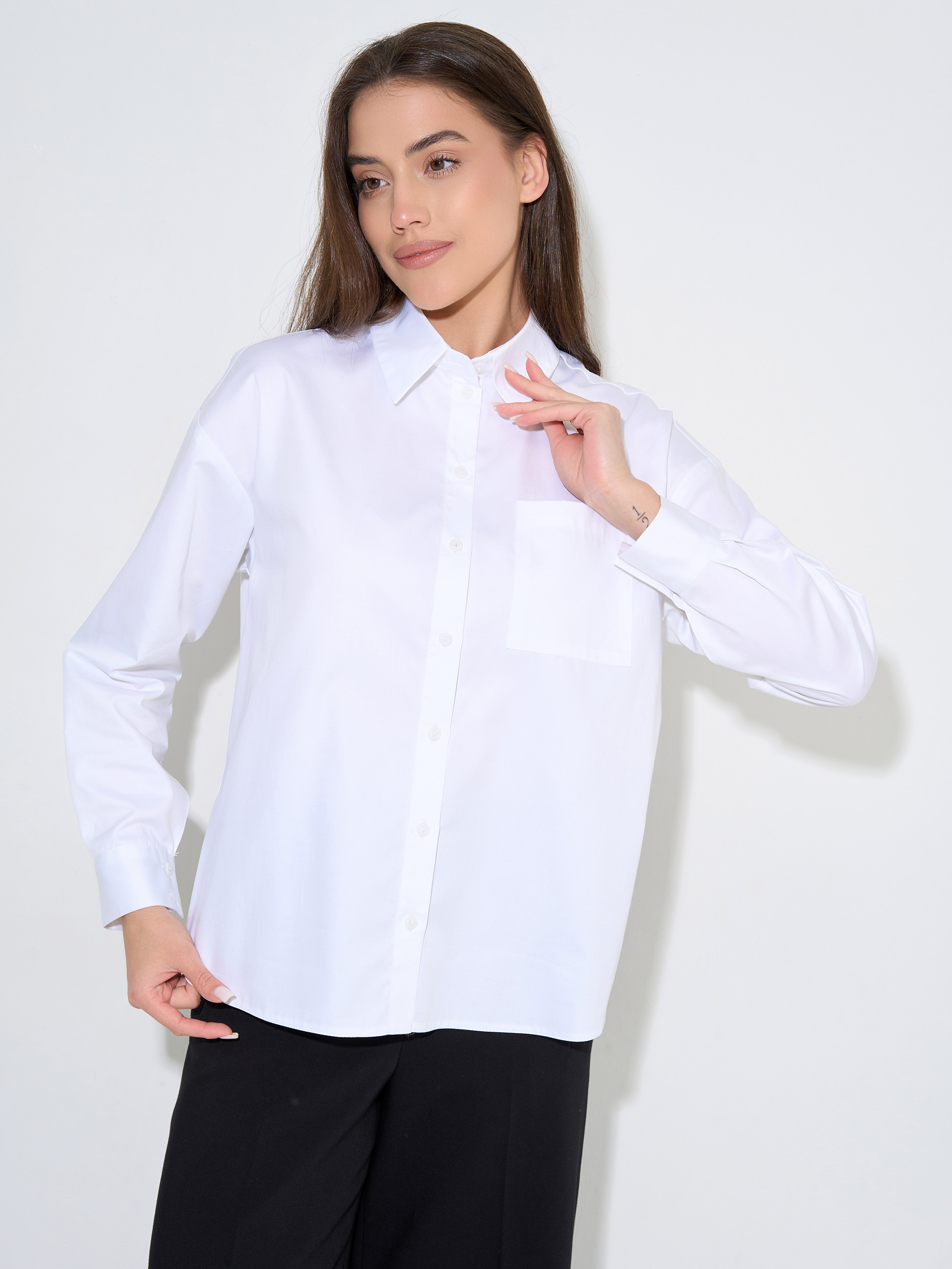 Хлопковая рубашка средней длины. Средний объём, накладной карман.