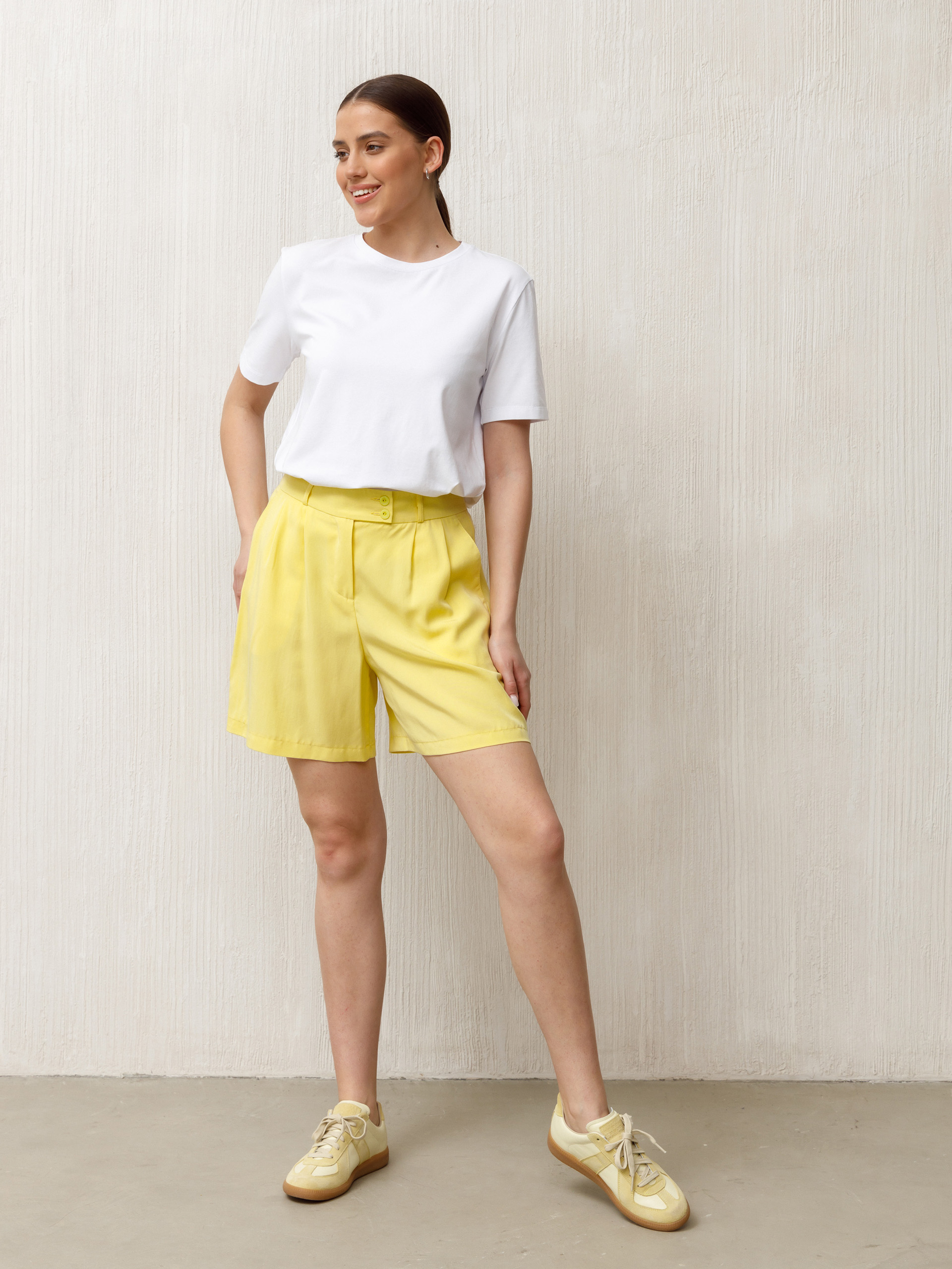 Короткие шорты, из благородной струящейся ткани "тенсел".