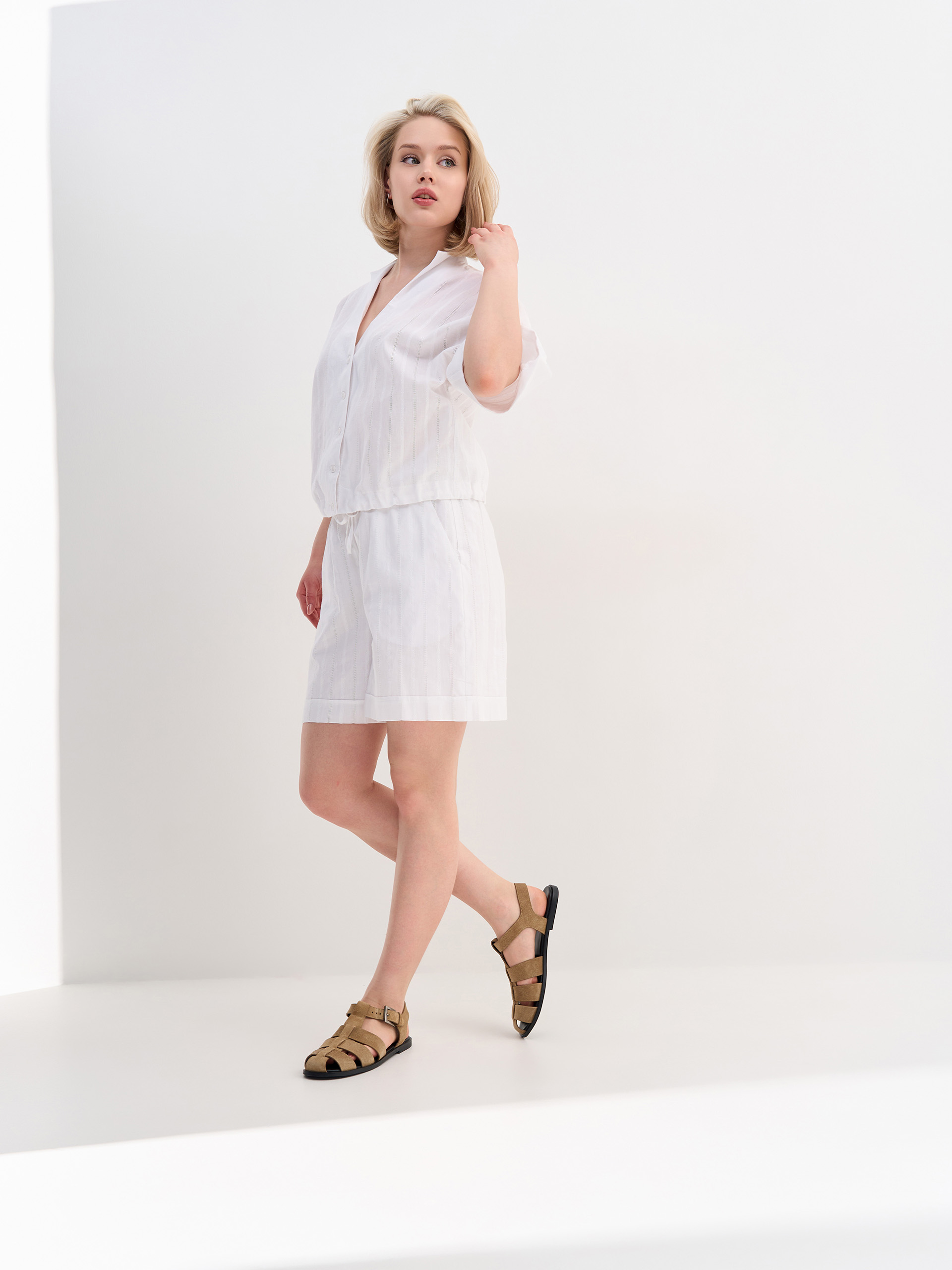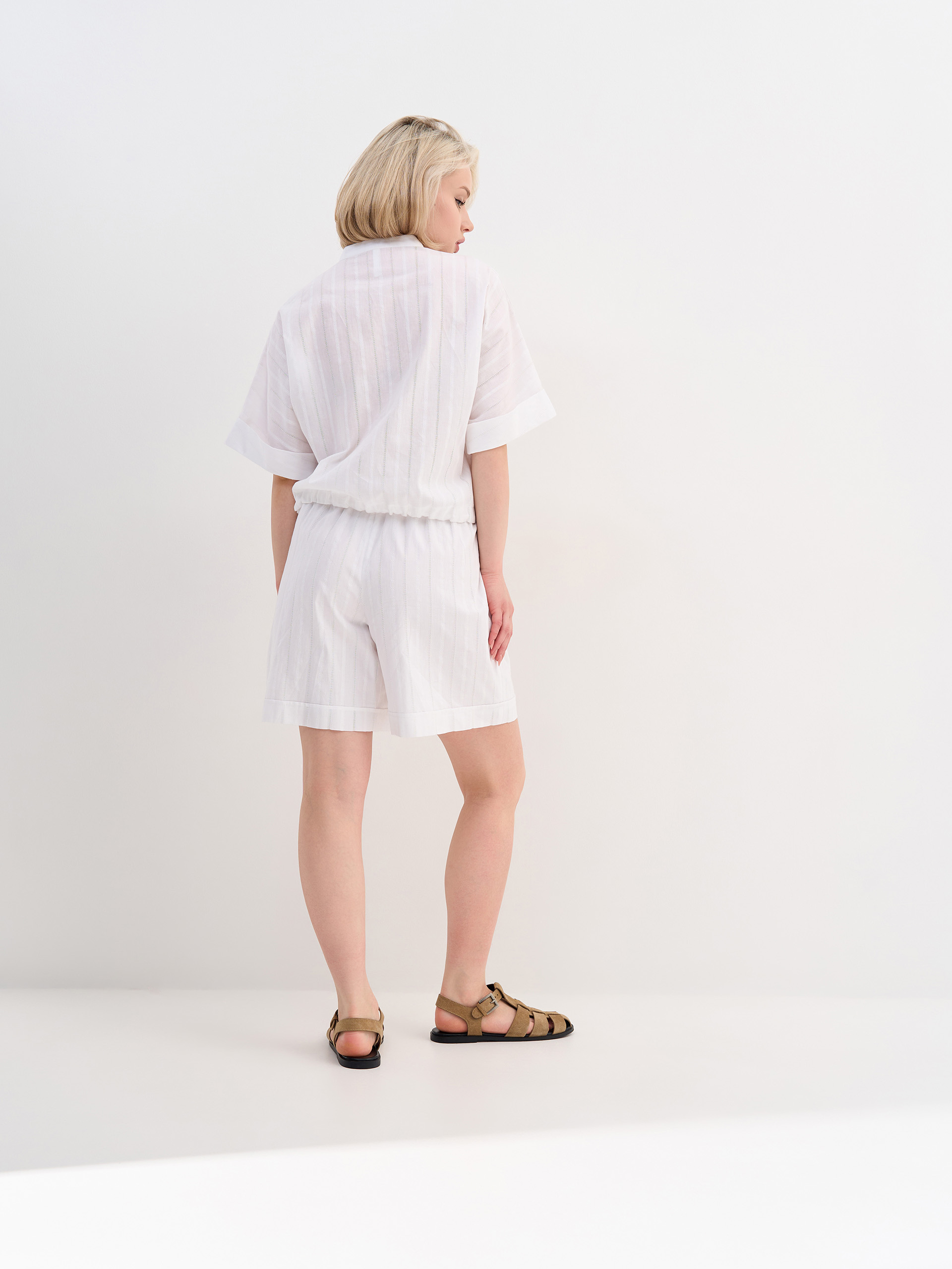 Шорты из 100% ажурного хлопка, подклад из хлопковой ткани, манжет, в поясе резинка.