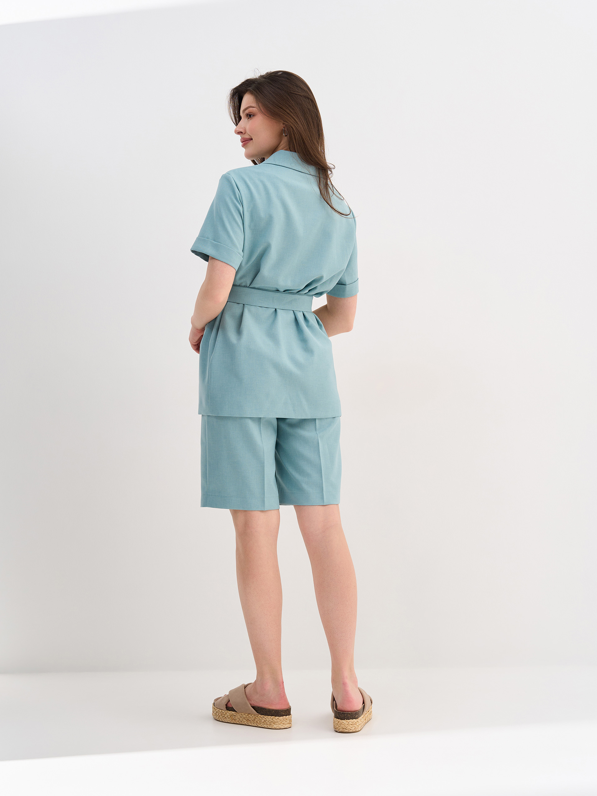 Шорты прямого силуэта, среднего объема, сзади резинка, из легкой смесовой с хлопком немнущейся ткани.