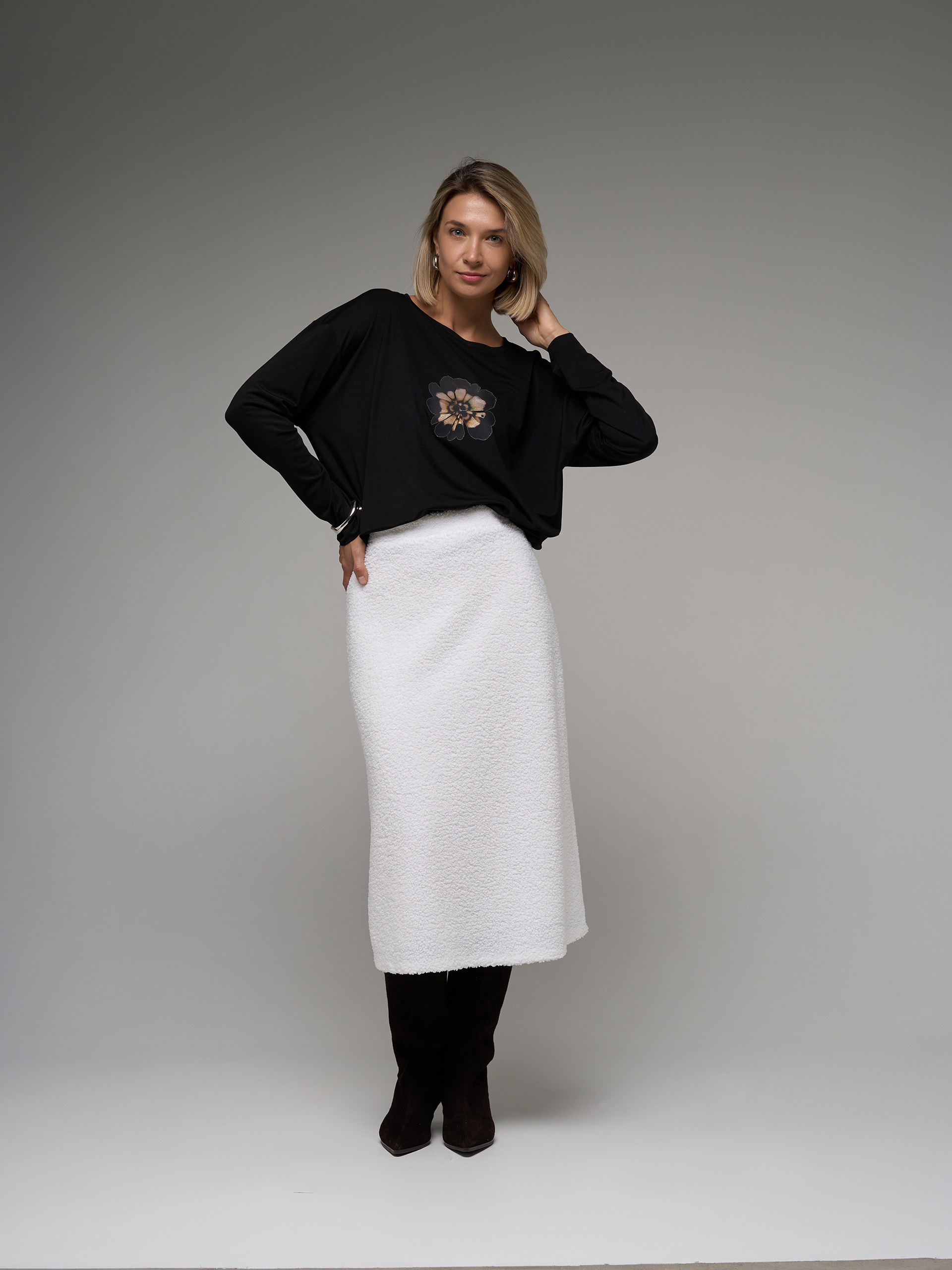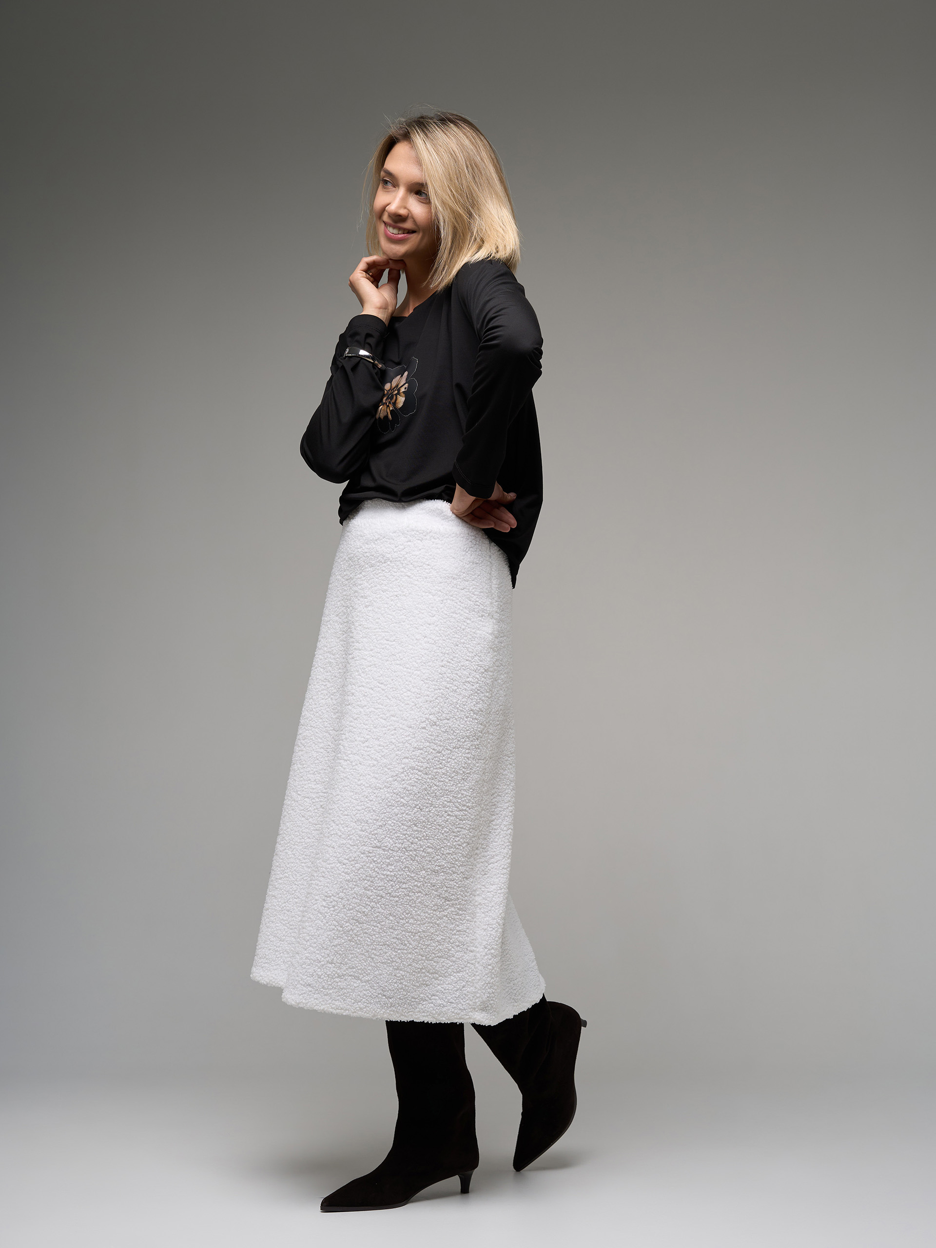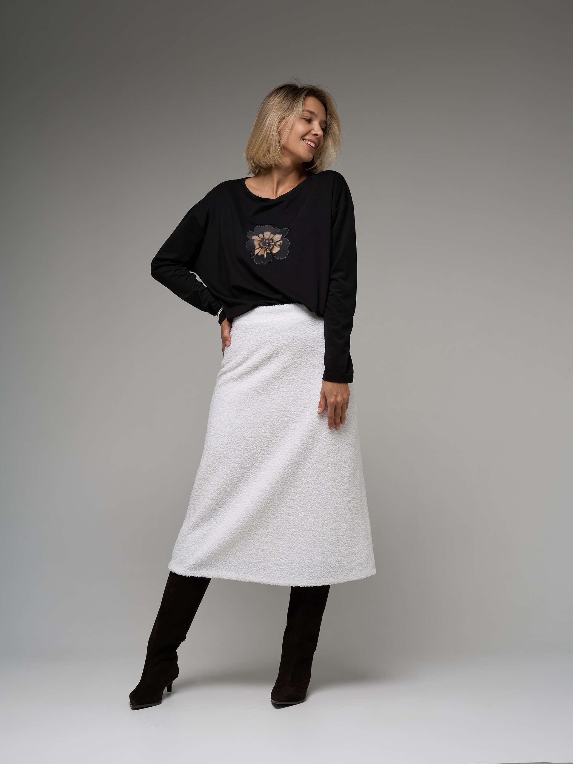 Юбка-миди тедди, из трикотажного полотна с кудрявым эффектом.