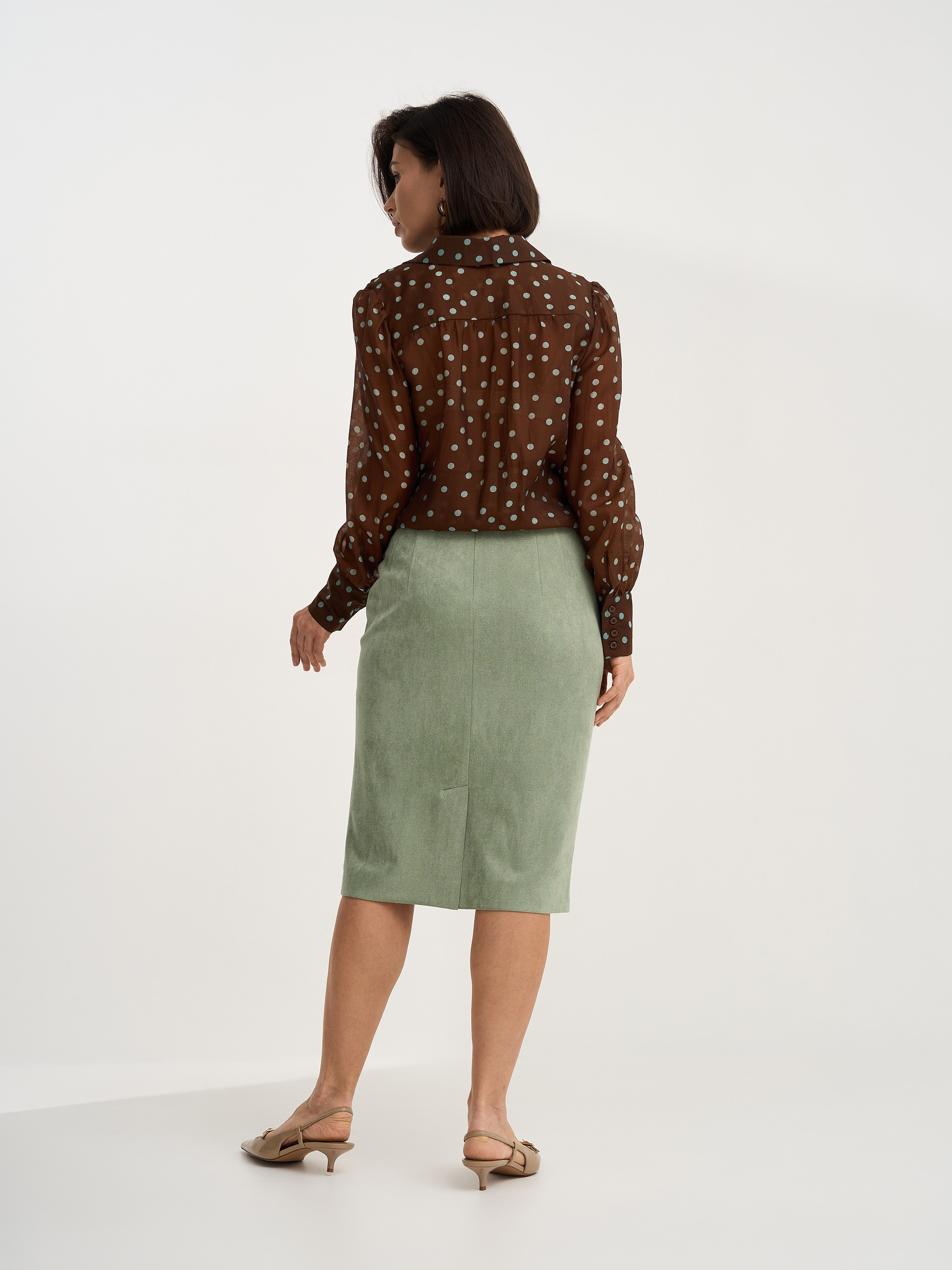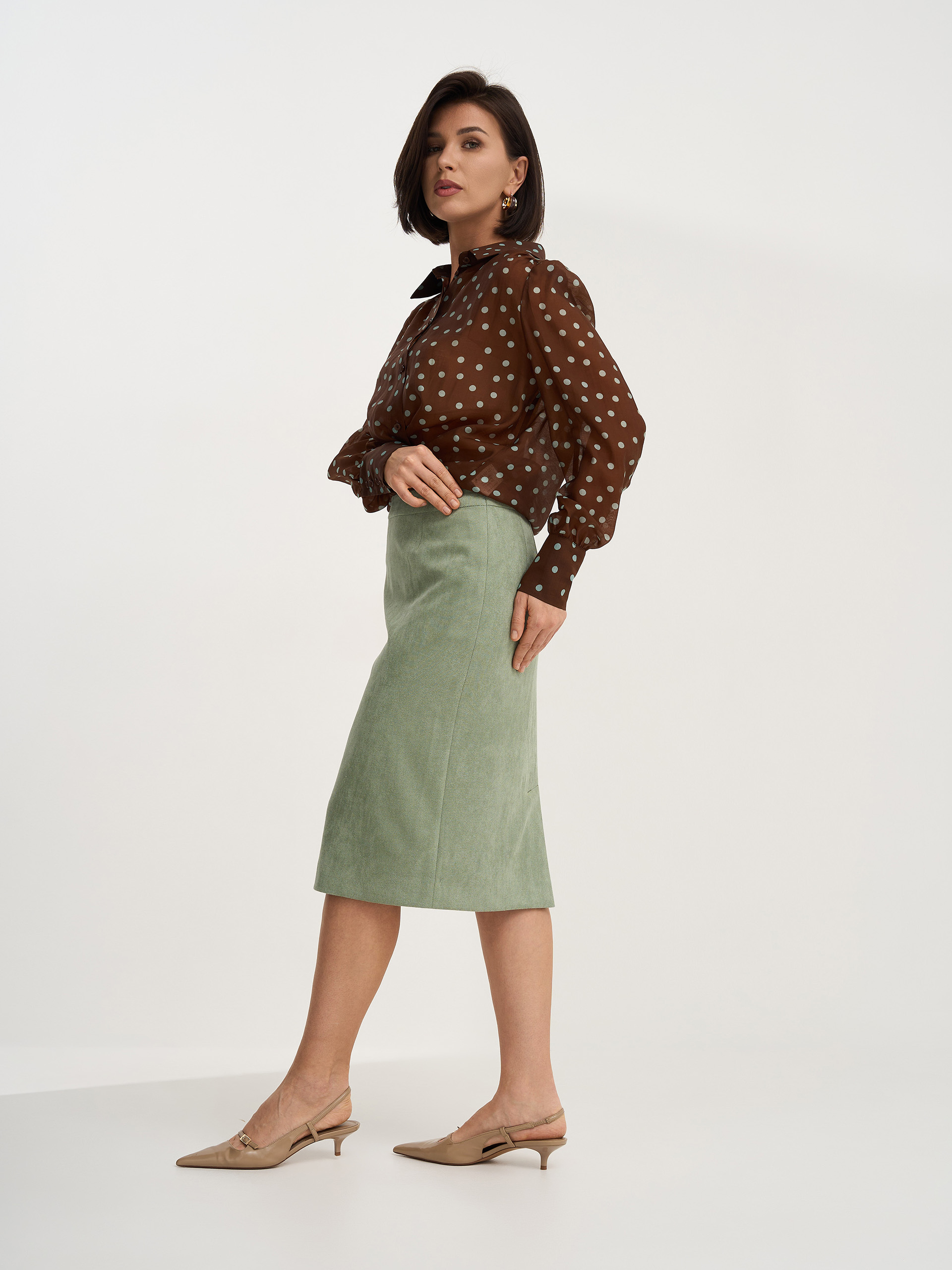 Юбка прямого силуэта, длина 70±2 см, подклад, из мягкой ткани с бархатистой поверхностью.