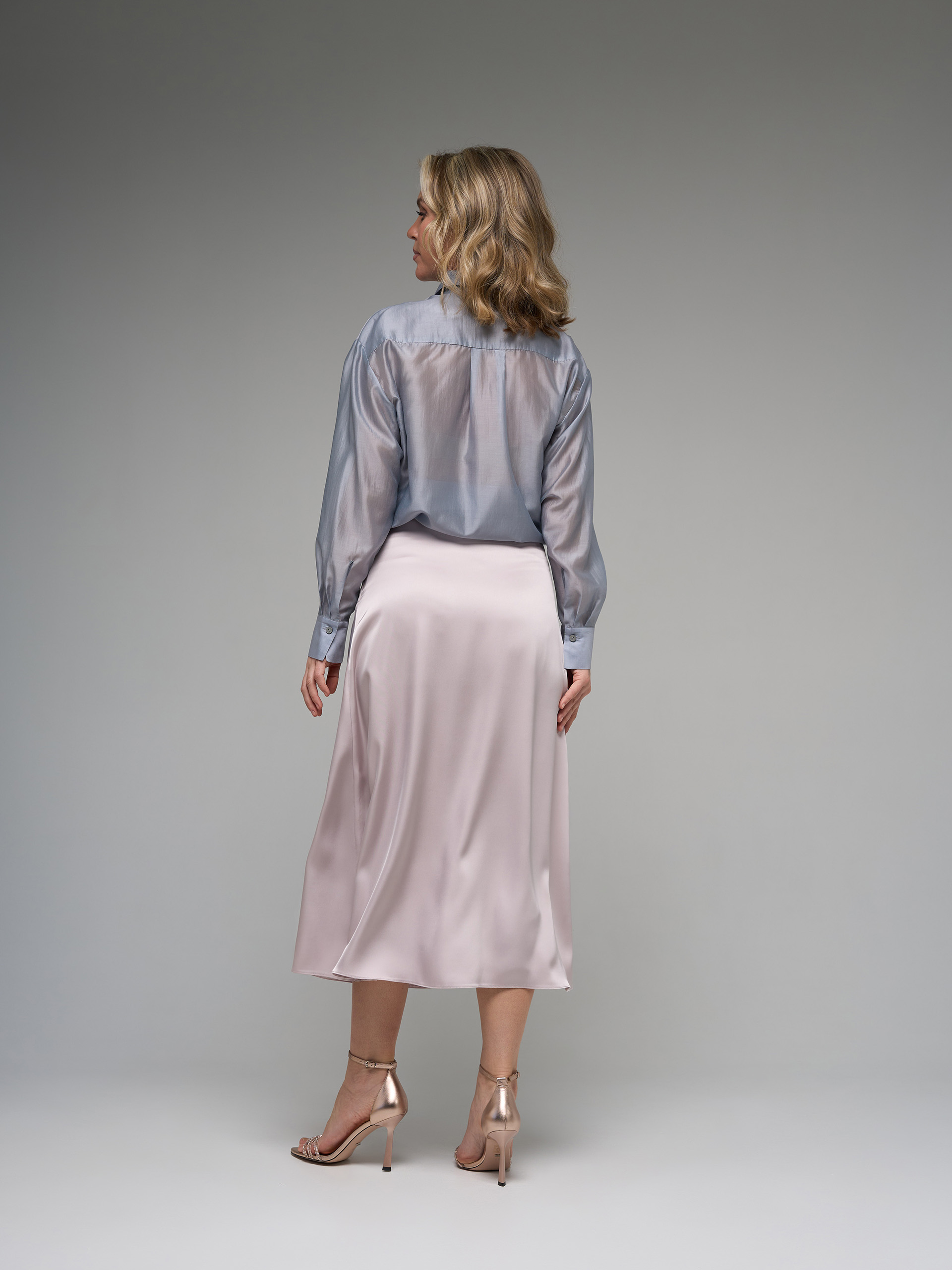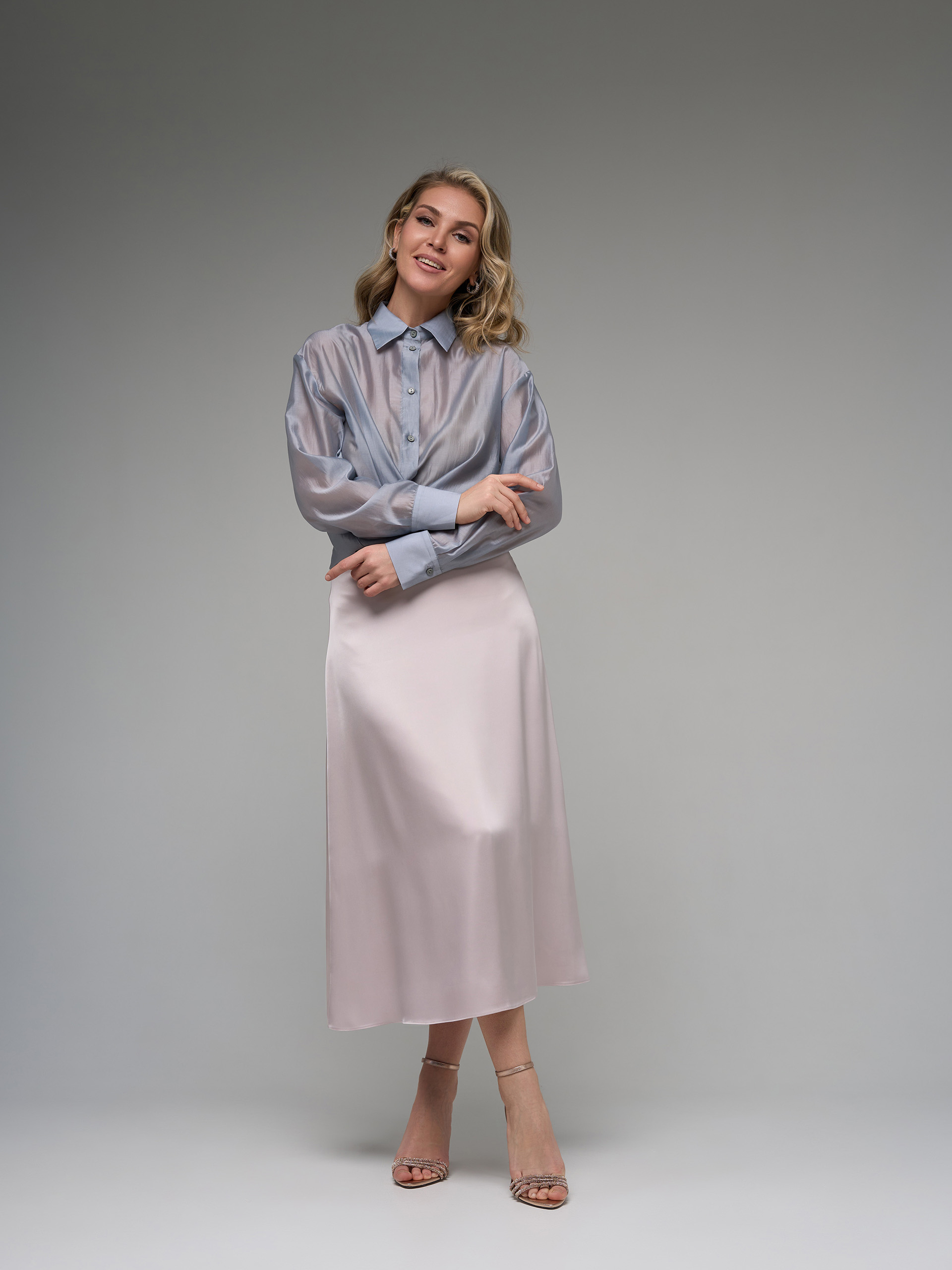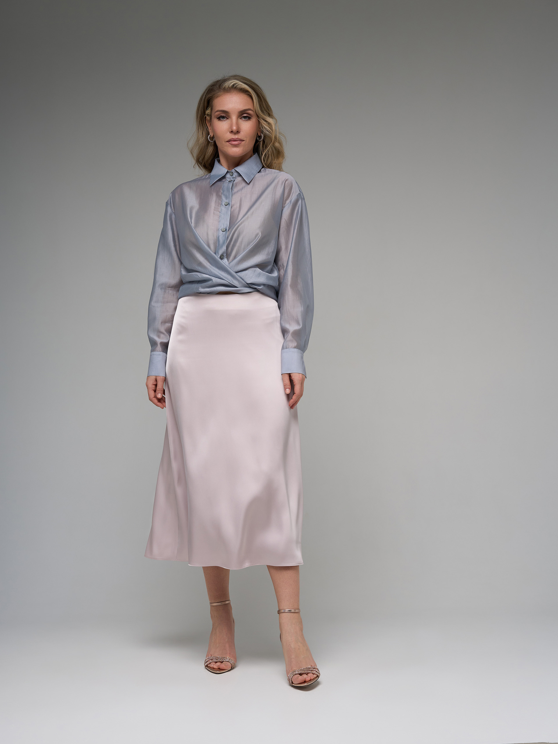 Юбка А-образного силуэта, скроена по прямой, пояс на обтачке.