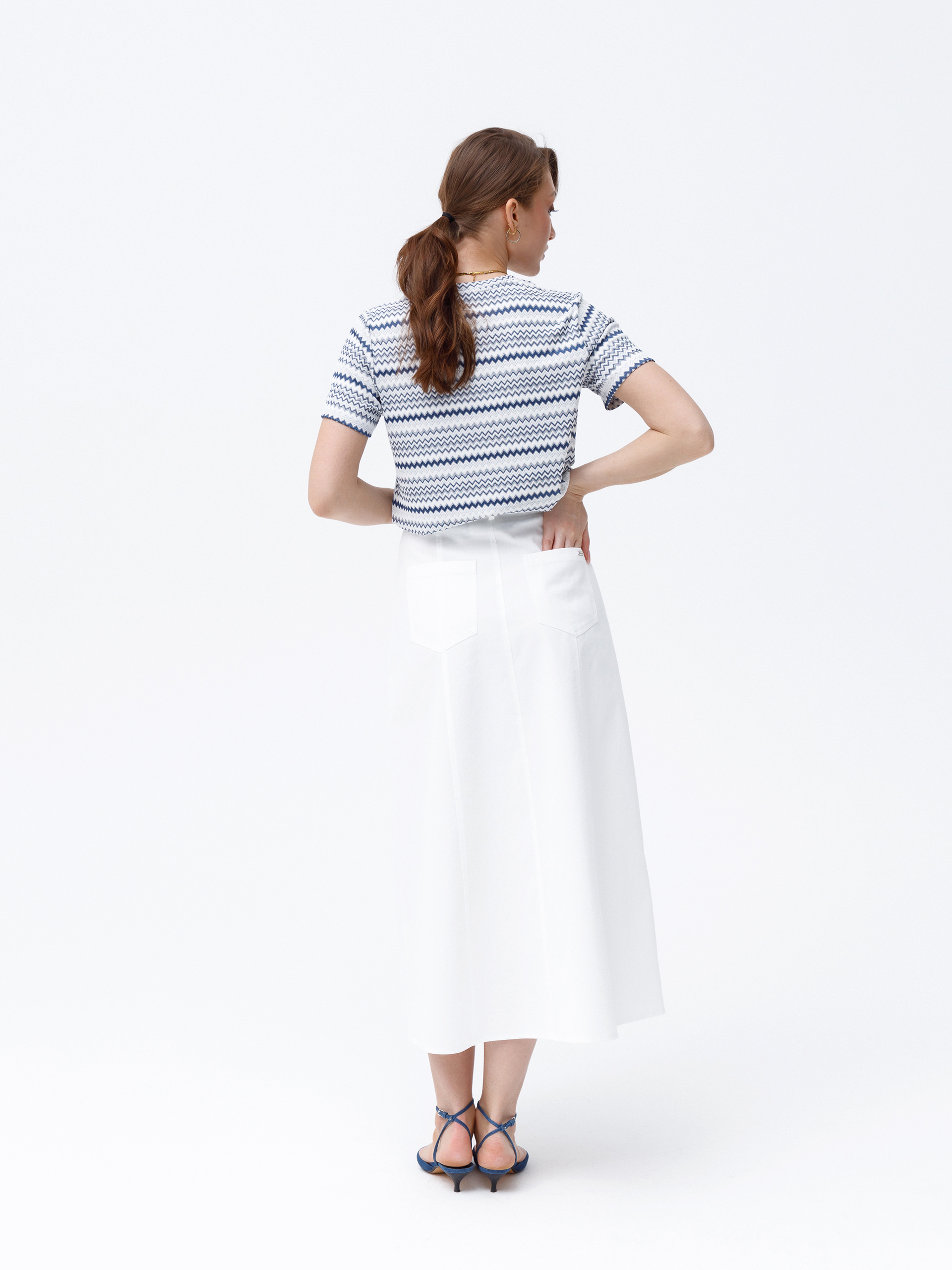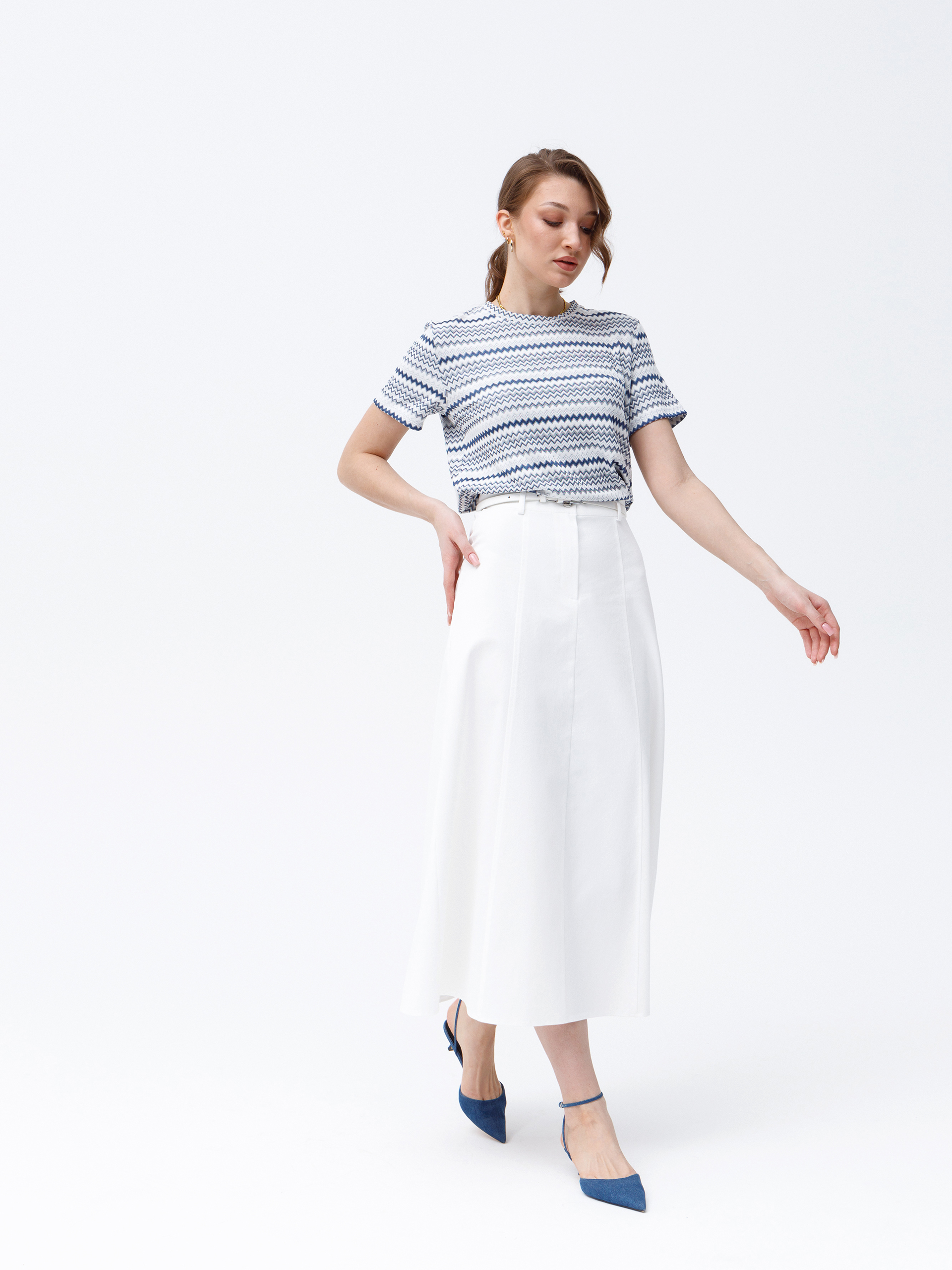 А-образная юбка, в джинсовом стиле, в комплекте текстильный ремень, из среднего по плотности хлопка-денима.