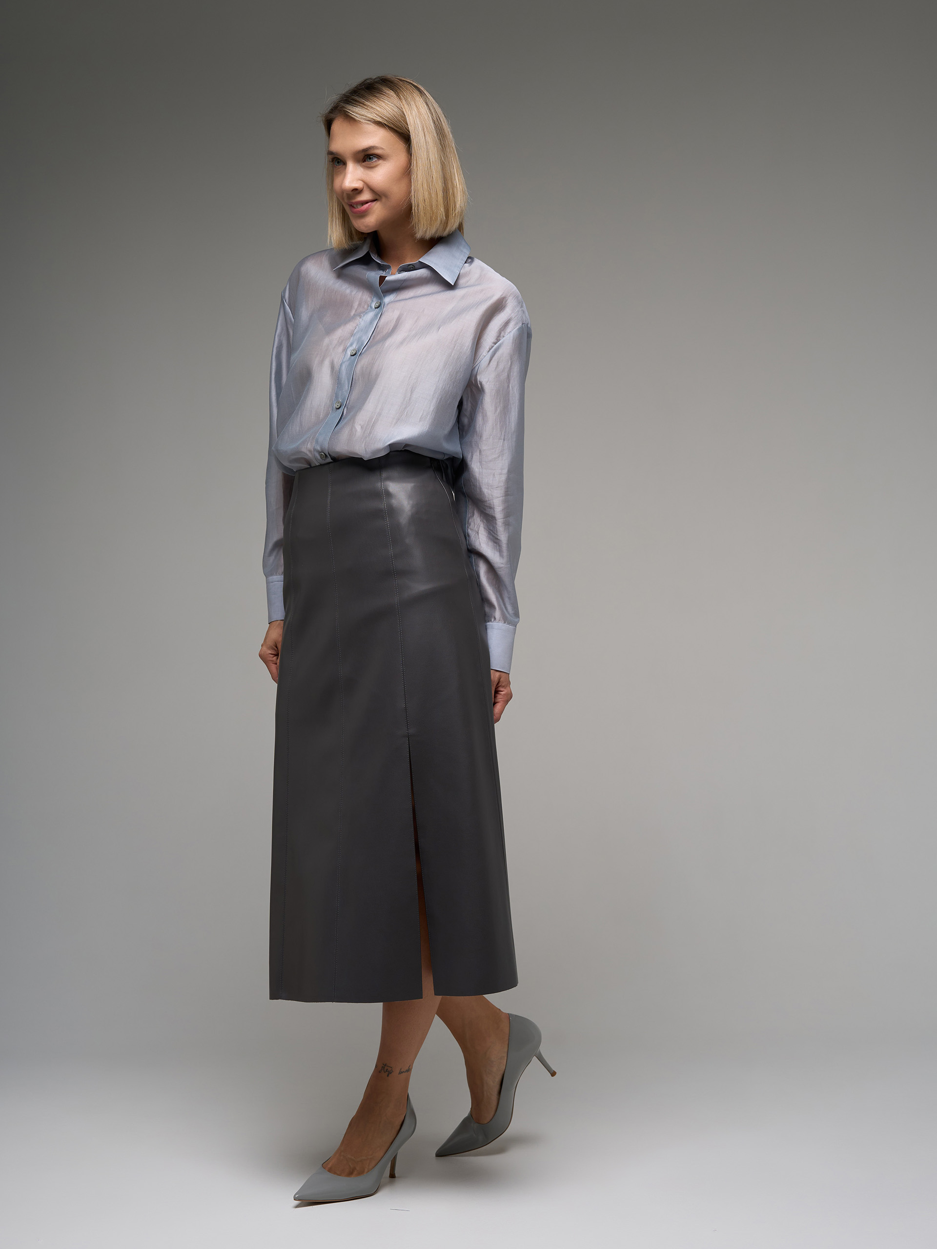 Юбка мидакси (± 85 см), конической формы, на подкладе, из экокожи.