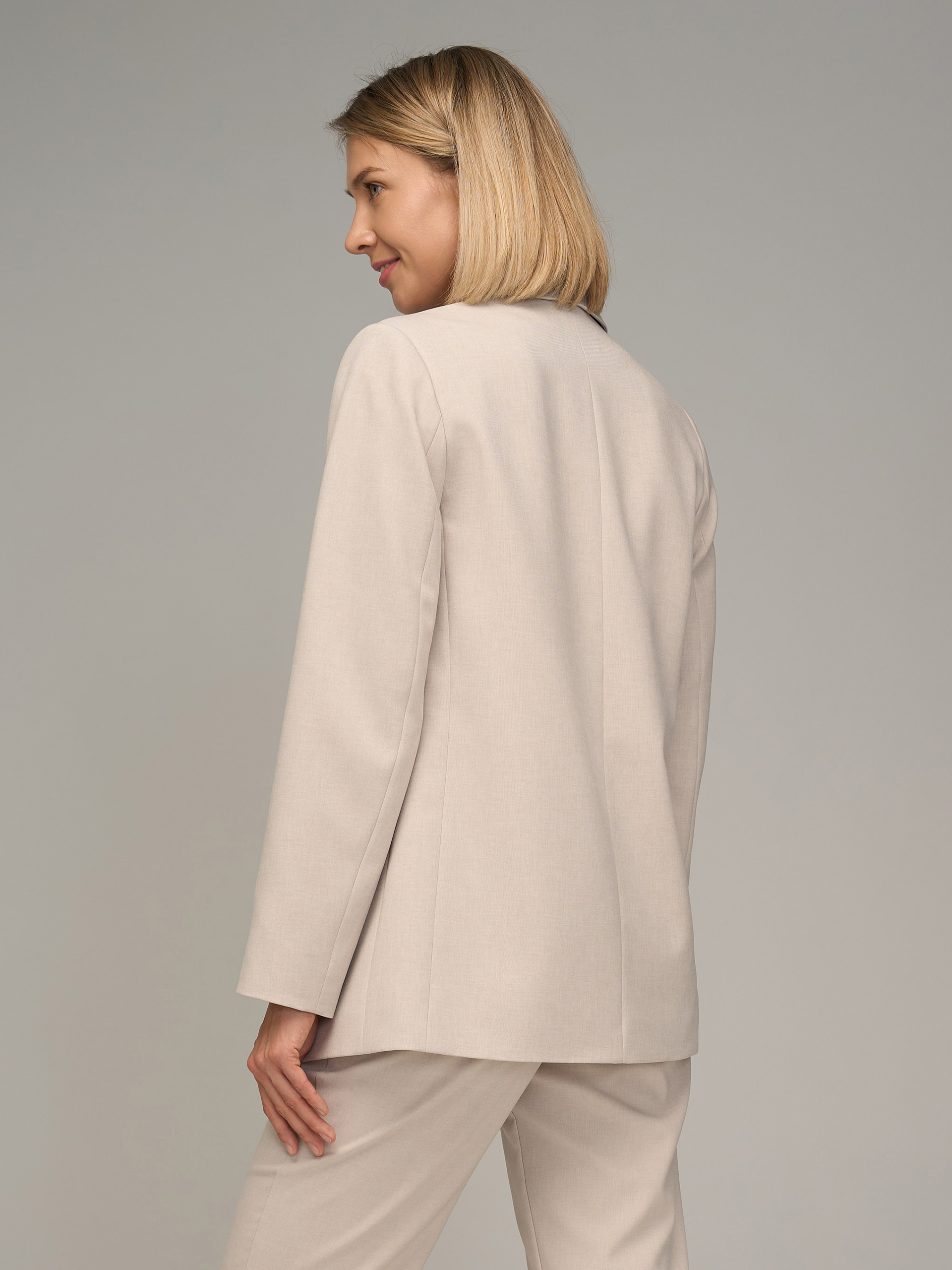 Жакет прямого силуэта, на подкладе. Из фактурной смесовой с хлопком сжатой ткани.