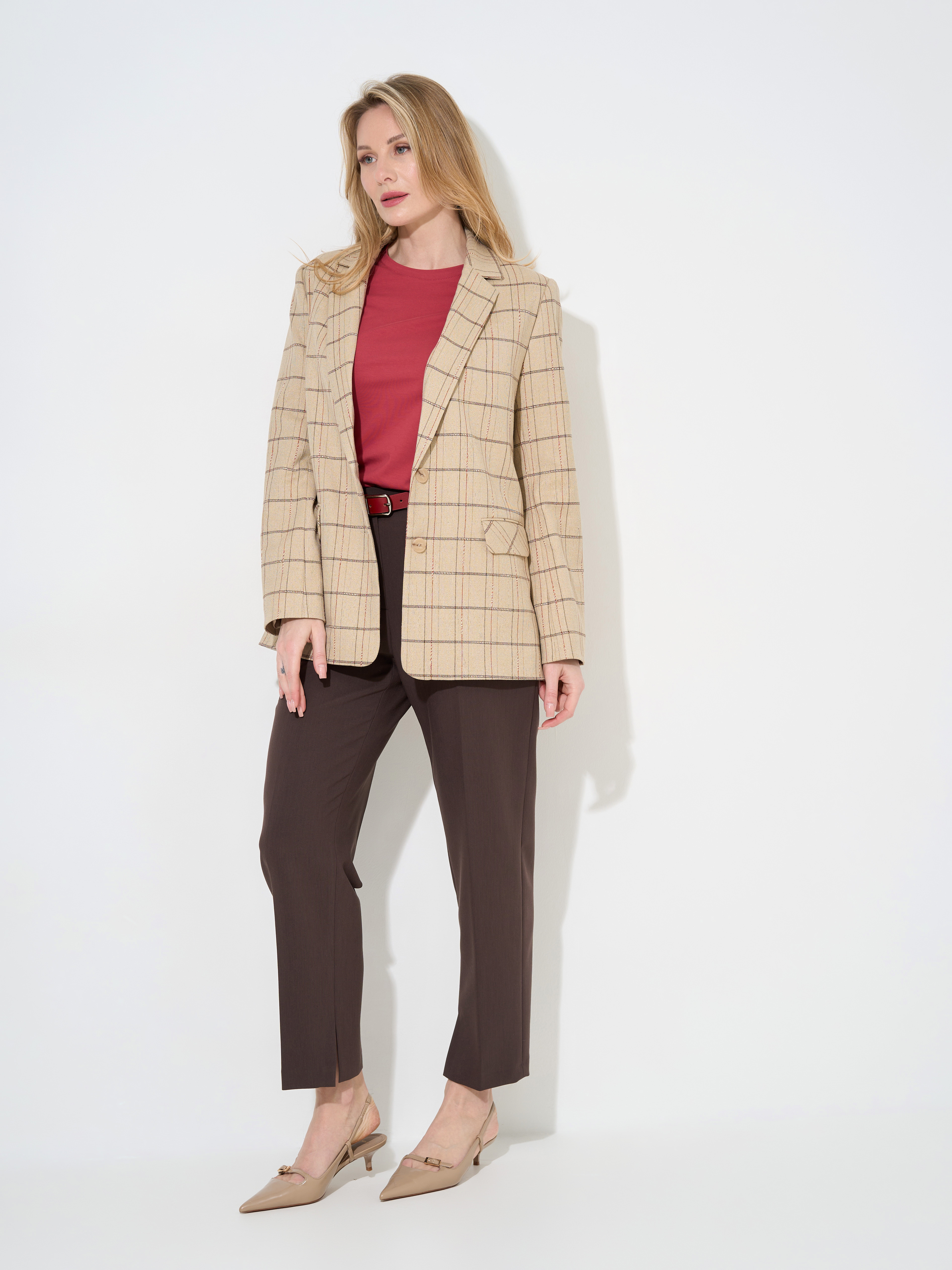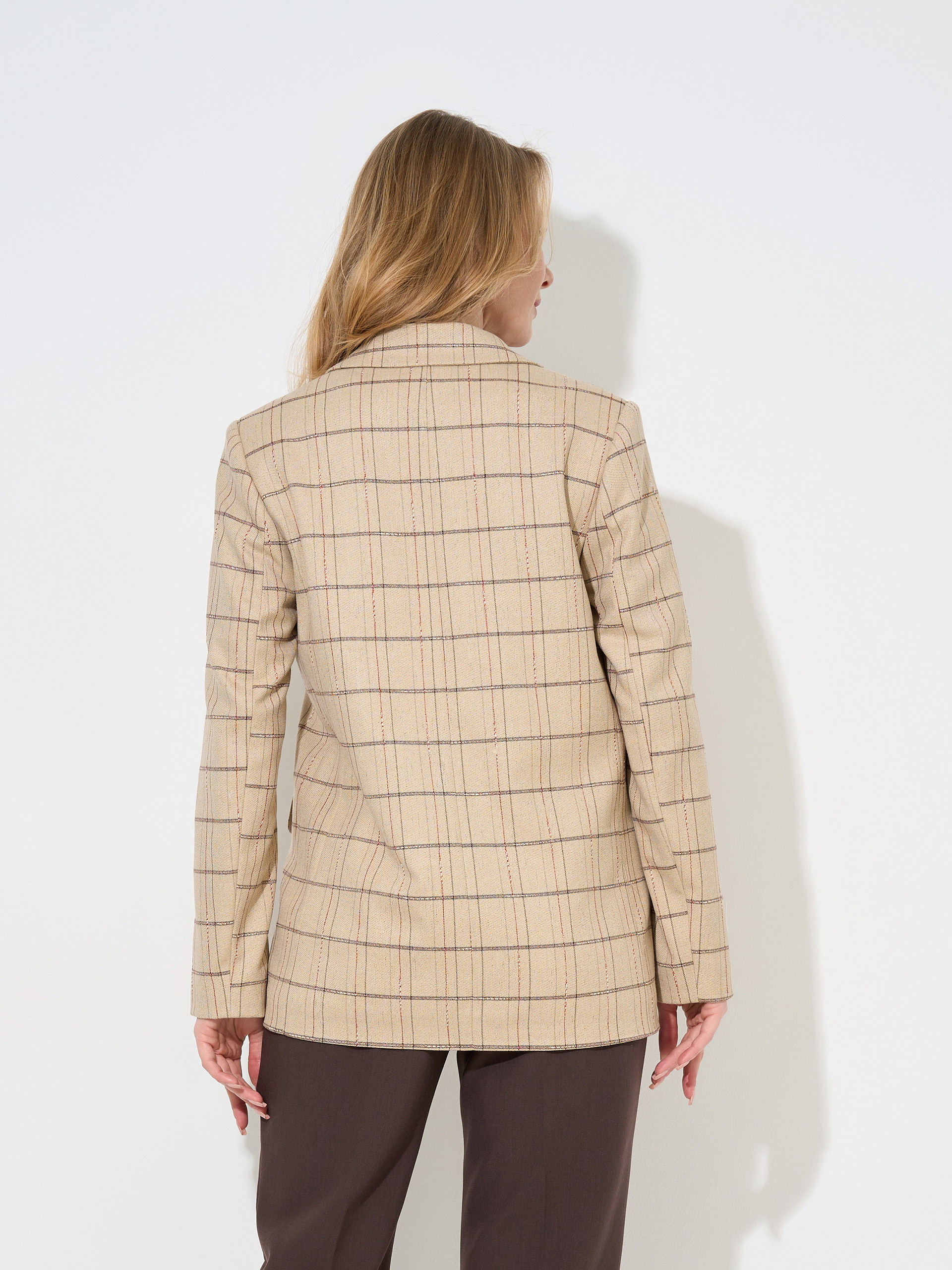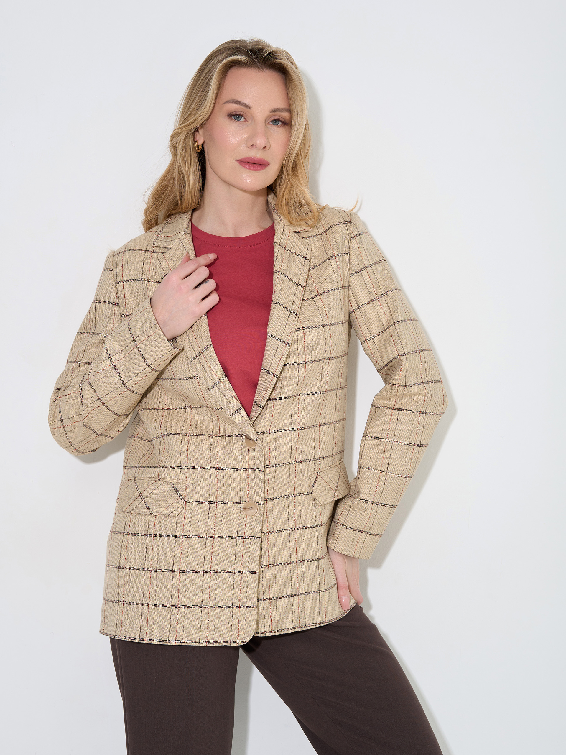 Жакет среднего объема, слегка приталенный, на подкладе.