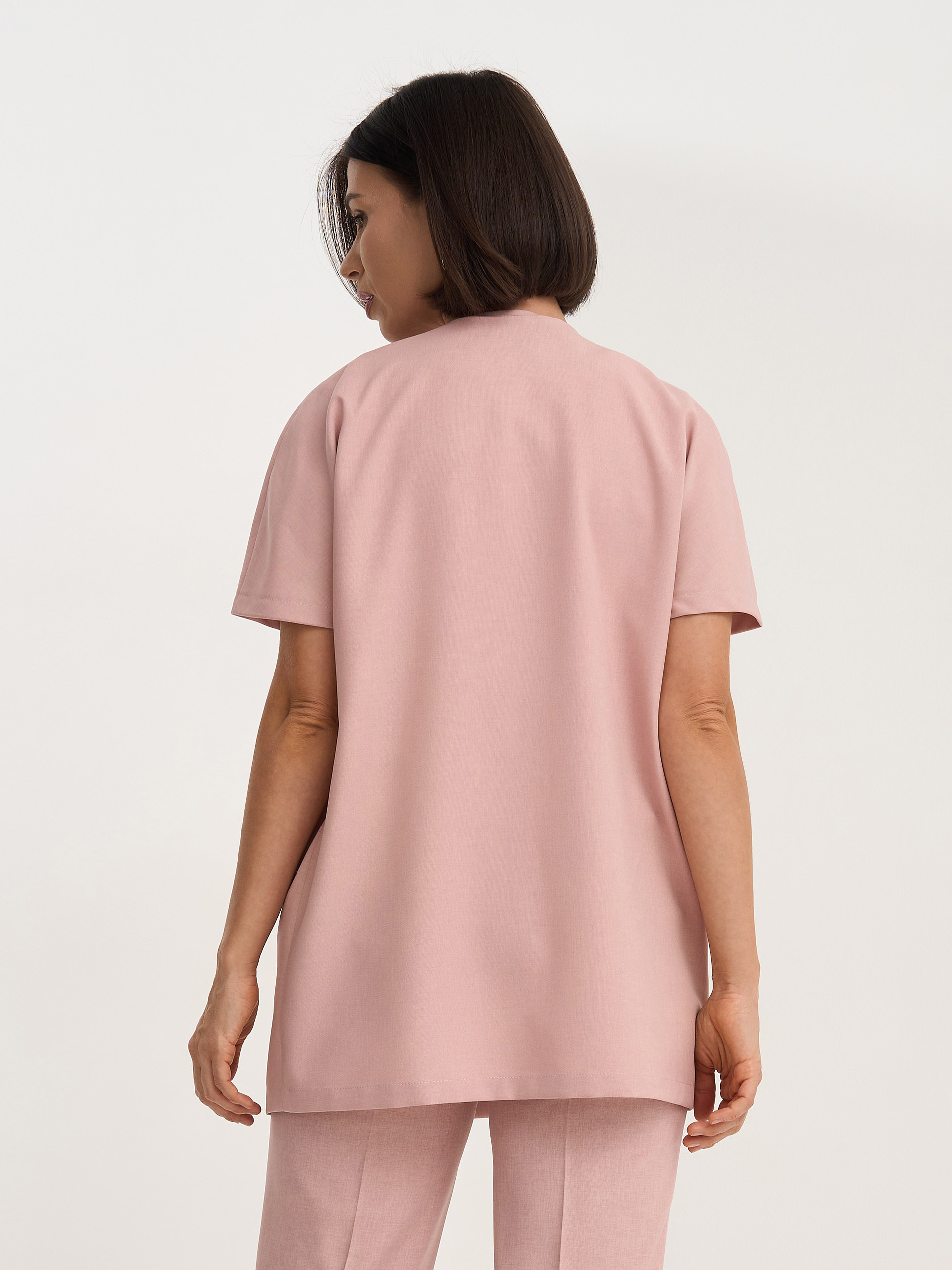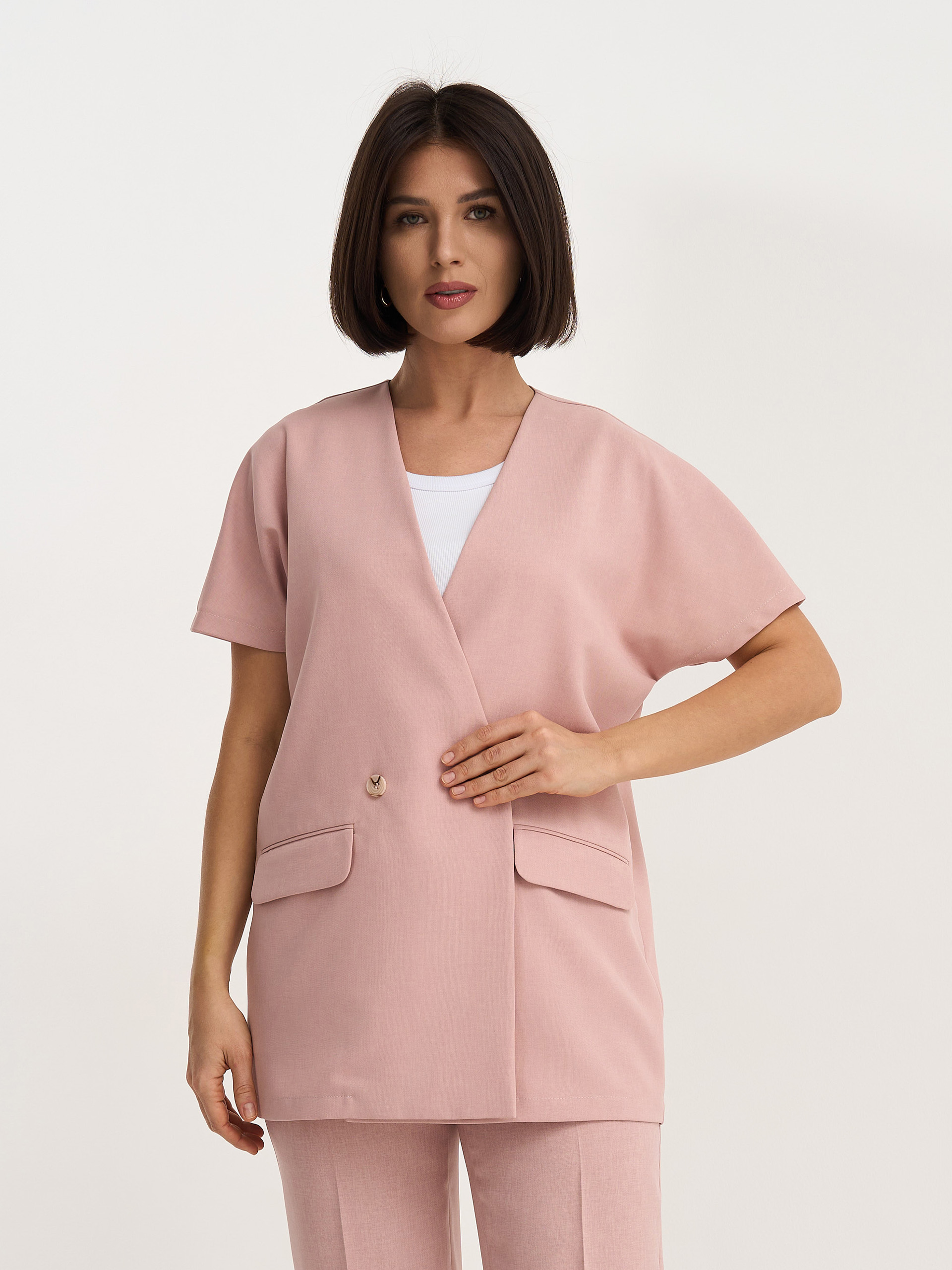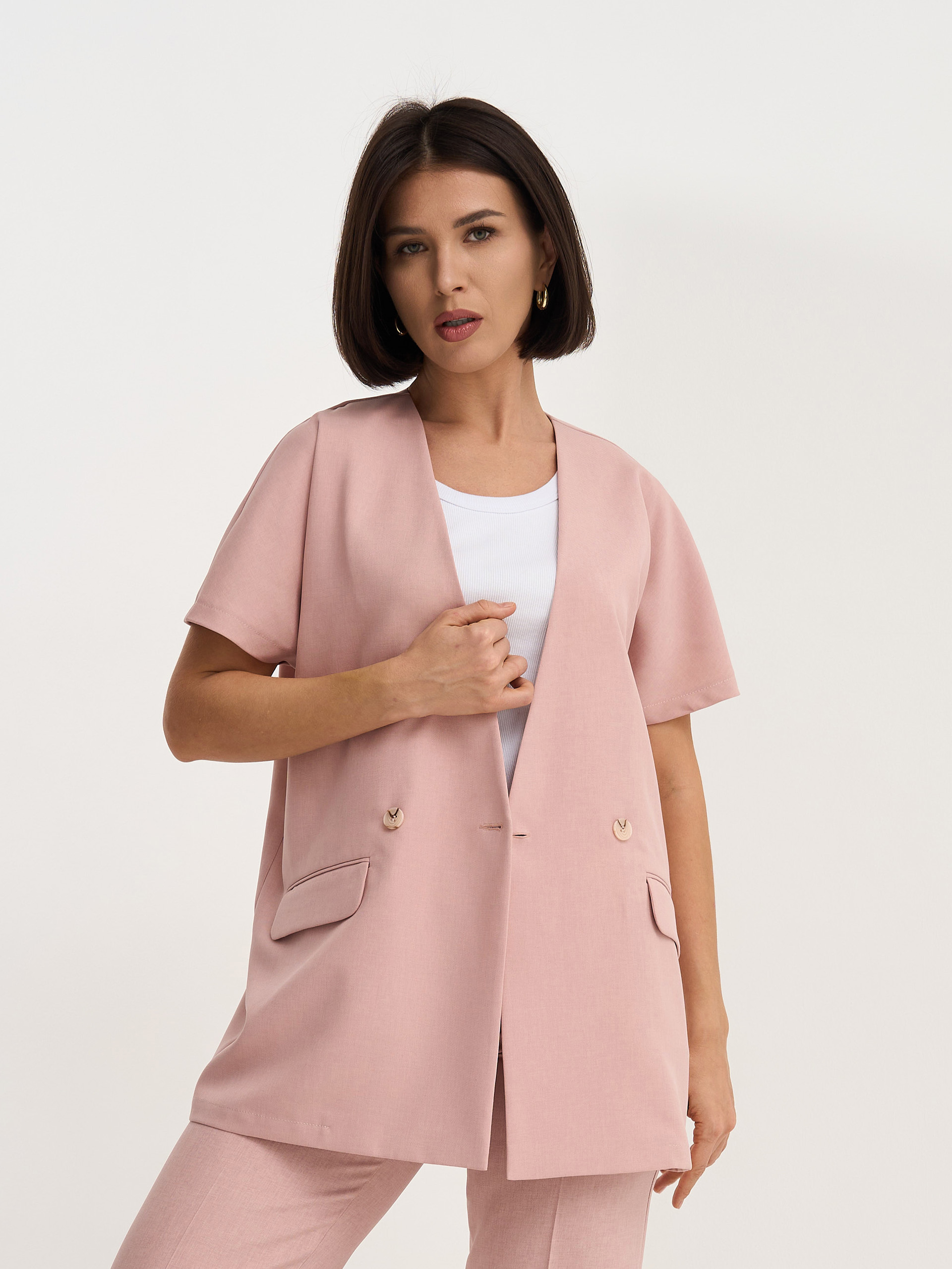 Жакет без подклада, прямого силуэта. Пояс в комплекте. Из смесовой с хлопком легкой немнущейся ткани.