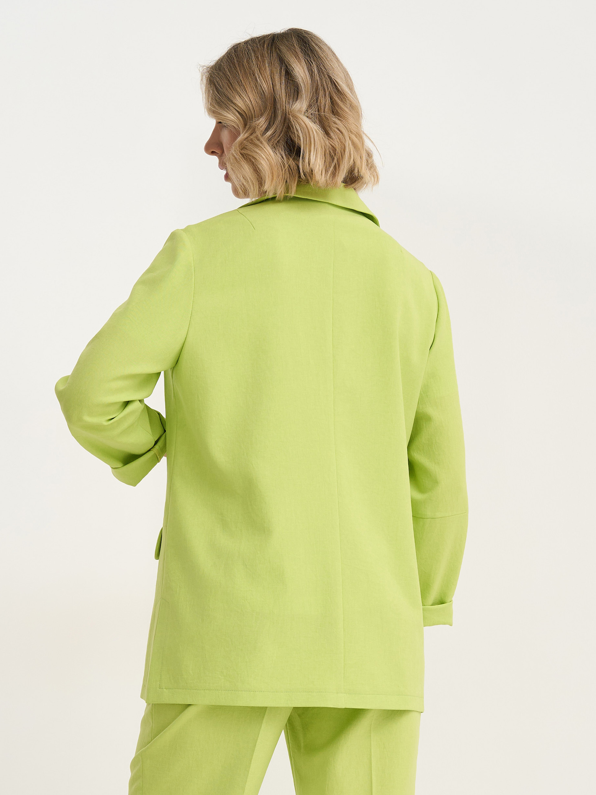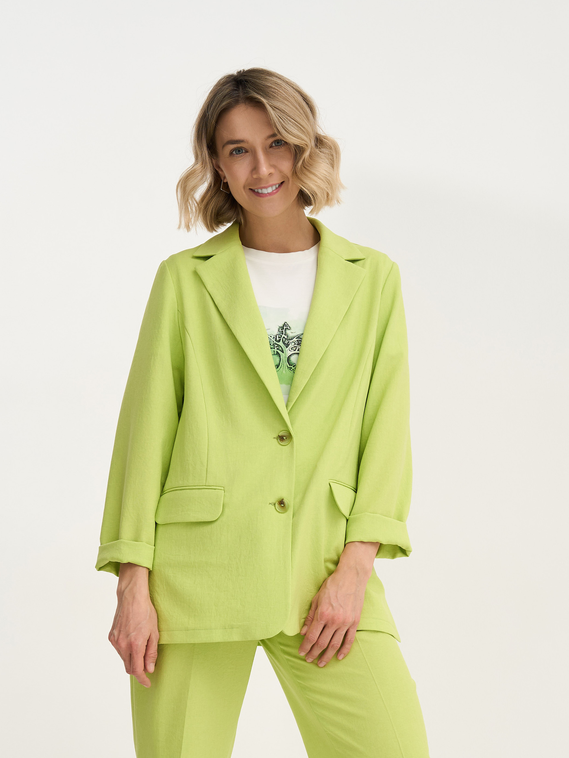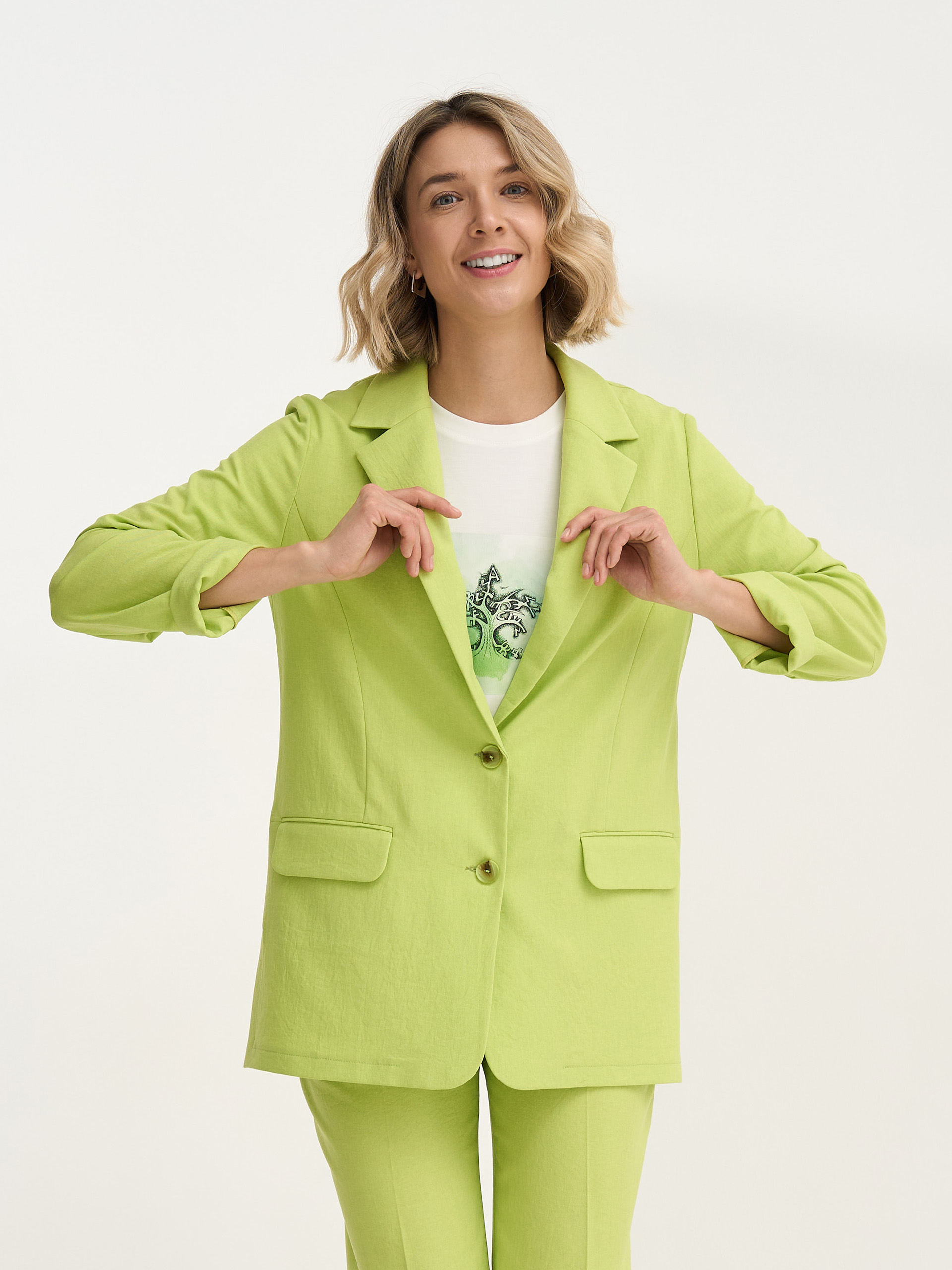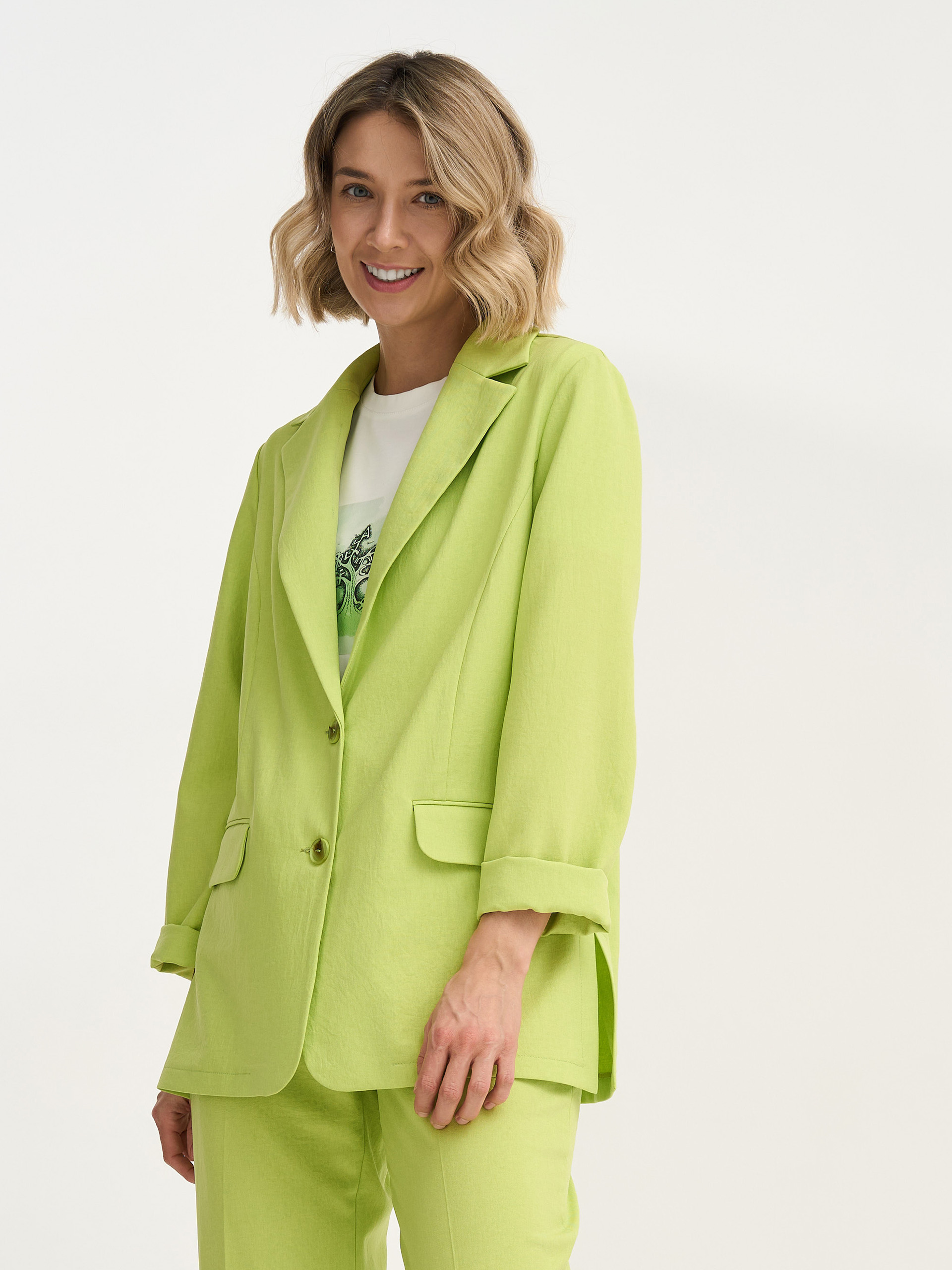 Облегченный жакет с разрезами, в боковых швах, без подклада из фактурной смесовой с хлопком сжатой ткани.
