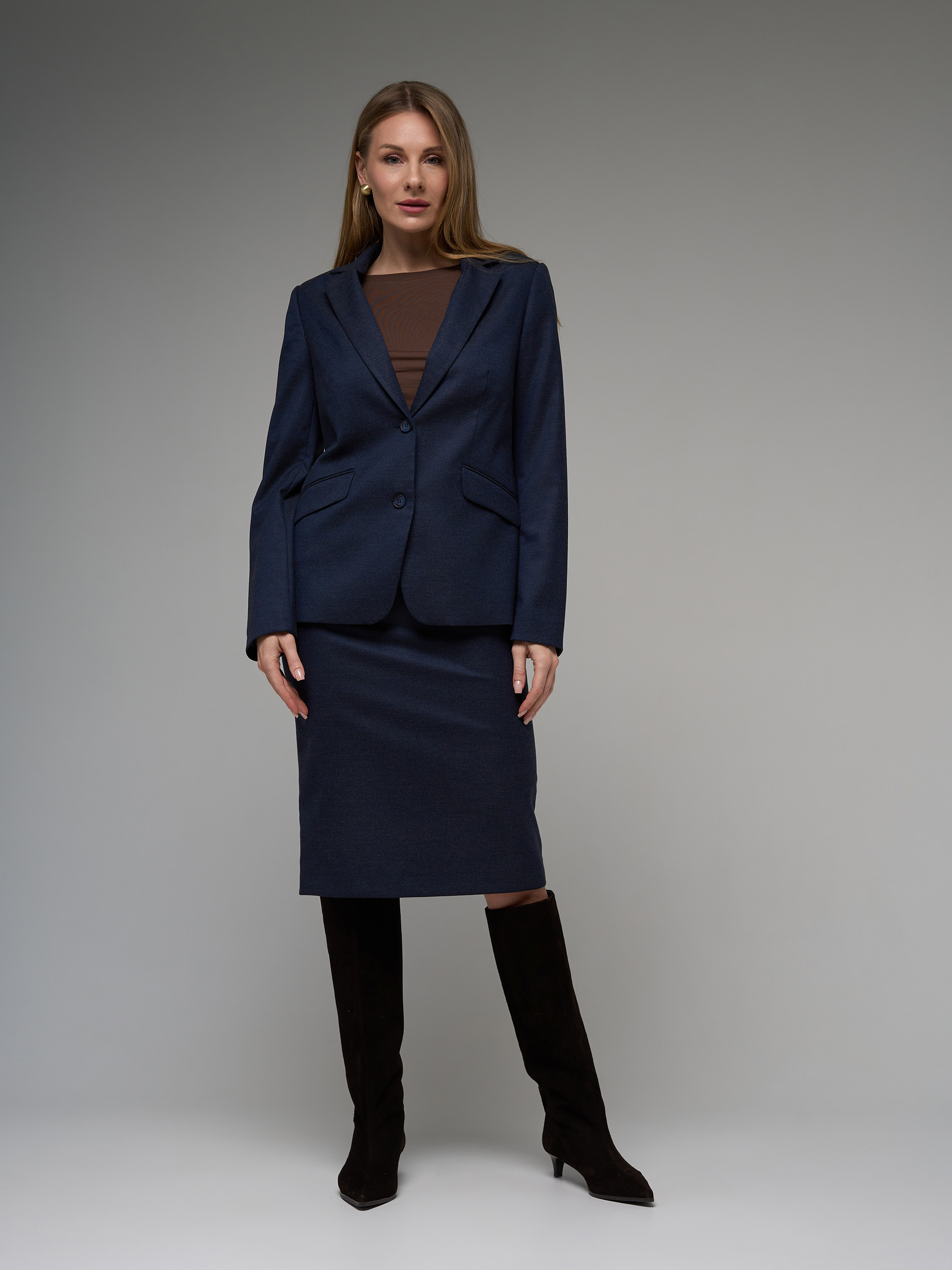 Жакет с английским воротником, подклад, синяя пластичная костюмная ткань из вискозных нитей, подклад.