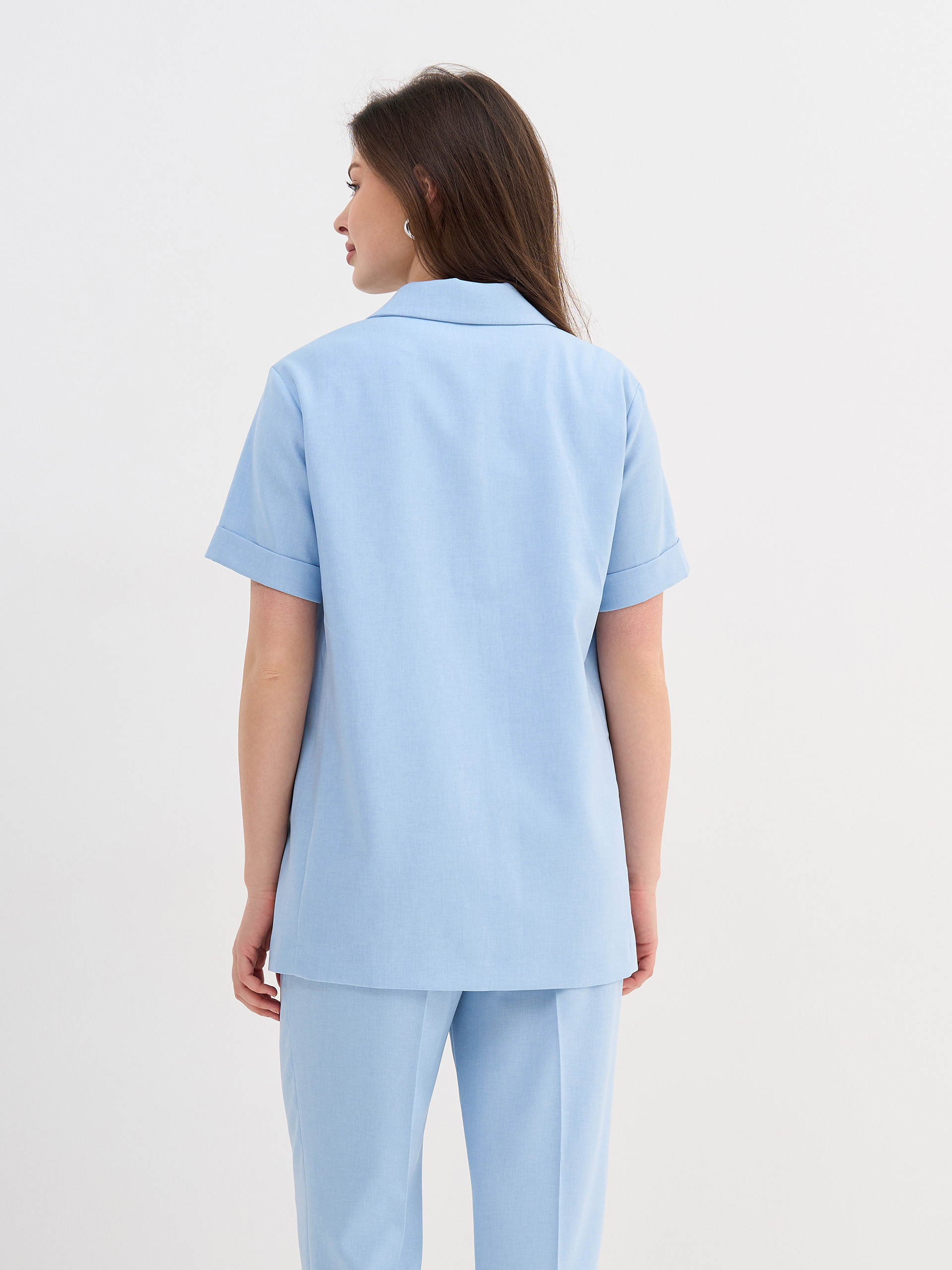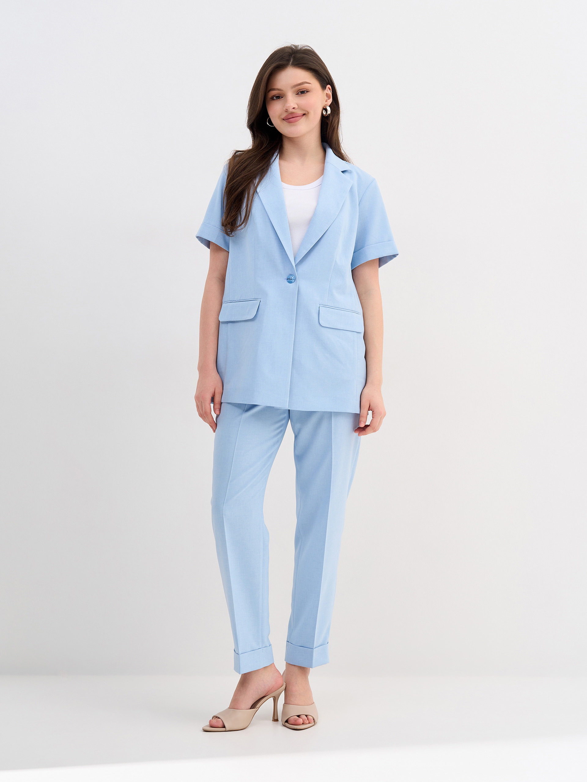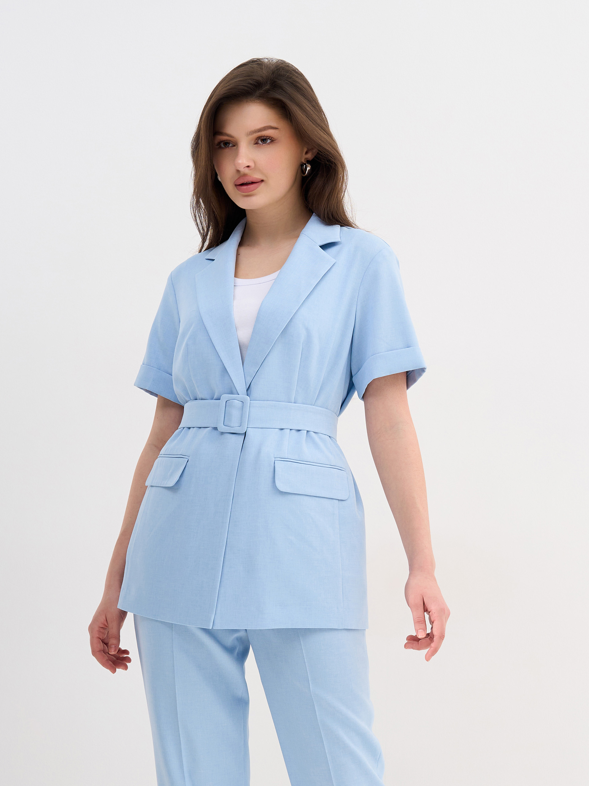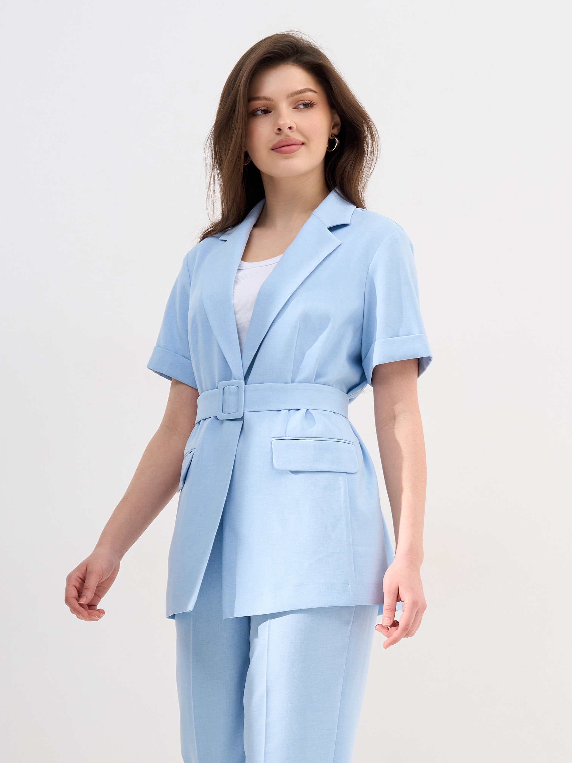 Жакет из смесовой ткани, с короткими рукавами, облегченный, без подклада, в комплекте текстильный ремень с пряжкой.