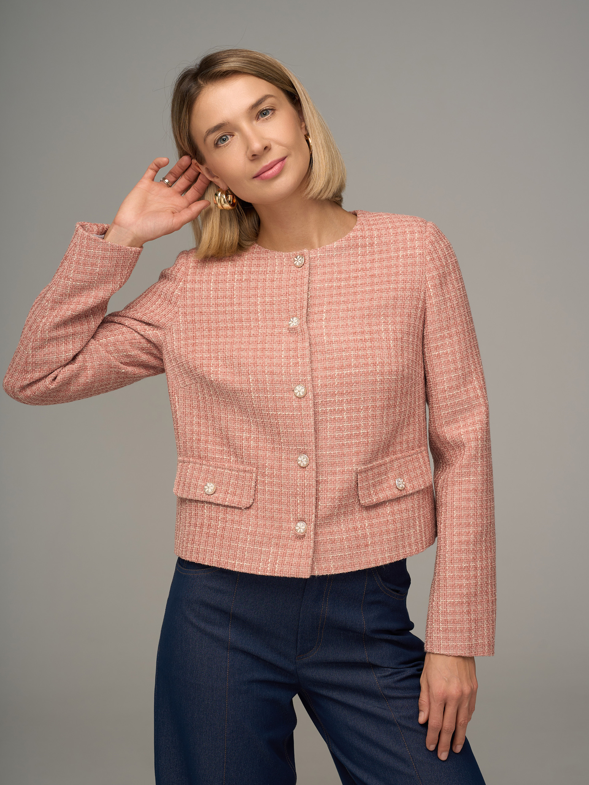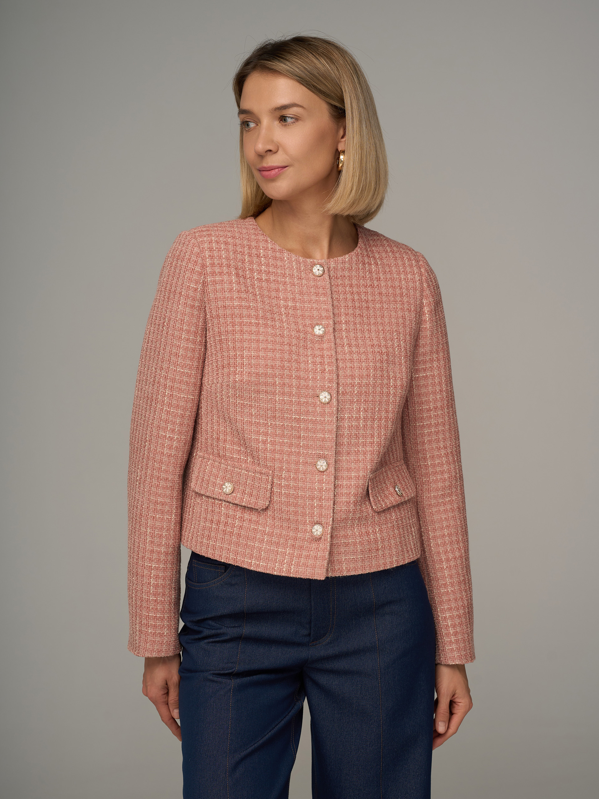 Жакет из облегченного твида, полуприталенный, на подкладе, цвет "персиковая пыльца".