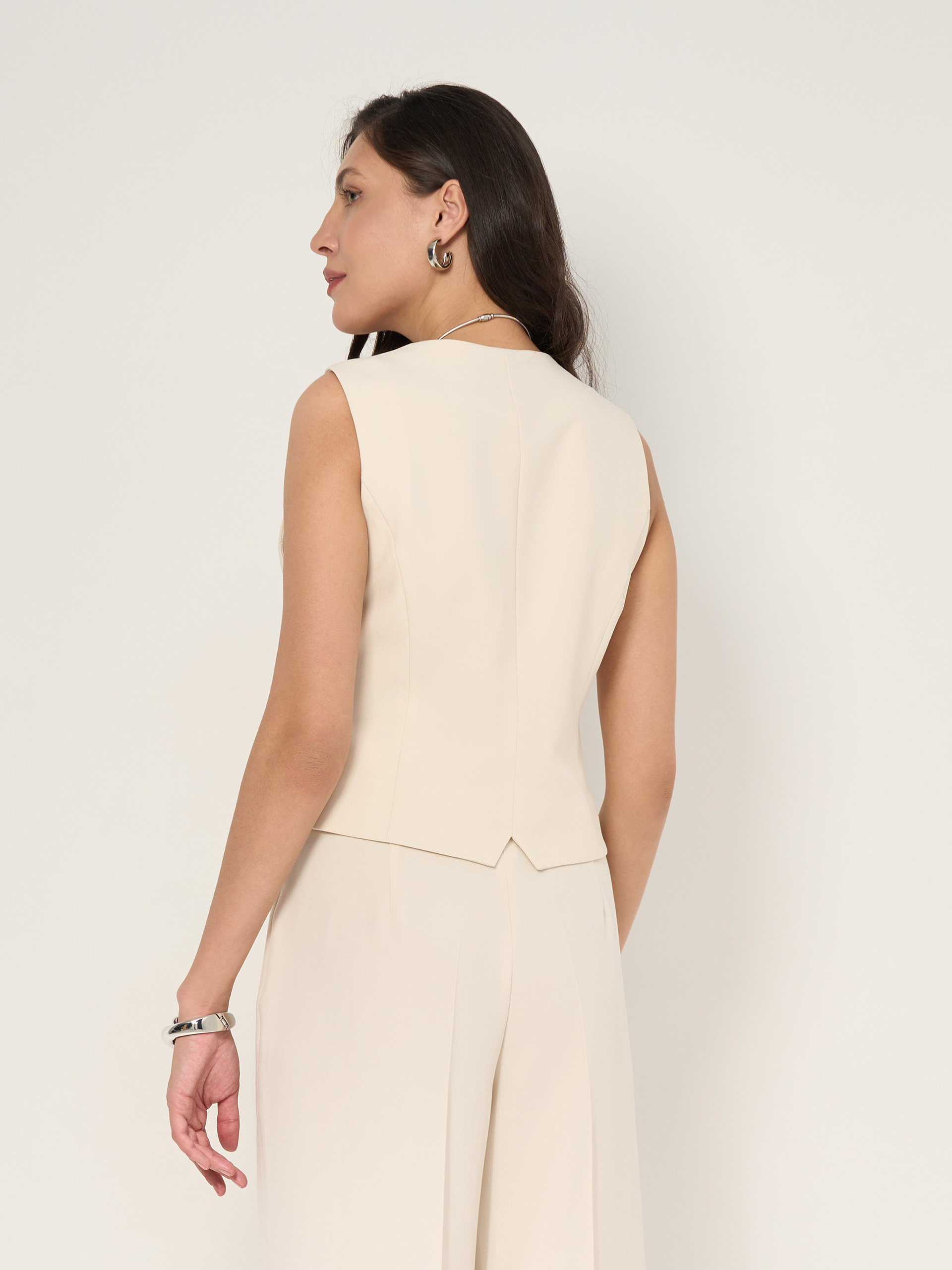 Жилет на подкладе. Из средней по плотности смесовой гладкой костюмной ткани.